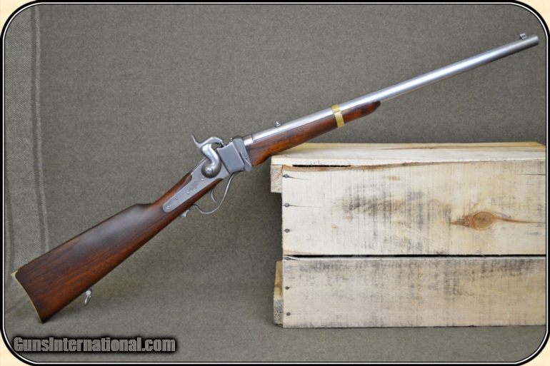 Description: Defarbed Perdersoli Confederate Sharps Carbine: Samuel C Robinson was the owner-operator of the Belvidere Planing Mills In Richmond Virginia. In early 1862 Robinson received a State of Virginia contract for breech loading carbines. The Robinson Carbine is similar to the Sharps New Model 1859, but lacks the patch-box, Sharps-Lawrence priming mechanism and the adjustable leaf rear sight. This rare Confederate arm was issued to Jeb Stuart's Army of Northern Virginia Cavalry. Forearm & Buttstock, American Walnut, 13 7/8" trigger pull, .52 cal.(Replaced barrel), arsenal bright, 22", Tapered round - 1.250 at breech to .820 at muzzle, Cut rifling .010" deep, 1-48" twist, 7 lands and 7 grooves, Front sight - arsenal bright, steel base w/integral blade, Rear sight - white steel open style w/ 3/8" dovetail Ignition: Percussion - Musket size caps Features: Brass butt-plate and barrel band, Swivel on butt, Color arsenal bright receiver, lock, lever, trigger-plate and saddle bar w/ring, Lock-plate marked "S.C. Robinson Arms Manufactory Richmond, VA 1862, Barrel marked the same in two lines in front of and behind rear sight, Single Trigger, 39" overall, 8 lbs. Dixie Gun Works sell this reproduction new for $1395.00 with that you get all the Italian marks. This one has been completely defarbed by removing all the Italian remarks and adding the historical markings and re-barrel in .52 Caliber as the original and you can still buy it for $100.00 less than the Dixie price. PAYMENT Cash, postal money order, cashiers check, personal & business checks. May order at riverjucntion on-line with credit card or paypal. SOLD Antique: Yes |