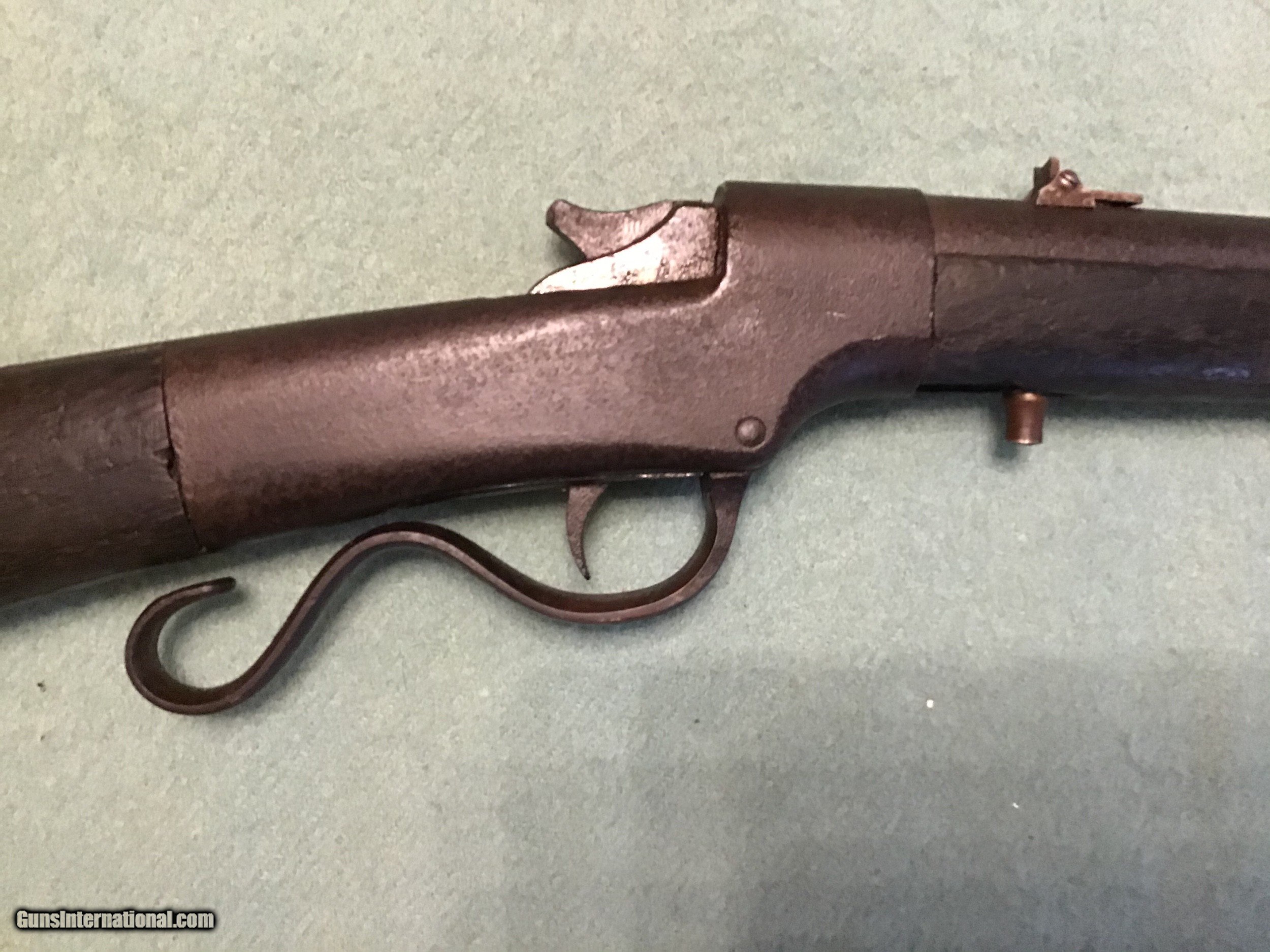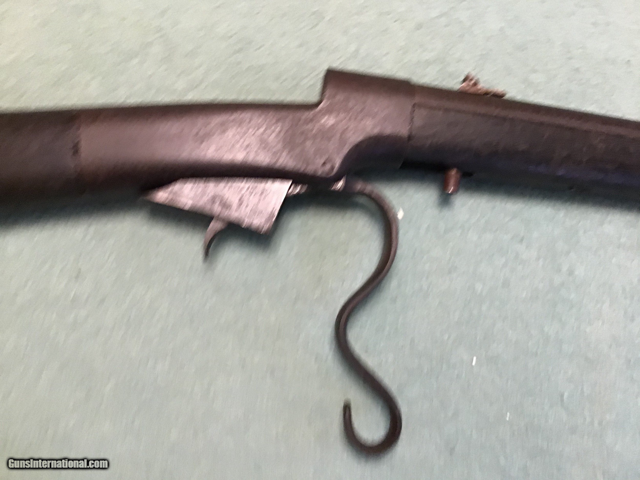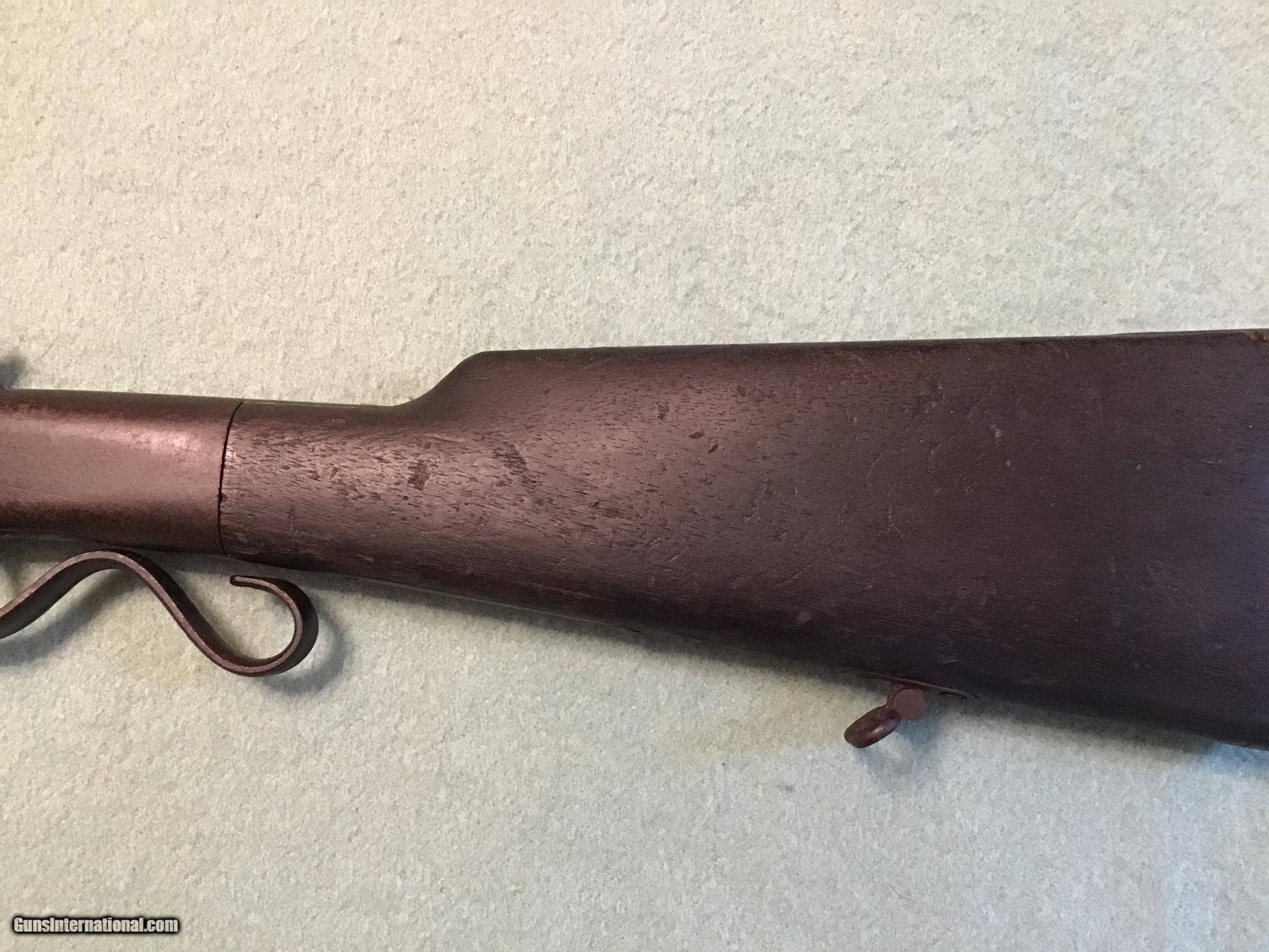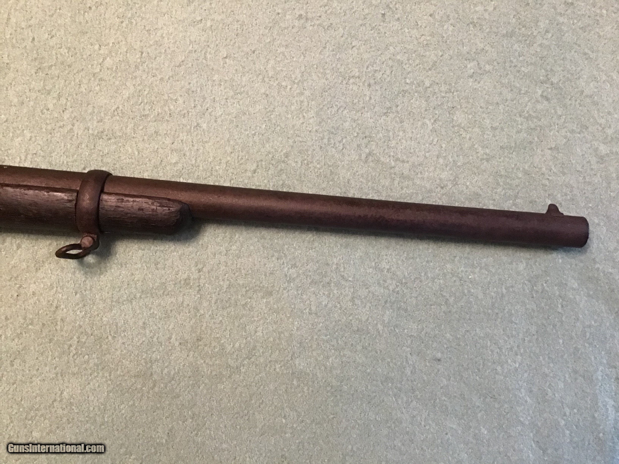 Description: On Hold Sale Pending Very rare Civil war Dwight, Chaplin & Company Ballard Single Shot Carbine serial number 82. Only 115 carbines were completed and delivered by Dwight, Chaplin & Co. by September 1863. The carbine is marked Dwight, Chaplin & Co./BRIDGEPORT, CONN/MERVIN.&BRAY/AGTS.N.Y. 82. The wood stocks are dark and in good condition with numerous small dents and wear. All metal parts are dark brown patina with pitting. The carbine appears complete but the tip of the hammer is broken off (see photos). The caliber is 56-56 and the bore is dark with pitting. Please feel free to contact me with any questions. Shipping will be actual cost approximately $50.00 by insured priority mail.On hold Sale Pending SOLD Antique: Yes Manufacturer: Dwight, Chaplin & Co. Serial Number: 82 |