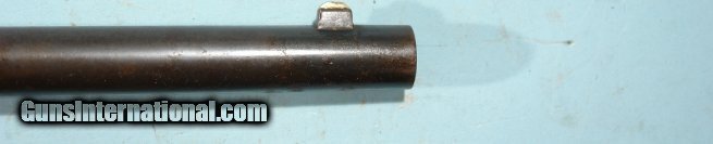 Description: FINE SHARPS U.S. MODEL 1863 WITH 1868 CONVERSION .50-70 GOVT. CAVALRY CARBINE. 22” barrel. Patent 1852 and 1859 Lawrence and Sharp’s patent dates on lock plate and frame. C20,xxx serial range and all original and matching. Much original blue on barrel and case hardening mixed with patina on lock. Fine screws with most of the blue finish. Wood with all the original finish with nice handling patina and crisp “DFC” cartouche. Working order and very good bore with good rifling. 100% original. SOLD Antique: Yes Rifle Caliber: .50 |