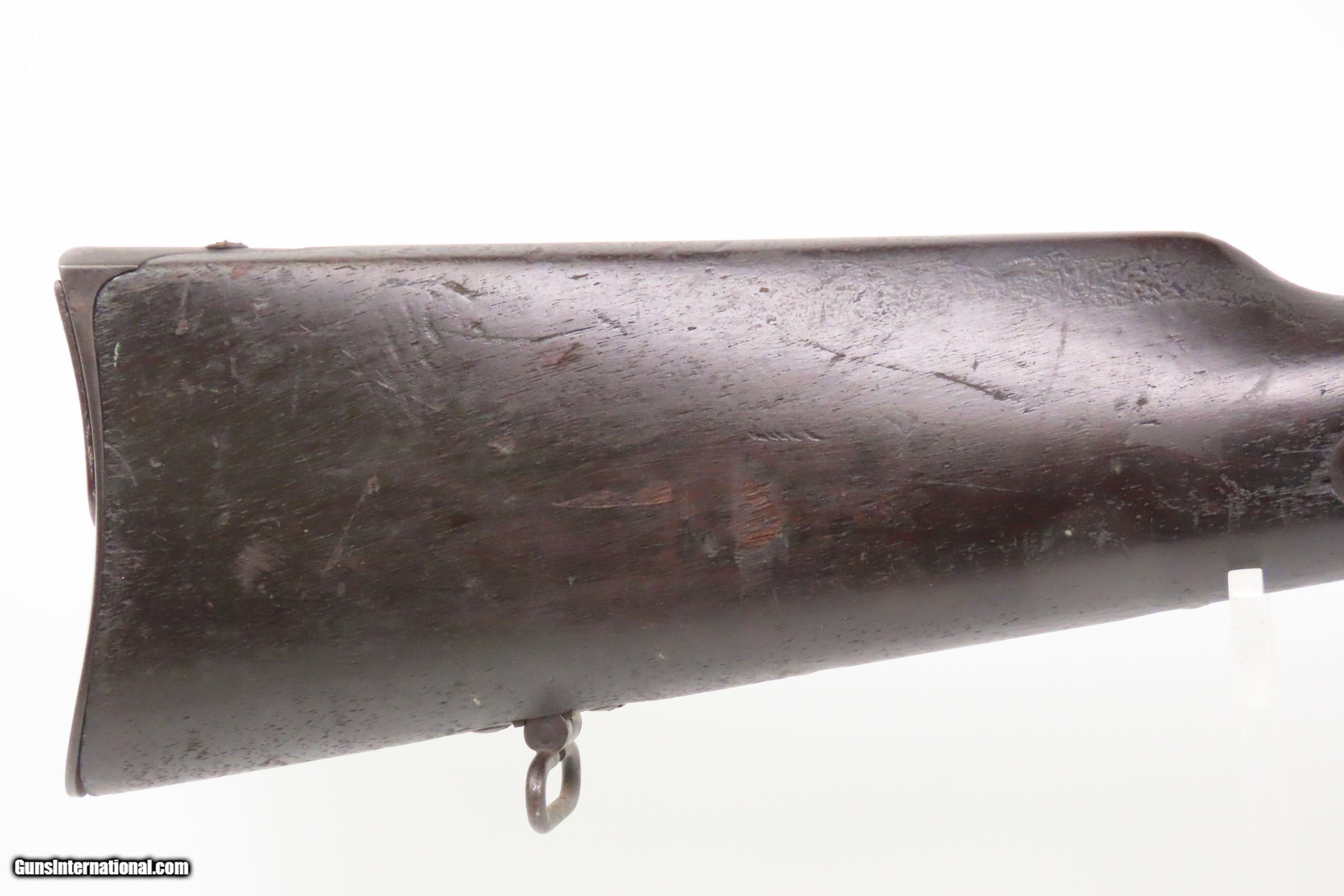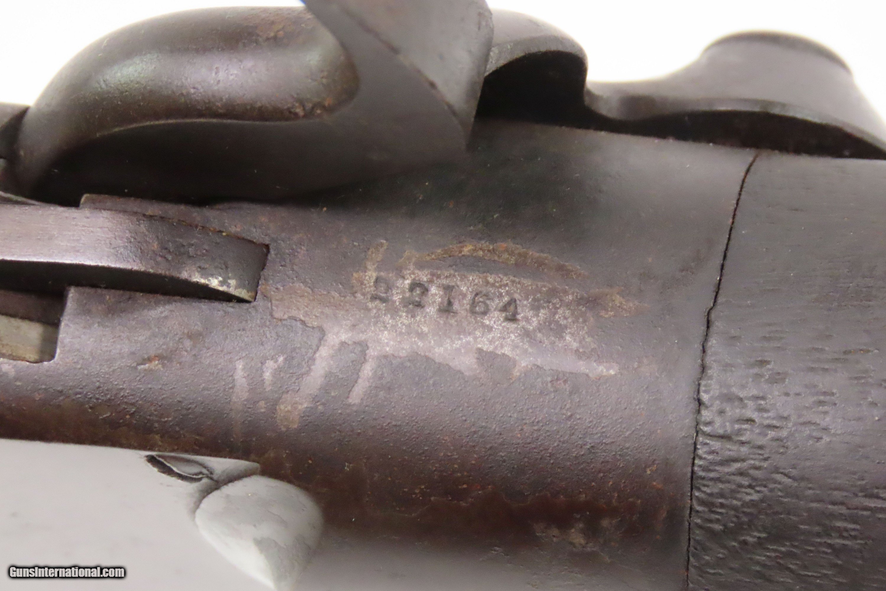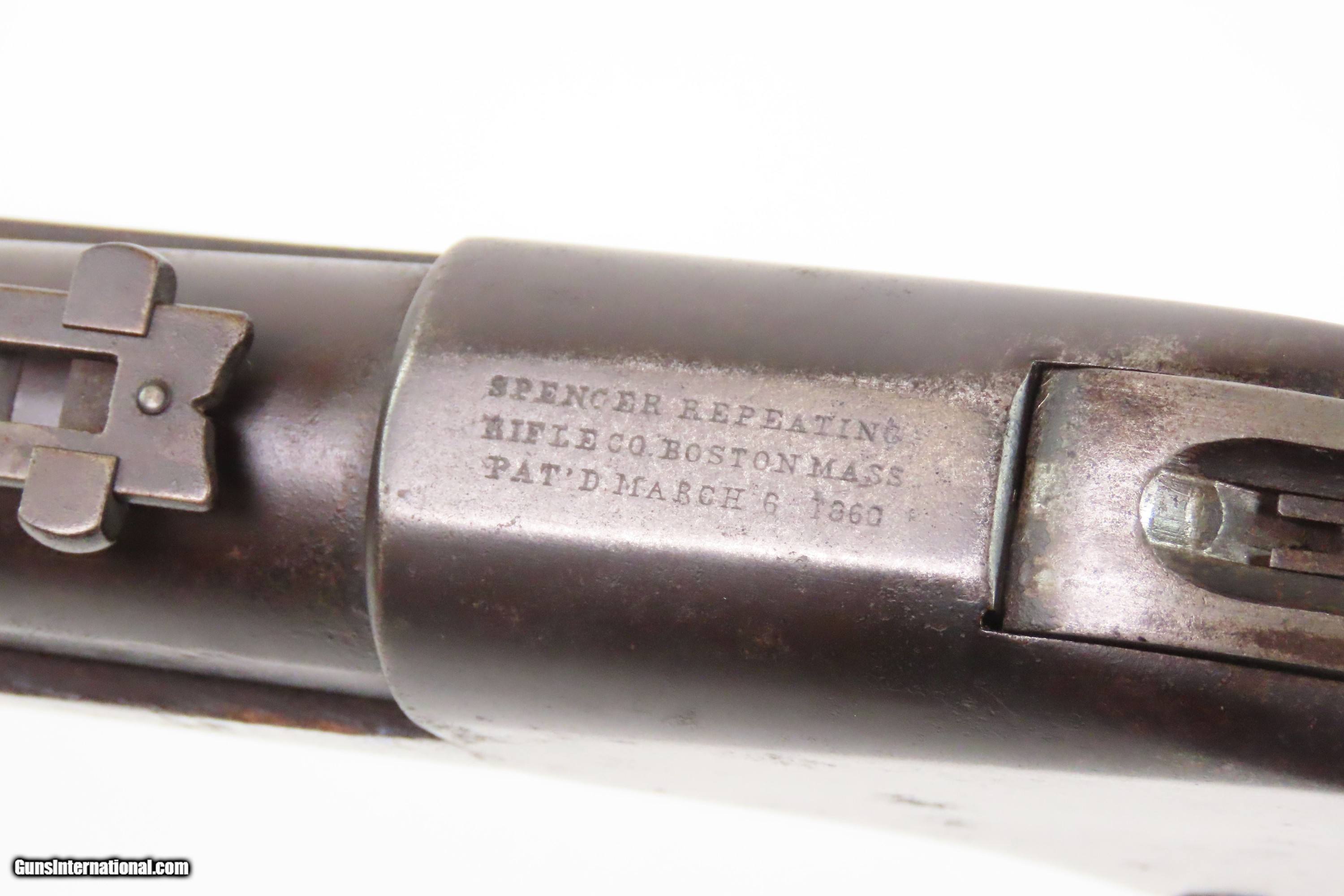 Description: Iconic CIVIL WAR/FRONTIER Antique M1860 SPENCER SR Carbine “UNFORGIVEN” Early Repeater Famous During CIVIL WAR & WILD WEST Here we present an antique Model 1860 Spencer Repeating Rifle Co. Army Model Saddle Ring Carbine, made circa 1863-1865 in Boston, Massachusetts, during the Civil War. The Spencer is a lever-action repeating rifle designed by Christopher Spencer in 1860, leading some to refer to this example as the “Model 1860”. These lever-operated, breech-loading rifles were marvels of the time and had a lasting impact on how war was to be fought in the future. Though their service life in the U.S. military was relatively short, the Spencer story includes Christopher Spencer, the inventor of the rifle, demonstrating and shooting with President Abraham Lincoln, who gave his full endorsement of the piece. The Spencer was the world's first military metallic cartridge repeating rifle, and over 200,000 examples were manufactured in the United States by the Spencer Repeating Rifle Co. and Burnside Rifle Co. between 1860 and 1869. The Spencer repeating rifle was adopted by the Union Army, especially by the cavalry, during the American Civil War but did not replace the standard issue muzzle-loading rifled muskets in use at the time. Among the early users was George Armstrong Custer. This Spencer carbine was a shorter and lighter version designed for the cavalry. This is the type of Spencer that was used by Morgan Freeman and Clint Eastwood in the movie “Unforgiven”. Many a buffalo were taken off the plains during westward expansion by the Spencer rifle. The overall condition is good. The finish has settled in as a smooth brown patina. Strong action. The wood is solid with average wear and a sliver is missing from the left side of the forend. Markings are legible. Own the original! This is a legitimate antique and not a reproduction. Barrel is 22 inches. Caliber: .52 Spencer Overall condition as seen in photos. Very Fast. Very Safe. FREE SHIPPING WORLDWIDE. Delivered directly to your door by express mail! Guaranteed AUTHENTIC & Includes CERTIFICATE OF AUTHENTICITY. ancestryguns $2600 #247177 SOLD Antique: Yes |