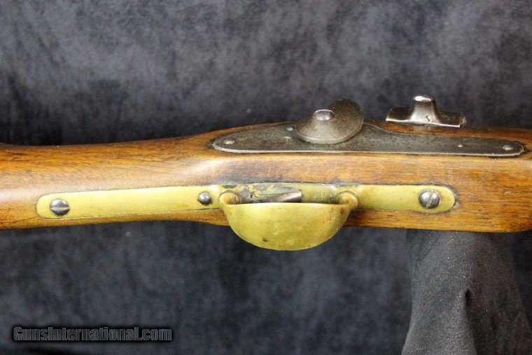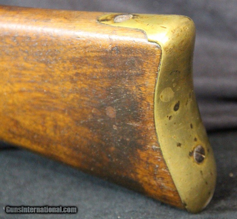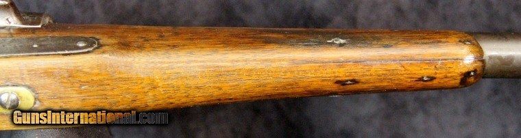 Description: 12ga, NVSN, 30 inch barrel, blue/brown finish, walnut stock, brass furniture, front bead, post Civil War. Condition: light black powder oxidation the length of the bore, lock and hammer gun metal gray, barrel plum, chip in stock next to top tang, very good mechanically, poor markings. Antique: Yes Price: $385.00 Contact Seller |