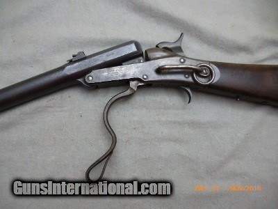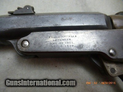 Description: Description: Description: MAYNARD CIVIL WAR BREECH LOADING PERCUSSION CARBINE, 50 cal., 20" bbl., sharp inspectors cartouche, exc. wood, carbine steel buttplate, original carbine sight, solid blade front sight, saddle ring bar with saddle ring on left side of receiver, , 95% bbl. blue, mint bore, beautiful example. MAYNARD CIVIL WAR BREECH LOADING PERCUSSION CARBINE, 50 cal., 20" bbl., sharp inspectors cartouche, exc. wood, carbine steel buttplate, original carbine sight, solid blade front sight, saddle ring bar with saddle ring on left side of receiver, 95% blue blue on bbl. mirror bore The Maynard Carbine: An Early American Breech-Loading Firearm The Maynard Carbine is a firearm that played an integral role in the history of American firearms. Developed in the mid-19th century, the carbine represented significant advancements in firearms technology, and was used extensively during the American Civil War. Development and Production of the Maynard Carbine The Maynard Carbine was developed by Dr. Edward Maynard, a prominent American dentist who had an interest in firearms technology. Maynard patented his first model of the carbine in 1851, and subsequently improved and developed the design over the following years. The carbine was manufactured by the Massachusetts Arms Company based in Chicopee Falls, Massachusetts. The production period for the carbine was primarily between 1857 and 1865. The Maynard was notable for its unique priming system, Maynard Tape Primer. Maynard's invention was a simple, efficient, and reliable method to ignite the powder charge in a firearm. It used a roll of caps, similar to the ones found in a cap gun, housed in a compartment above the breech of the firearm. The priming system was mechanically advanced each time the hammer was cocked, ensuring that the gun could be fired rapidly and reliably. There were two main models produced: the First Model Maynard, made from 1857 to 1859, and the Second Model Maynard, produced from 1863 to end of civil war. Price reduced $1,650.oo or Best offer SOLD Antique: Yes |