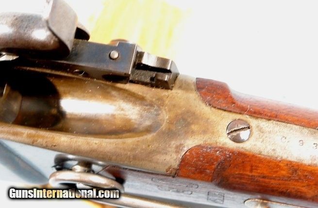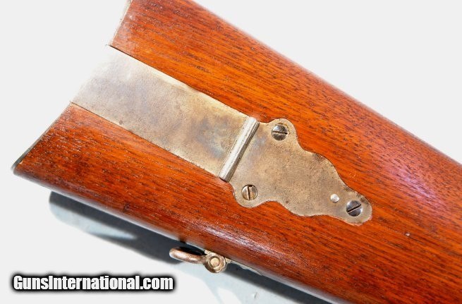Description: NEAR MINT INDIAN WARS SHARPS U.S. MODEL 1868 .50-70 CAL. CAVALRY CARBINE. 22” barrel with the original Lawrence Patent rear sight and original block and nickel blade front sight. All original numbered in the c,9xxx serial range. Post Civil War cartridge conversion by Springfield Armory as well as Sharps of the percussion New Model 1863 Carbine. Brilliant example with about 95% of the original color case hardening and 97% plus of the original blue. Excellent screws with much blue finish. Stock and forend with all the original finish. Patch box with original case colors on door and original blue on screws. Stock with mint and all correct Ordnance Inspector’s and Sub-Inspector’s cartouches including a perfectly struck banner “DFC” Indian Wars Springfield Armory cartouche of U.S. Army Ordnance Inspector David F. Clark. Perfect working order and mint bore. Nicest one we have had in 10 years. SOLD Antique: Yes |