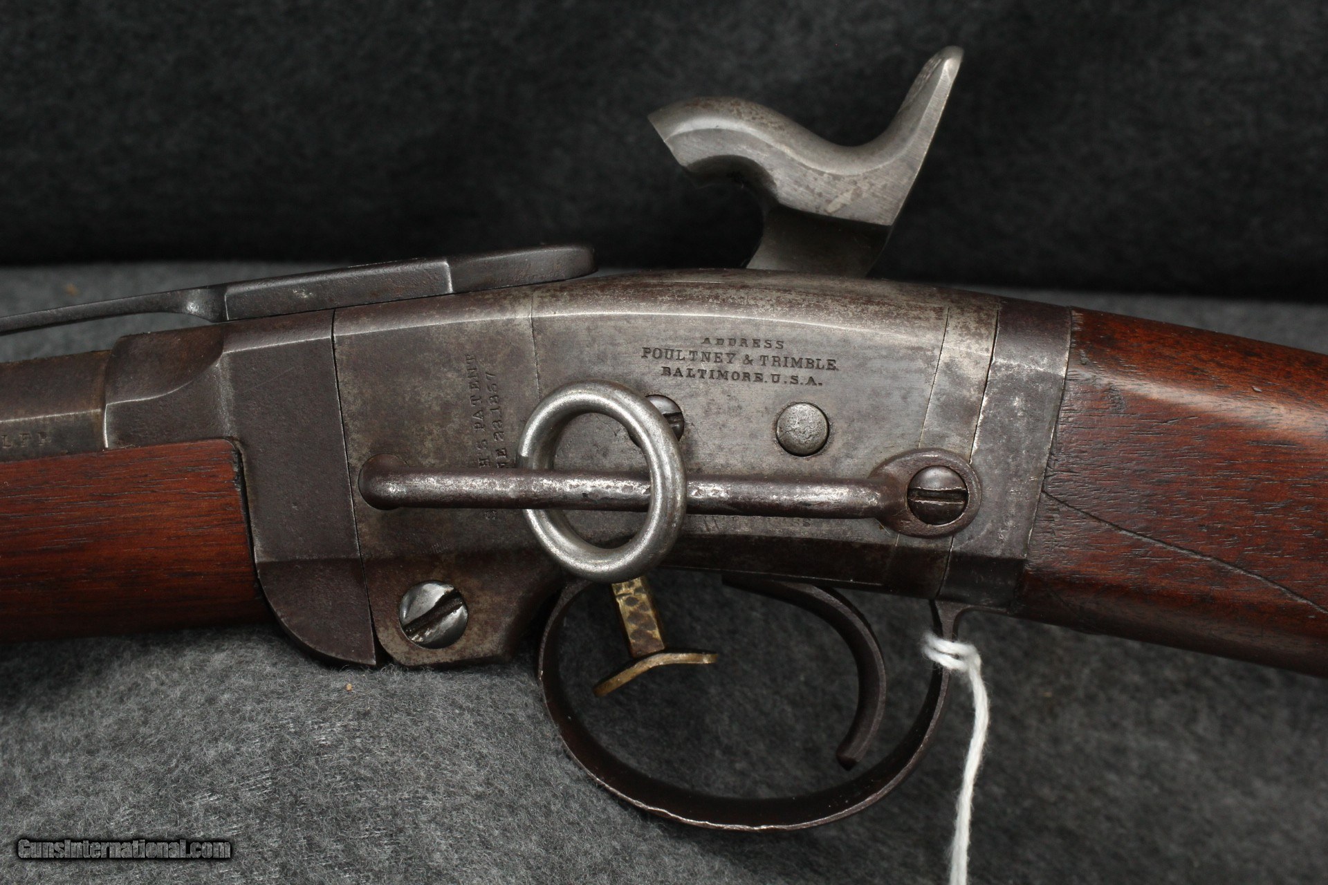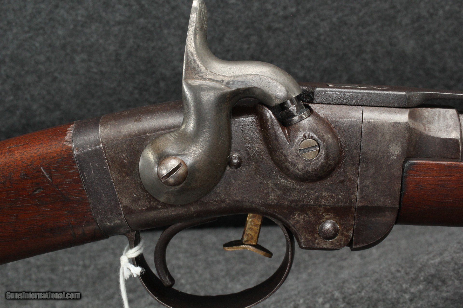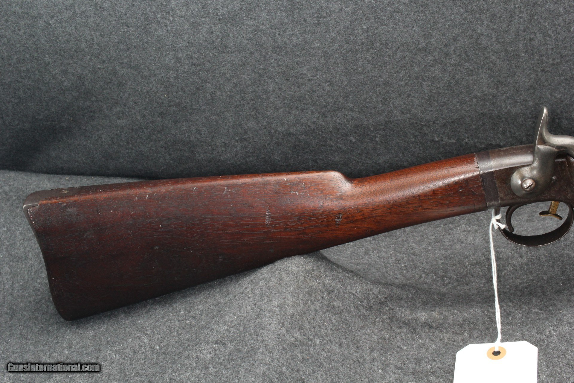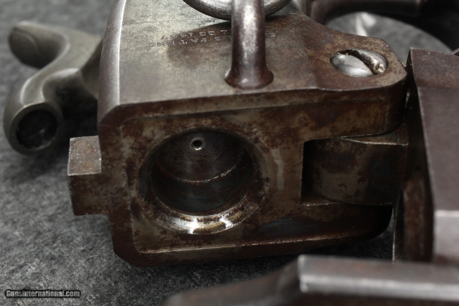Description: 50cal, serial number 76XX. Appears all original except for sights. Rear sight replaced with modern reproduction sight, front sight possibly altered with German silver insert. External metal shows uniform patina with minor pitting. Buttstock retains majority original varnish, crisp cartouche on left pistol grip. Apprears to be "J H". Scratch on left side of stock, not a crack. One minor crack on bottom left side of head, approx 1/2". Forend wood possibly cleaned and finish added. Epoxy around forend screw. Bore is primarily bright with one spot of heavy pitting, mid-forward portion of barrel. More photos on request. Please add $55.00 for shipping and insurance. SOLD Antique: Yes |