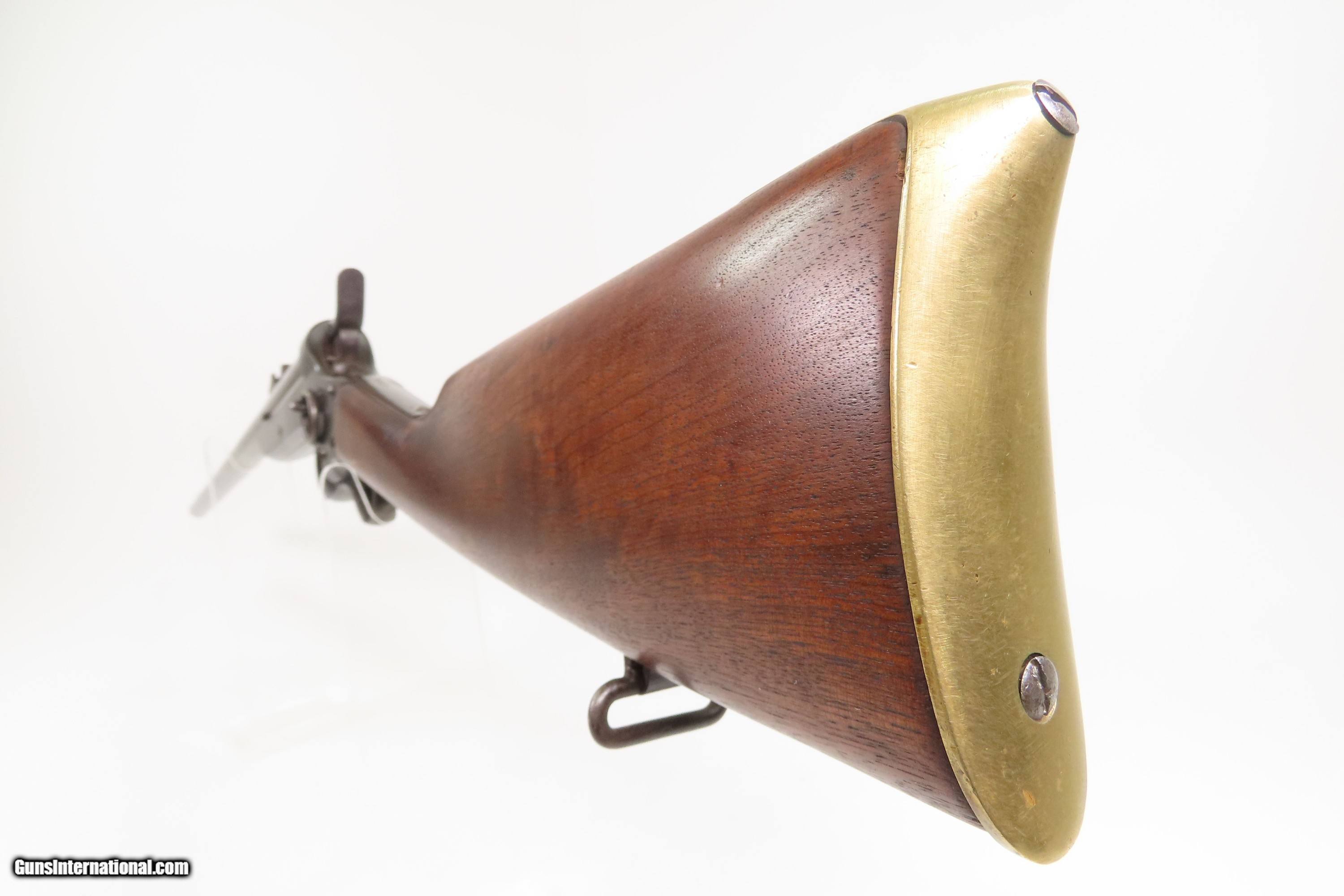 Description: RARE 1 of 500 CIVIL WAR Antique SHARPS & HANKINS Model 1862 ARMY Carbine .50 Rimfire, 19” Barrel, Saddle Ring Here Ancestry Guns presents an antique Sharps and Hankins Model 1862 Army Carbine manufactured circa 1864 in Philadelphia, Pennsylvania. This is an extremely scarce carbine with only 500 of the “Army” variants produced, with only 200 reportedly ordered by the U.S. Army. Sharps & Hankins produced three variants of their carbine, those being the Navy, the Army, and the Short Cavalry. The Sharps & Hankins 1862 Army Carbine is one of the scarcest Civil War carbines encountered. The shape of the carbine is distinctly Sharps and operates a bit differently than other carbines of the era. The trigger guard doubles as a lever, which is opened by pressing a small tab inside the smaller loop of the lever. Opening the lever slides the barrel away from the recoil shield for loading and unloading. It has a great elevating rear sight and brass butt-plate. The Army and Navy versions both had a 24-inch barrel with the Navy coming with a leather cover to protect the barrel from salt water. The Army version's barrel was blued. The Short Cavalry version had a 19-inch blued barrel. The overall condition is fine. Original blue finish remains with a gray patina on the barrel. The stock has been nicely refinished. The bore is in good condition and contains strong rifling. Robust action. Own the original! This is a legitimate antique and not a reproduction. Barrel is 24 inches. Caliber: .50 Rimfire Overall condition as seen in photos. Very Fast. Very Safe. FREE SHIPPING WORLDWIDE. Delivered directly to your door by express mail! Guaranteed AUTHENTIC & Includes CERTIFICATE OF AUTHENTICITY. $4200 #259353 Antique: Yes Price: $4,200.00 Buy Now Pay with