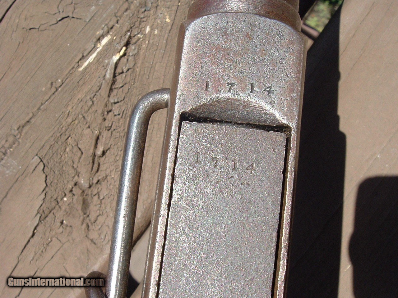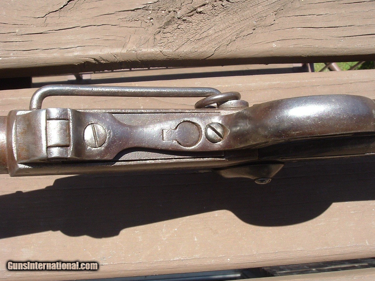 Description: Rare 2nd model Burnside carbine. Approximately 2,000 manufactured between 1861 and 1862. Very good condition overall. Serial #1714 matching. Clear Burnside markings on lockplate and lever latch. Barrel stamped with "CAST-STEEL 1861", all there, just light. The patent stamp on the breech is there, but really only remnants. The stock is very good+ with great color, just expected age handling wear. Half of the government cartouche is still visible. The metal overall is smooth brown mixing with age grey. The 21" barrel still retains good grooves. Very good mechanics. The butt swivel, sling ring and side bar are all present. This is a scarce carbine in very good+ condition overall. SOLD Antique: Yes |