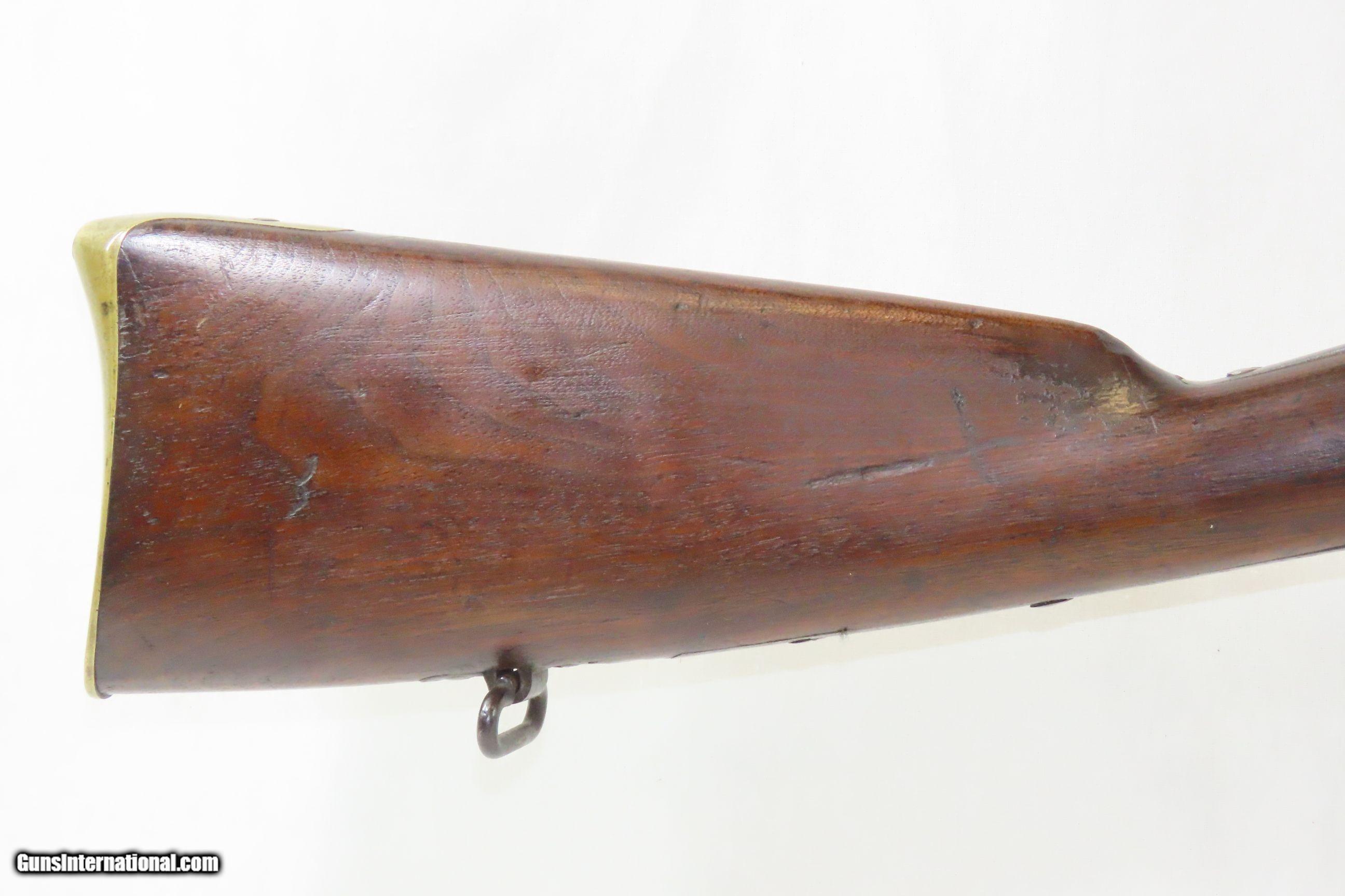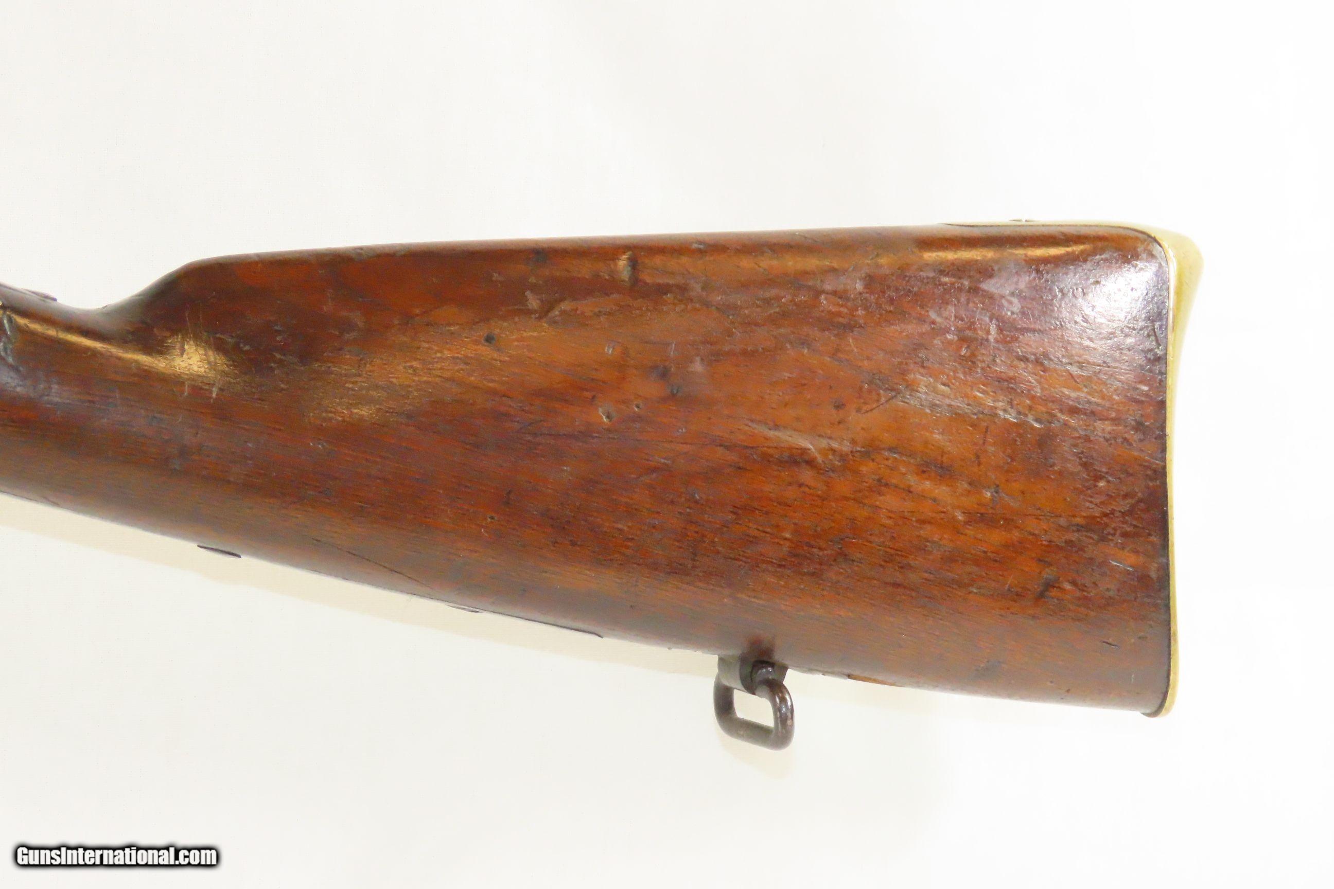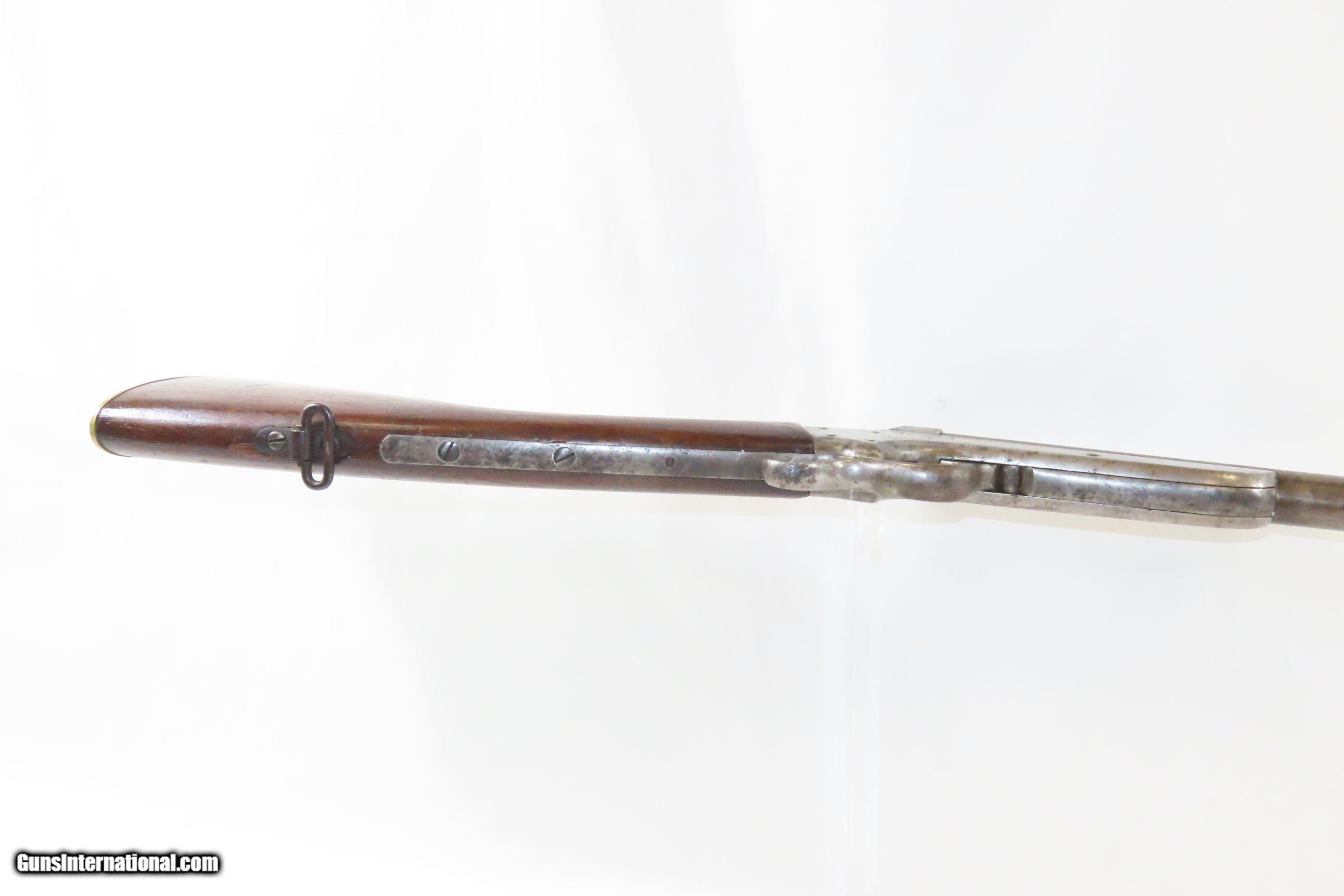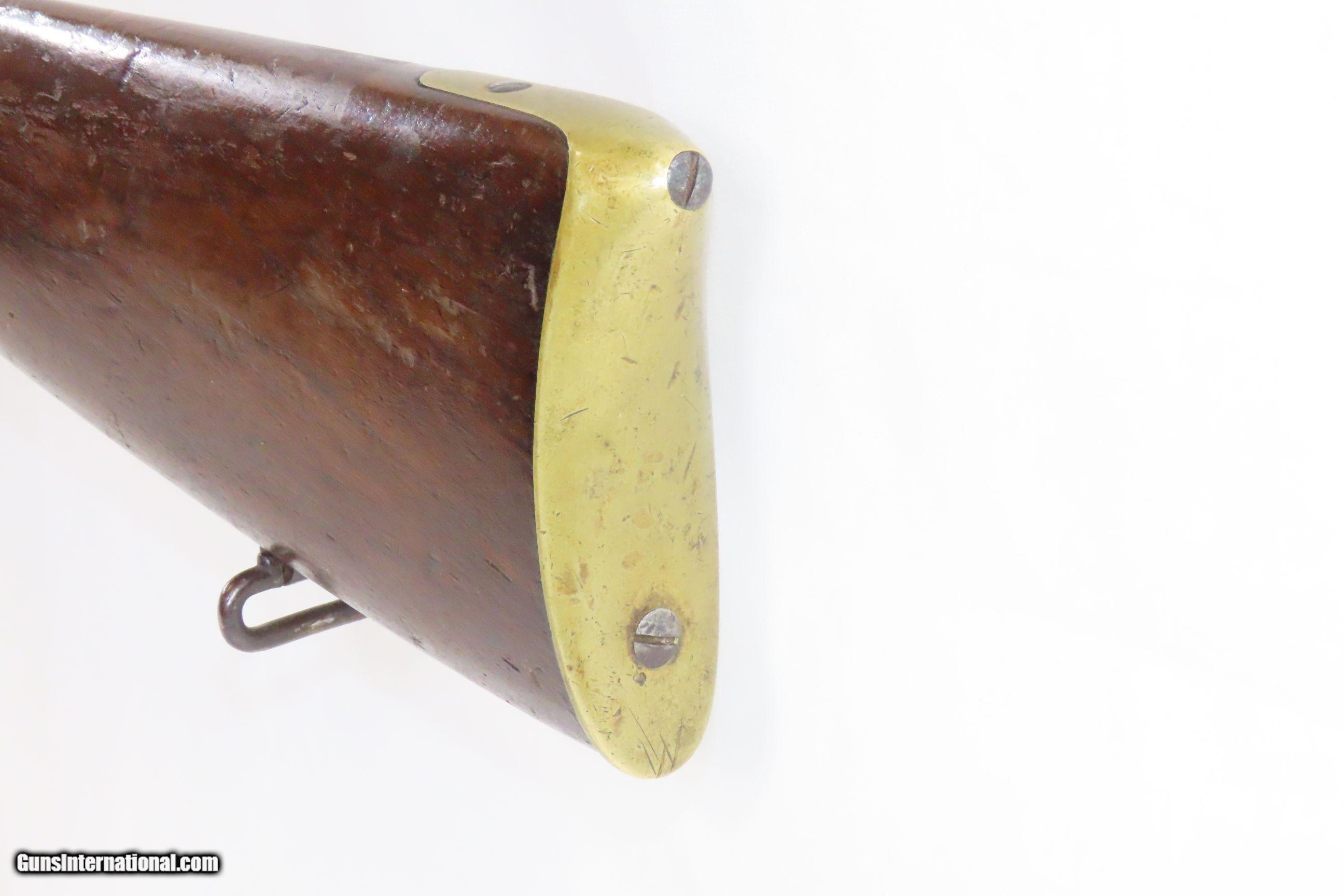 Description: RARE CIVIL WAR Antique SHARPS & HANKINS Model 1862 ARMY .44 Cal. RF Carbine SCARCE! One of only 500 Made Circa 1864 Here we present an antique Sharps and Hankins Model 1862 “Army” Carbine manufactured circa 1864 in Philadelphia, Pennsylvania. This is an extremely scarce carbine with only 500 of the “Army” variants produced. Making it even more scarce, the 500 “Army” carbines were primarily chambered in .52 rimfire, with a very limited number experimentally chambered in other calibers, such as this example in .44 caliber rimfire. Sharps & Hankins produced three variants of their carbine, those being the Navy (6686 produced), the Army (500 produced), and the Short Cavalry (1000 produced). Made from 1862-65, the bulk of production was the more numerous Navy Carbine was still only just over 8,000 total were produced. The Sharps & Hankins 1862 Army Carbine is one of the scarcest Civil War carbines encountered. The shape of the carbine is distinctly Sharps and operates a bit differently than other carbines of the era. The trigger guard doubles as a lever, which is opened by pressing a small tab inside the smaller loop of the lever. Opening the lever slides the barrel away from the recoil shield for loading and unloading. It has a great elevating rear sight and brass butt-plate. The Army and Navy versions both had a 24-inch barrel with the Navy coming with a leather cover to protect the barrel from salt water. The Army version's barrel was blued. The Short Cavalry version had a 19-inch blued barrel. The overall condition is very good. Gray patina throughout. The action is excellent. The bore is in great shape with strong rifling. The stock shows use and remains solid. Own the original! This is a legitimate antique and not a reproduction. Barrel is 24 inches. Caliber: .44 Rimfire Overall condition as seen in photos. Very Fast. Very Safe. FREE SHIPPING WORLDWIDE. Delivered directly to your door by express mail! Guaranteed AUTHENTIC & Includes CERTIFICATE OF AUTHENTICITY. ancestryguns $2995 #227581 SOLD Antique: Yes |