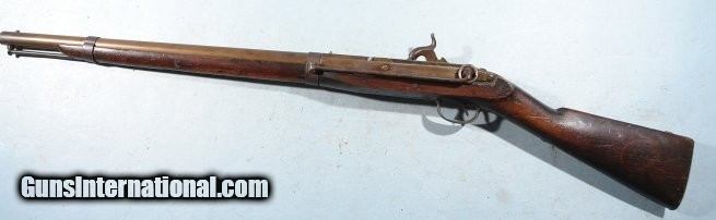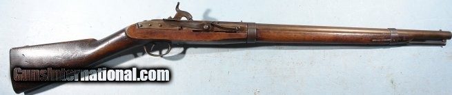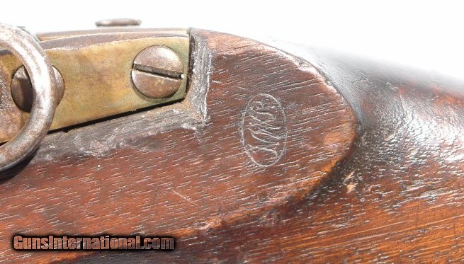 Description: RARE CIVIL WAR HALL-NORTH U.S. MODEL 1843 BREECH-LOADING PERCUSSION CARBINE. .52 caliber rifled 21” round barrel inspected at the breech “JP”. Breech block stamped ‘U.S./S. NORTH/MIDLTN/CONN/”. Crisp U.S. Ordnance Inspector’s cartouche on left side of stock behind ring bar. All original and complete in fine condition. Metal with deep plum brown finish mixed with patina. Stock with all the original finish and very sharp edges about the side panels. Perfect working order and very good bore. Used in both the Mexican War and the Civil War. Extra nice 100% original example. SOLD Antique: Yes |