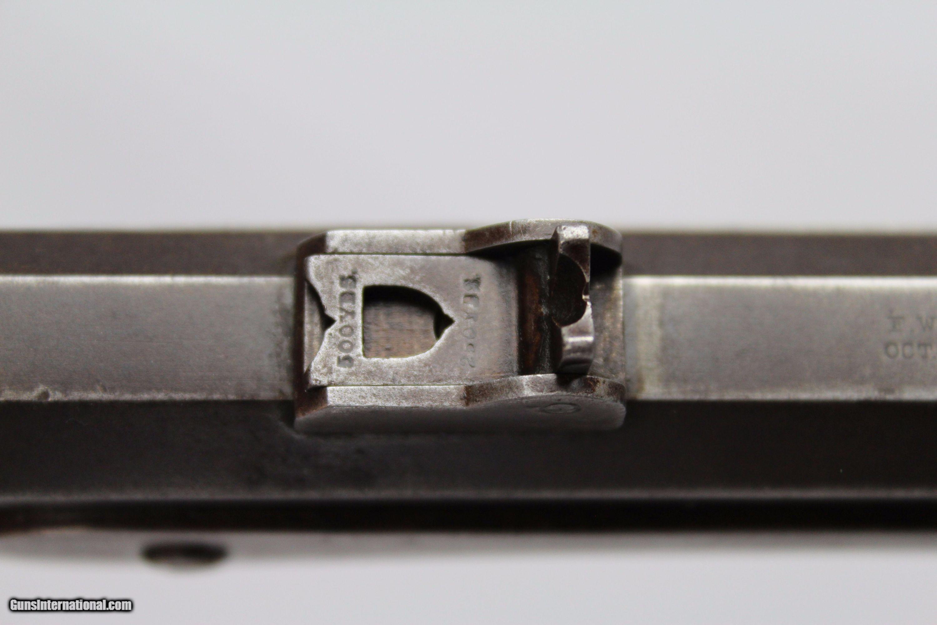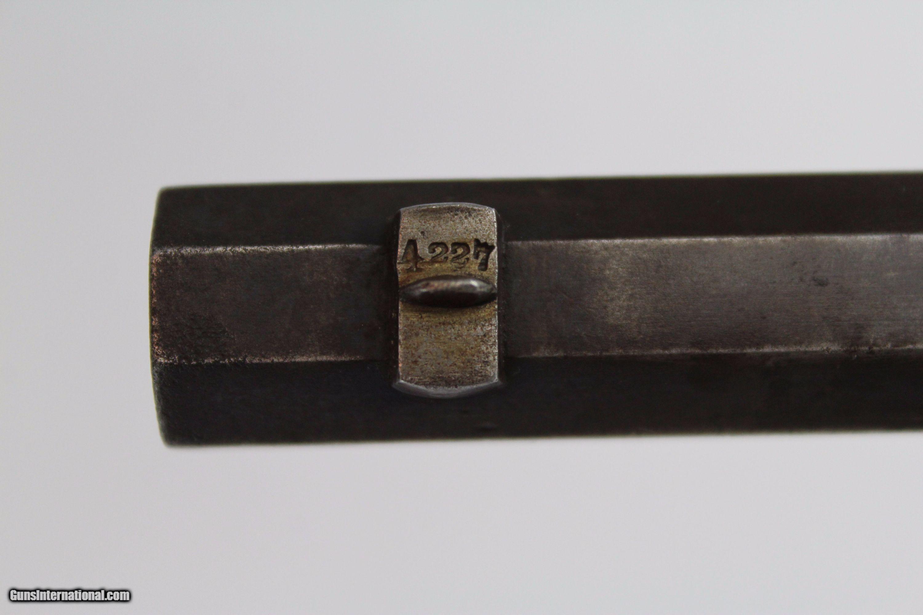 Description: RARE CIVIL WAR Kittredge Marked Frank Wesson CARBINE Used by the Kentucky, Indiana, Missouri & Kansas State Militias Here we present a Rare “B. KITTREDGE & CO./CINCINNATI O.” Marked Frank Wesson First Model Two-Trigger Military Carbine, made circa 1862 in Worcester, Massachusetts. Frank Wesson was the younger brother of Daniel B. Wesson, of Smith & Wesson, as well as Edwin Wesson, who was also a highly-esteemed gunsmith in the mid-to-late-1800s. The fame of his family’s name was not lost on Frank, but he was, in fact, a prolific firearms designer and maker in his own right. He was granted patents in 1859 and began producing rifles of this two-trigger configuration. The Civil War was a fantastic opportunity for many different inventors and over 20 different carbines were used during the conflict on the Union side. Frank Wesson made a version of his rifle in a .44 caliber rimfire carbine format that was specifically geared for Cavalry troops. While it is unclear whether or not Federal troops used these carbines, it is known that Kentucky, Indiana, Missouri, Kansas, and Ohio purchased these for their state militias. It is truly amazing the diversity of carbines that were used during the American Civil War. This carbine is particularly slim, light and handy. The two-trigger design is perhaps the most eye-catching part of this carbine. The front trigger is pulled to open the breech after the hammer has been placed in half-cock. The slotted tab on the right side of the barrel is a stop that limits the travel of the barrel when pivoting. The trigger guard is a separate iron piece that can act somewhat like a pistol grip. The butt plate is also of iron. The rear sight is a two-leaf system, with a battle sight marked “100 YDS.”, a longer leaf that is marked “250 YDS.” at the bottom of the shield shaped aperture, and “500 YDS.” at the top of the leaf. The front sight is serial numbered and matches the trigger guard. The top of the barrel is marked “F. WESSON’S PATENT/OCT 25 1859 & NOV 11 1862.” as well as “B. KITTREDGE & CO./CINCINNATI O.” The Kittredge Company was a large firearms dealer based in Cincinnati, Ohio, through which many state militias acquired firearms for their men. Only about 2,000 of these are thought to be so marked. The overall condition of this piece is very good plus. The barrel shows traces of original blue finish. The markings are clear and legible. The serial numbers match. The walnut stock shows a bit of period wear, but is in very good condition. The bore is well-rifled and clean. The action is excellent and strong. Here is a fantastic example of a hard to find Civil War Carbine by Frank Wesson! Own the original! This is a legitimate antique and not a reproduction. Barrel is 24 inches. Caliber: .44 Rimfire Overall condition as seen in photos. Very Fast. Very Safe. FREE SHIPPING WORLDWIDE. Delivered directly to your door by express mail! Guaranteed AUTHENTIC & Includes CERTIFICATE OF AUTHENTICITY. ancestryguns $2200 #5156 SOLD Antique: Yes |