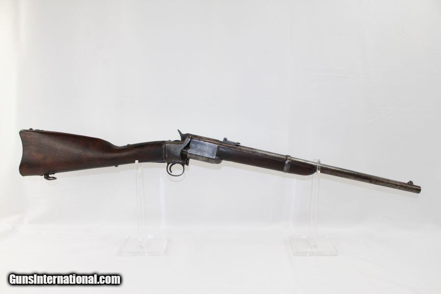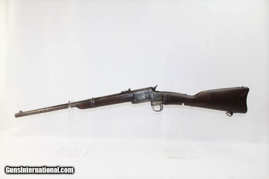 Description: RARE & Unique “KENTUCKY” Marked CIVIL WAR Carbine Triplett & Scott Made for KY Home Guard Circa 1864 Here we present an antique “KENTUCKY” Marked Triplett & Scott Patent Carbine, made circa 1864 by Meriden Manufacturing Company of Meriden, Connecticut. Meriden Manufacturing was founded by Charles Parker and his brother, who would later go on to become one of the most famous firearms manufacturers in the world with his beautiful shotguns. That firm would be called Parker Brothers. However, these brothers would first make themselves by contracting for the Union government during the American Civil War. They produced the Triplett & Scott Repeating Carbine on contract with the state of Kentucky for 5,000 pieces. These were to be issued to the Kentucky Home Guard for supply train defense for the Union Army as General Sherman marched on Atlanta. The diversity of weapons, especially carbines, during the Civil War was incredible. All of them are different in their own way. The Triplett & Scott Rifle & Carbine differentiates itself by its operation. The 7-shot magazine tube is housed in the front of the wrist of the butt stock. By placing the hammer in half-cock and depressing a button with the right thumb, one would be able to twist the forward portion of the gun, which would activate the automatic ejector, pushing the empty case out, before the receiver pushed aside the loading gate on the magazine tube to pick up another cartridge. The design was quite ingenious and the precision with which it was executed is still evident. This rifle is marked “KENTUCKY” on the left side of the receiver. The tang is marked “TRIPLETT & SCOTT/PATENT DEC. 6, 1864”. The left side of the frame is marked “MERIDEN MANFG. CO./MERIDEN. CONN.” The right side of the frame is marked with the serial number. The overall condition is good. The metal surfaces have a dark patina with a peppered appearance on the receiver. The markings are clear. The stock has been repaired around the wrist and is particularly thin around the magazine tube per usual on this model. The bore is bright with sharp rifling. The action is strong. Here is a unique Civil War rifle with Kentucky heritage! Own the original! This is a legitimate antique and not a reproduction. Barrel is 22 inches. Caliber: .52 Spencer Overall condition as seen in photos. Very Fast. Very Safe. FREE SHIPPING WORLDWIDE. Delivered directly to your door by express mail! Guaranteed AUTHENTIC & Includes CERTIFICATE OF AUTHENTICITY. ancestryguns $2175 #8609 SOLD Antique: Yes |