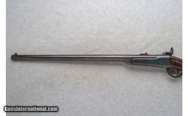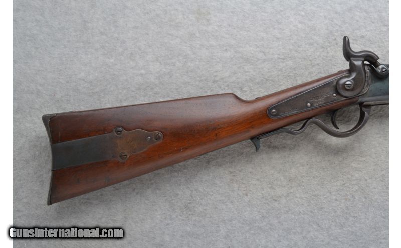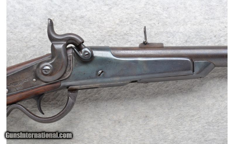 Description: This Richardson & Overman Model Gallager is a .50 Cal. single shot rifle. It is a civil war carbine that saw extensive service as a calvary arm with the Union Troops. It has a 22 1/4 inch rifled barrel and a smooth grip walnut straight stock. Has a percussion cap ignition. No extraction system. It is loaded by pulling down on the lever and the barrel moving forward and pivoting down. Actually in pretty good condition for it's age it shows some light wear and handling. The barrel has patina and minor handling marks. SOLD Antique: Yes Manufacturer: S/N 22336 Caliber Info: .50 Cal. Chambers: Single shot. Metal Condition: Very good. Shows some use, wear and barrel patina. Wood Condition: Very good. Minor handling marks. Bore Condition: Very good. Barrels: 22 1/4 inch rifled barrel. Stock: Smooth grip walnut straight stock. Right side of the buttstock has a hinged patch box. Sliding saddle ring. Stock Dimensions: LOP 13 1/4 inches. Fore End: No actual forearm. The metal receiver would be used to steady. Butt Pad: Smooth curved steel. Weight: 7 lbs. 11 oz. Sights: Short blade front. Folding twp position notch middle. Item Location: Richfield, WI |