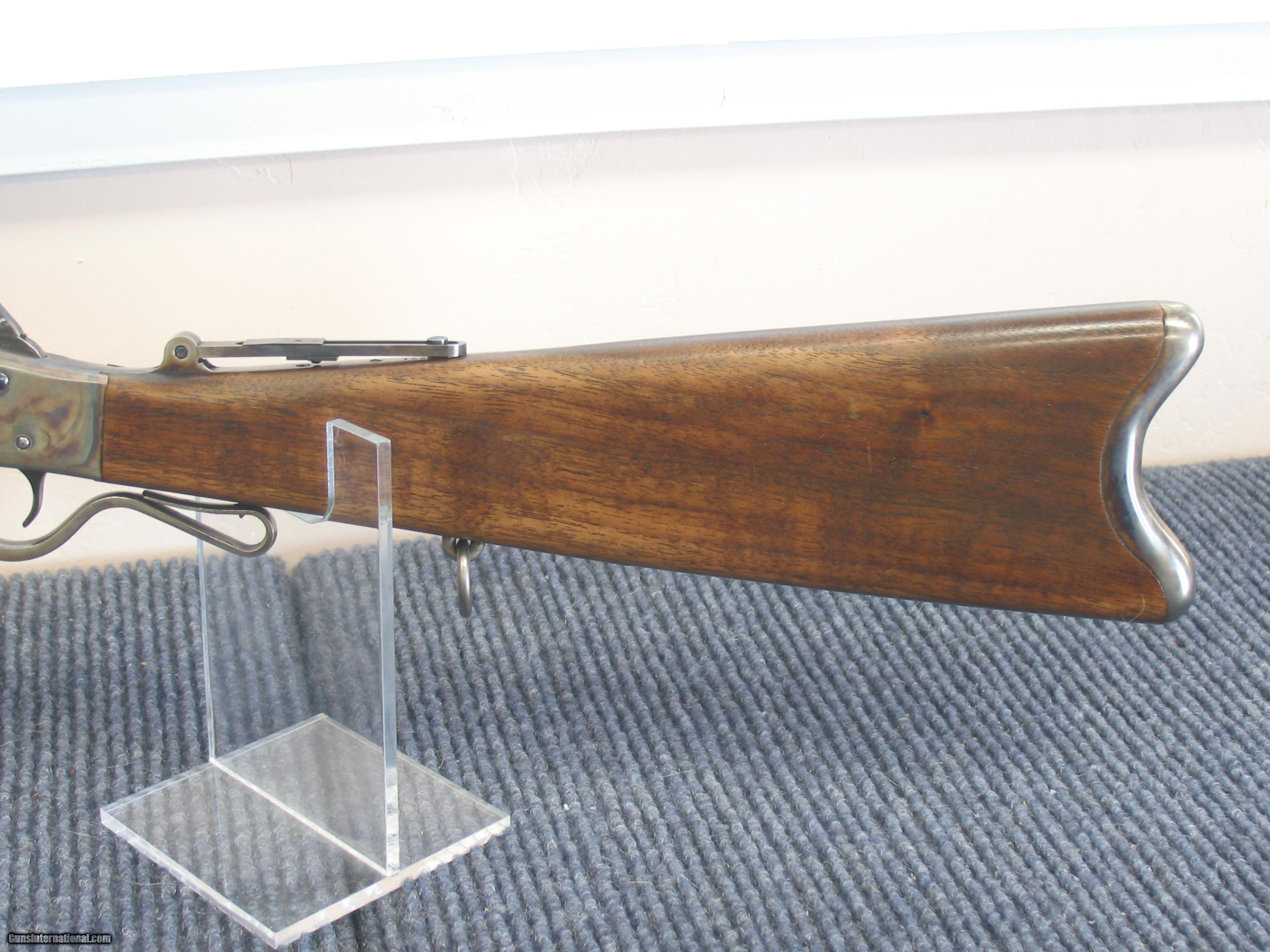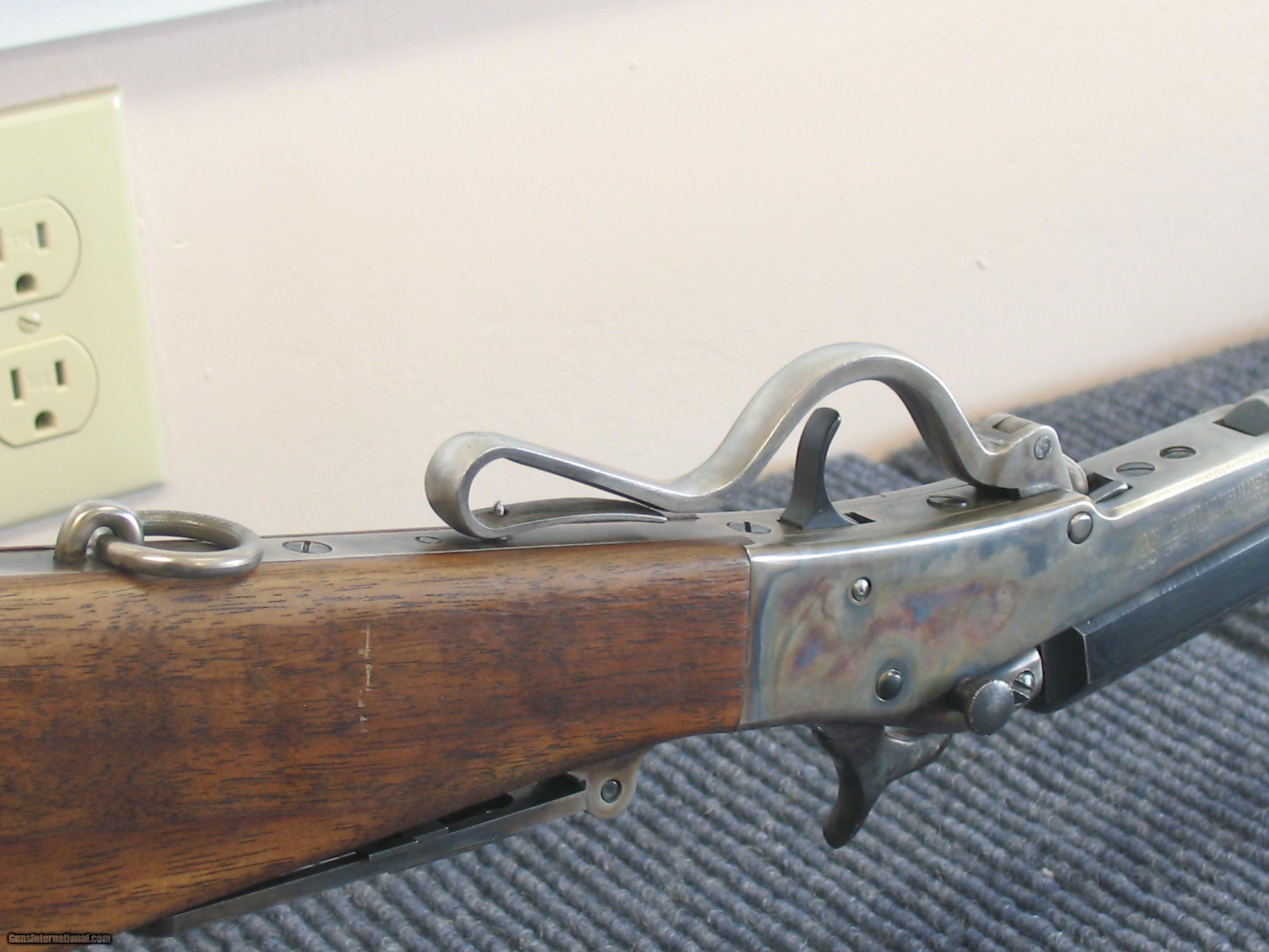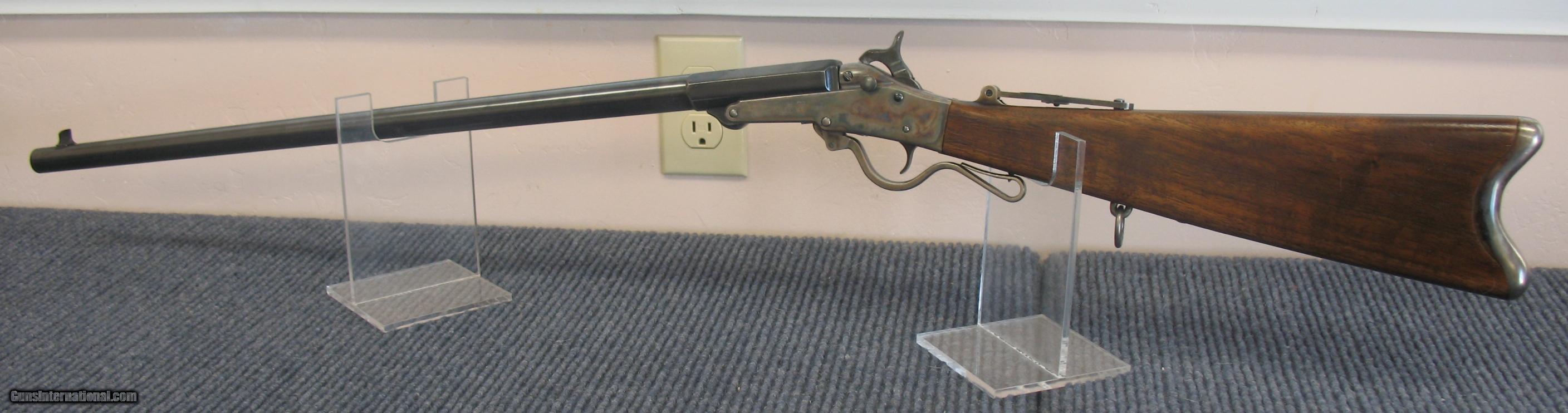 Description: This is a reproduction of the First Model Maynard percussion carbine, produced in limited quantitites just prior to the Civil War. 2,369 of them were purchased by the states of Georgia, Florida and Mississippi, and issued for use in the field. No Maynard carbines were purchased by the Federal Government until June, 1864, and these were of a different "Second Model" Maynard. The First Model Maynard had a unique cartridge system in which the barrel of the gun lowered at the breach by means of an operating/trigger guard allowing the insertion of a special metallic cartridge with an extra wide base. The gun featured a target quality rear sight and was extremely accurate. Despite its small size and comparatively light weight, it proved well made and rugged in field use. This gun was produced by the L. Romano Company as a faithful reproduction of the original for intended use in competition by members of the North South Skirmish Association. (Information on this producer and products may be found at Romanoriflecom). Romano First Model Maynard carbines have been used frequently and found very accurate in NSSA carbine competition. Note for the uninitiated: To shoot this gun a shooter must use appropriate loads per cartridge of correct grade black powder only, appropriately create (cast) and size his own bullets, and properly load speciality brass cartridges. Unless you are going to educate yourself with the help of a knowlgeable Maynard I user and obtain all the specialty supplies you will need to shoot this gun, you need to approach it as a wall hanger only. For NSSA skirmishers: Having relocated to Western Colorado, I am offering for sale my Romano First Model Maynard, Serial #129, which has been a good friend for a number of years, and a consistent medal winner in my Marksman’s class. Gun is used but not abused, and taken care of through its life with me. See accompanying pictures. Bore remains very good. Wood finish is intact with some minor surface dings on the right flat of the stock. Slight bluing wear on the front of the barrel from the sight forward where the sight guard has rubbed. Mechanics are excellent, and the gun is ready for quality work on the line. The existing nipple is Romano made and probably at its half life point. I am including with the gun a new and unused Gorsky made spare which is already tapped for the gun. I am also including a second rear sight, and a new and unused spare trigger. There is no possiblity of "meeting at the Fort". This gun will have to be shipped. A 3-day inspection applies to purchase in accordance with GunsInternational guidelines. The cost of shipping (including insurance) by UPS ground will be in addition to the purchase price. Jim (“Tater”) Carr, V9786 13th Confederate Infantry SOLD Curio/Relic: Yes |