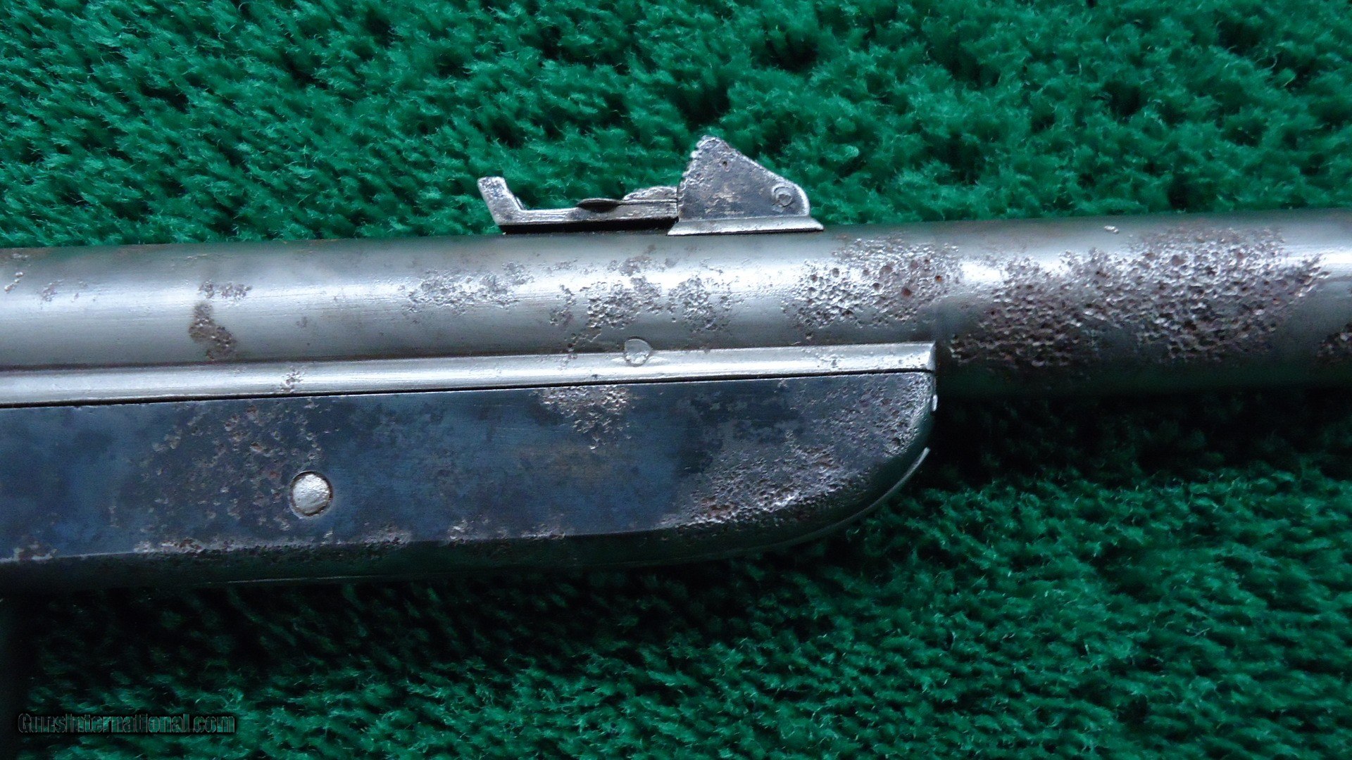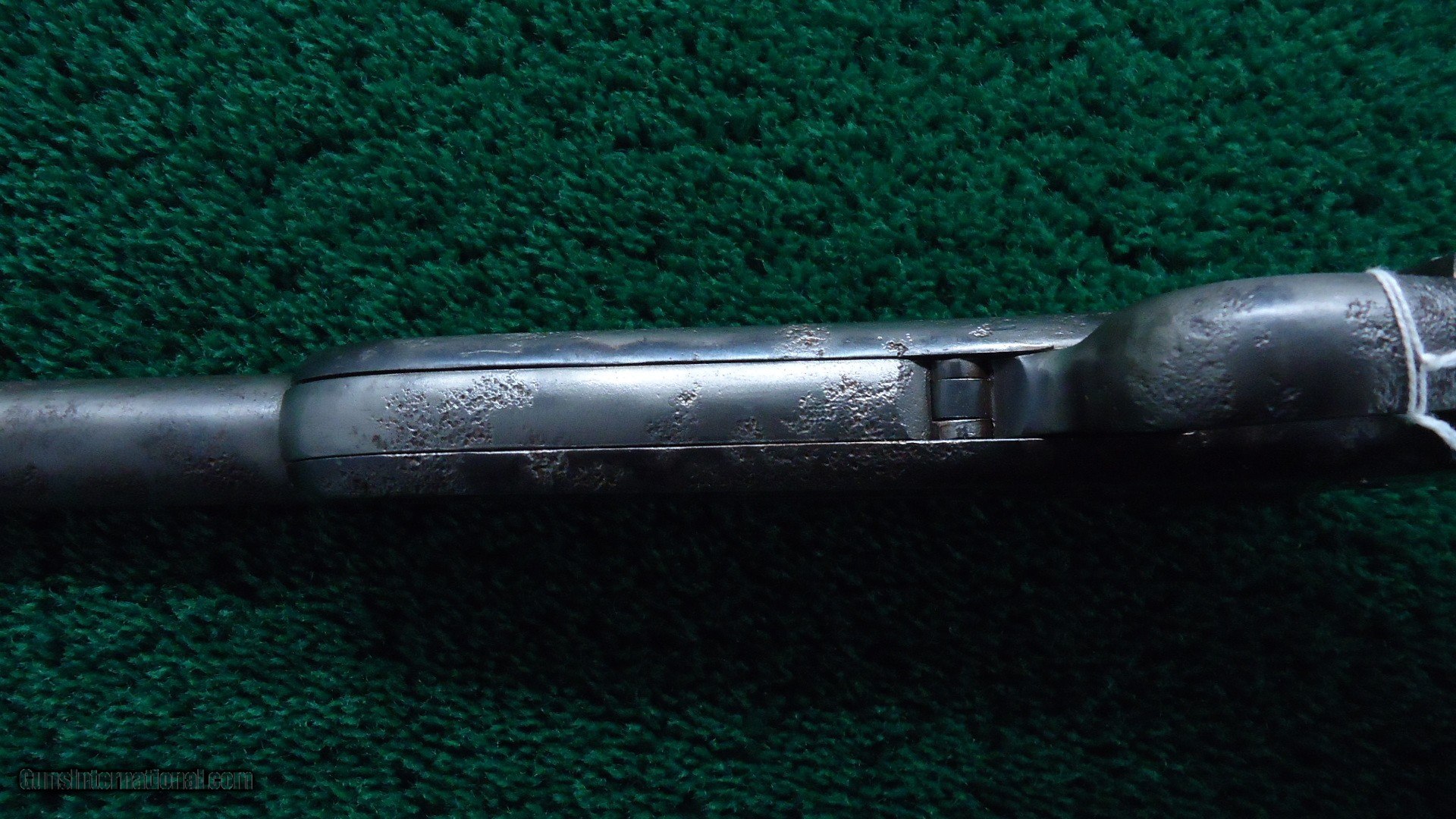 Description: These generally had a leather cover on the barrel and that drew moisture making some terrible pitting. This one is no exception. Pits from one end to the other. Some pits on the receiver as well with about 75% blue remaining. Stock are good with a brass buttplate and correct sling swivel. Mechanics and bore are all good. Original sights. These are quite scarce to find in any condition. Leroy Merz Antique Firearms specializes in antique and vintage Winchesters and other fine American firearms. Since 1965 Mr. Merz has taken part in the world of firearms and has been a contributor to many well known reference books. We have hundreds of additional guns in every price range at our home online. Search for Merz Antiques in google. SOLD Antique: Yes |