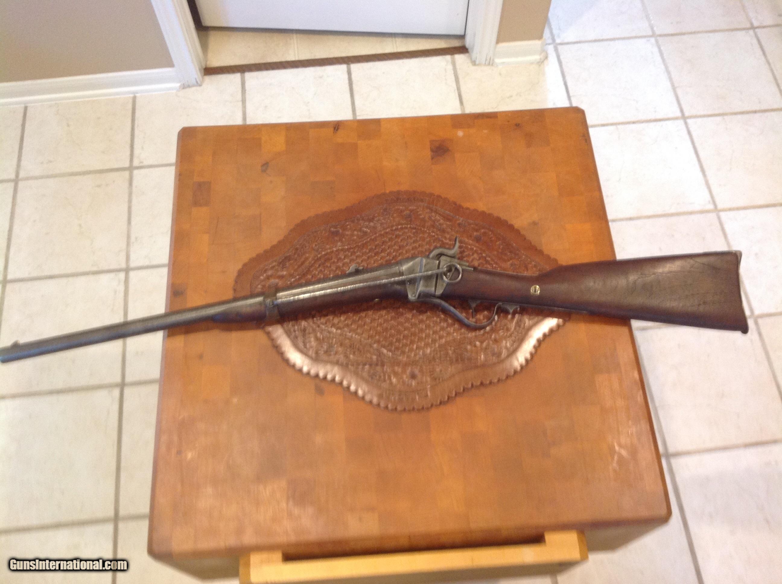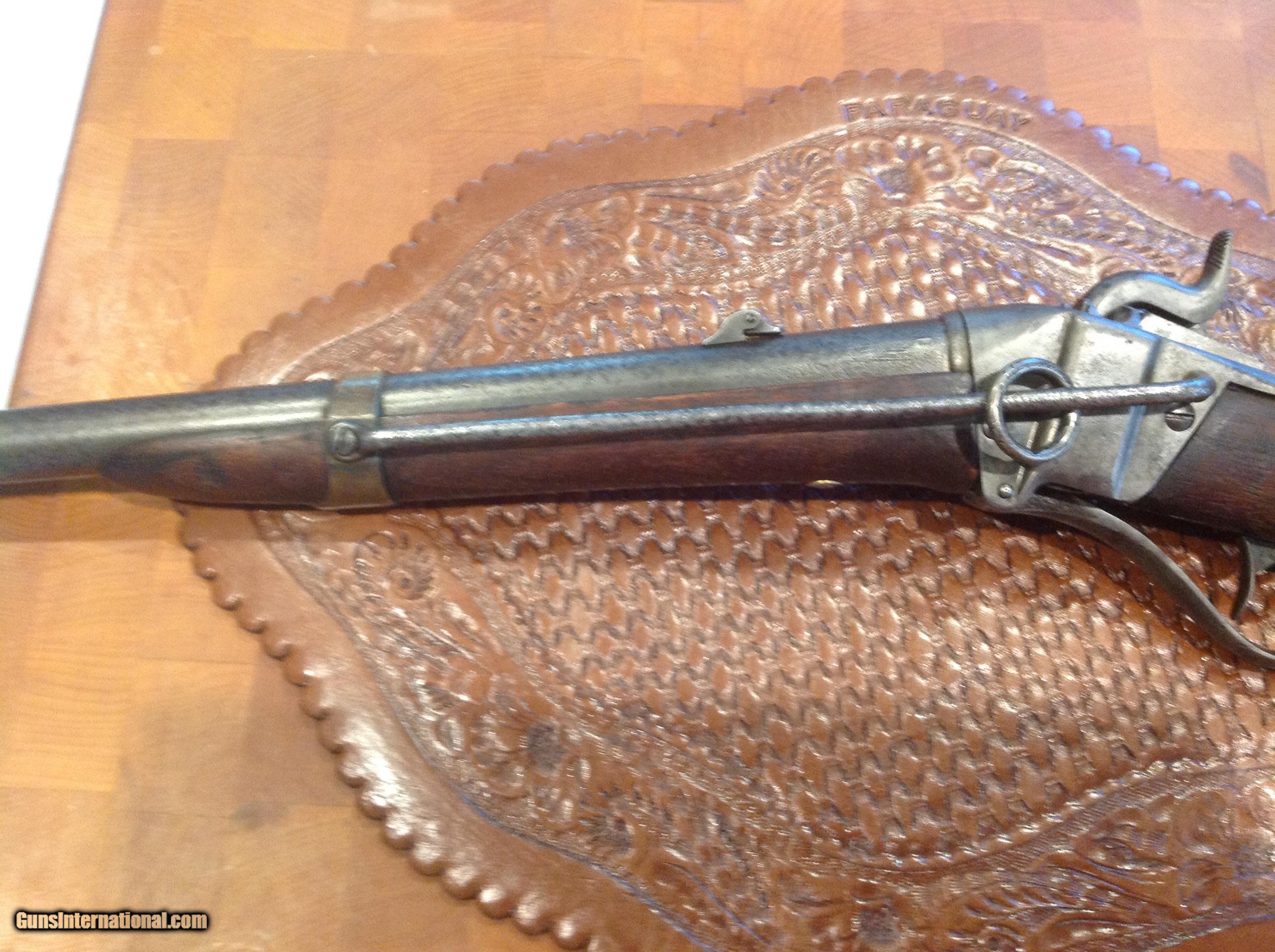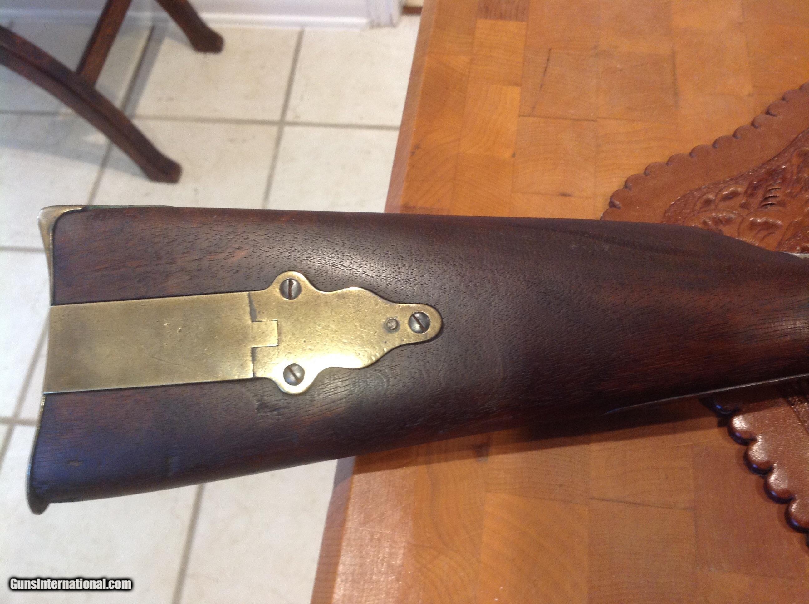 Description: Very good condition highly sought after original percussion ( not converted) Model 1853 Sharps Slant Breech Carbine fresh to the market from the Texas Hill Country. Known as the John Brown Model 1853 Sharps after the abolitionist's raid on Harper's Ferry. Nice working action. Lots of bore (very good condition and not dirty) and visible maker and patent marks. Stock is in very good shape. Honest wear and tear. No stress cracks. The brass hardware has a beautiful patina. Iron has expected light pitting and dark patina. The spring hinge pin is broken at the top slightly (see the picture) but the action works fine and the pin stays locked in position. SN 14653. These were used by both the Confederates and the Union. Very Nice Condition rare early model sharps for an extremely competitive price! Purchased originally from Brian Akins Rebel Relics. Compare prices and quality. You will not find any original John Brown 1853 Snarps for this price and quality. SOLD Curio/Relic: Yes Antique: Yes |