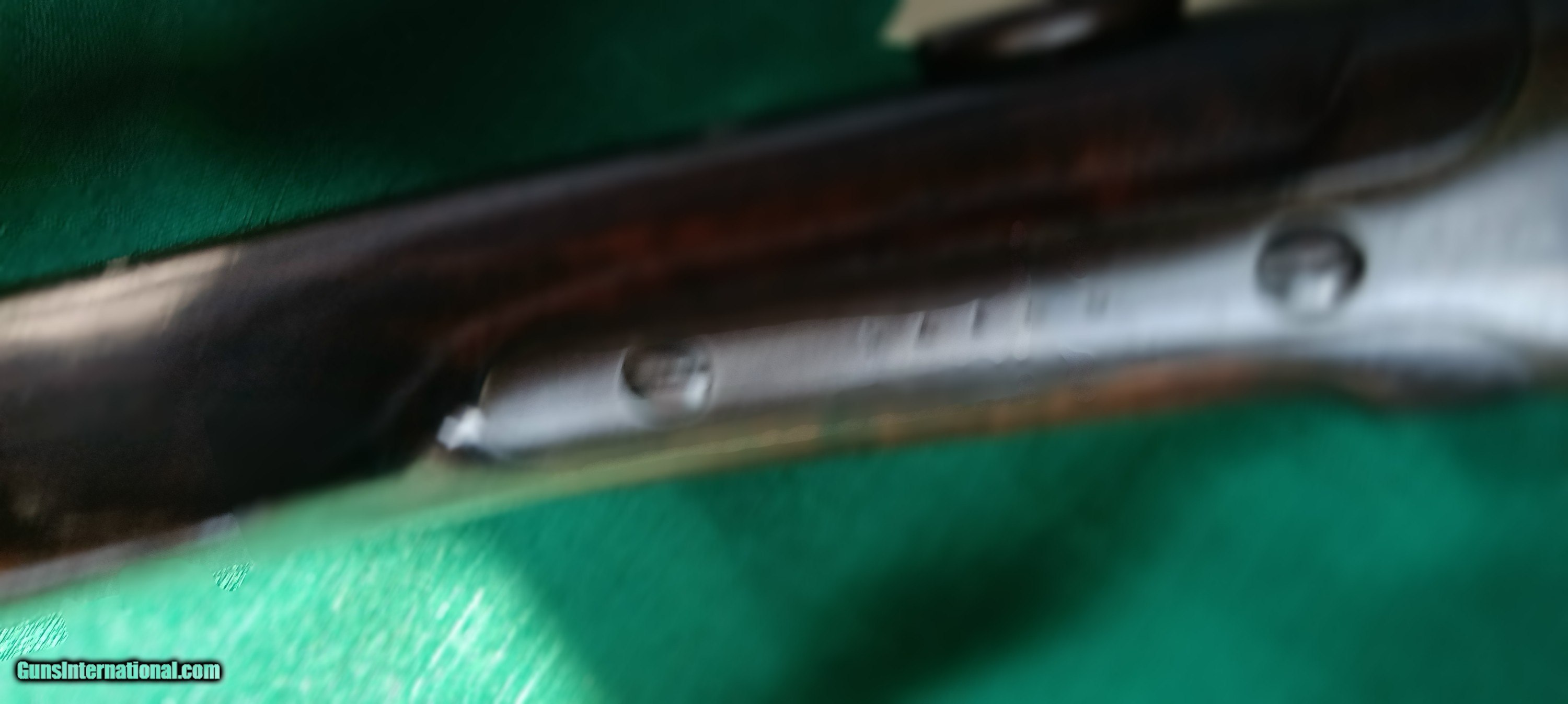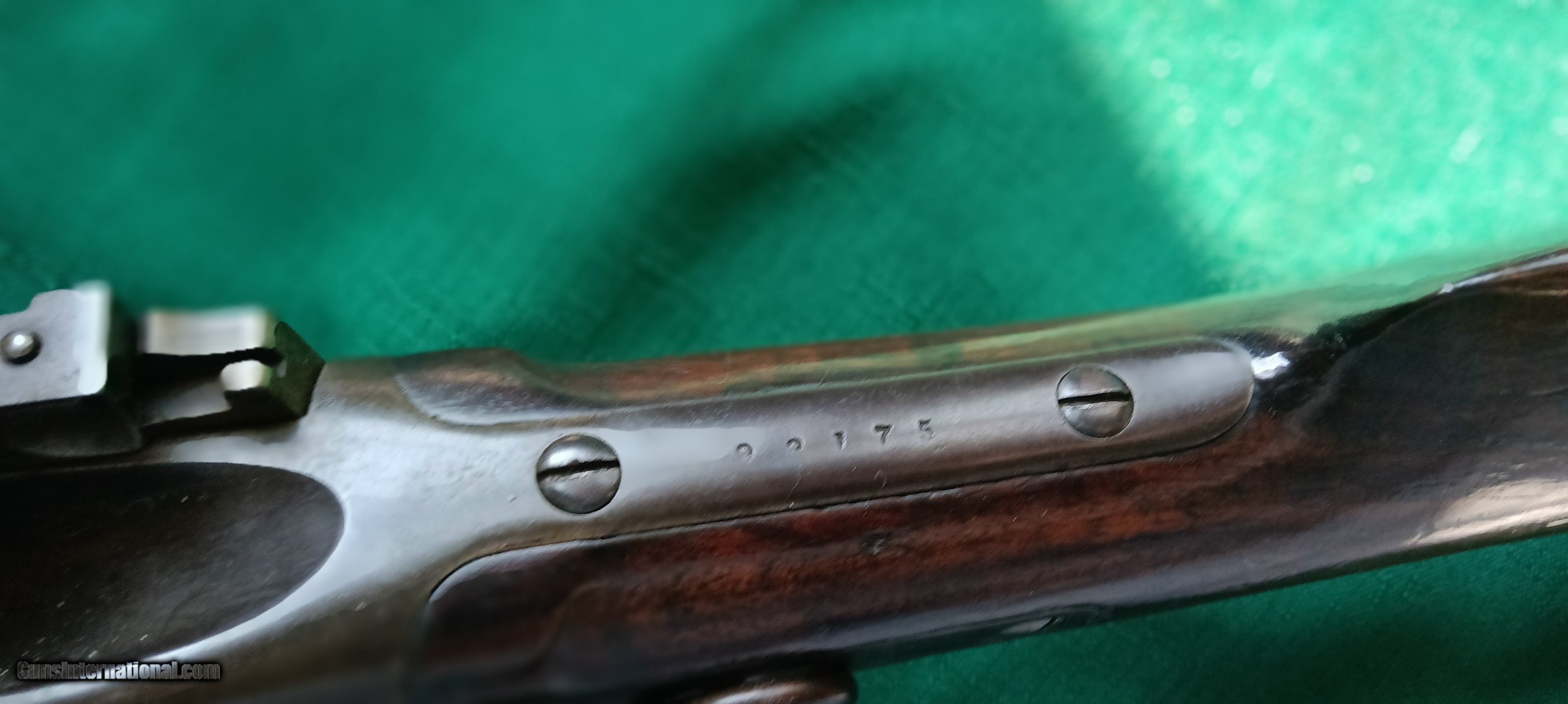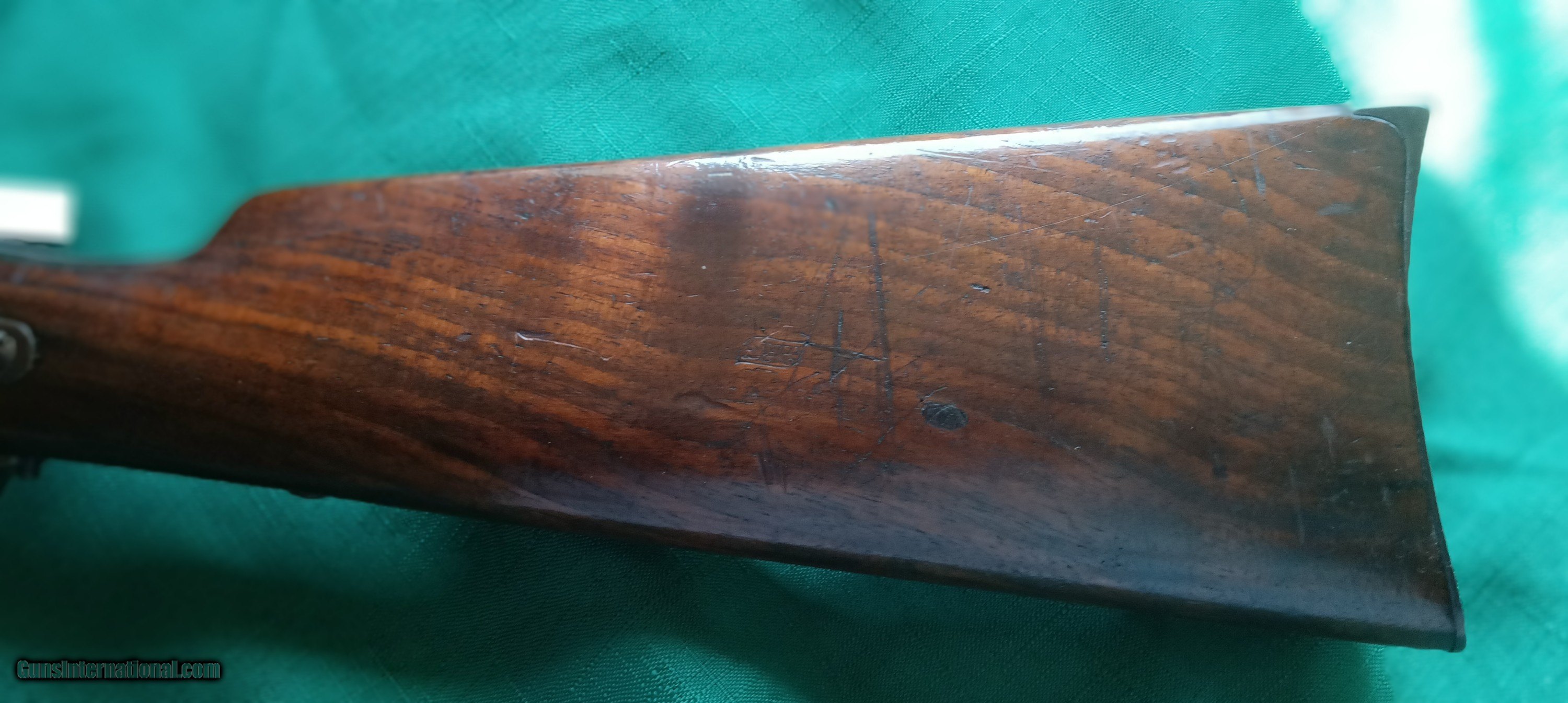 Description: S O L D.............LAYAWAY..... Serial no. 92175 [upper tang], .52 caliber, 22-inch barrel with fixed front sight and folding rear ladder sight. Blued and case-hardened finish. Saddle ring. Right side of receiver marked: R.S. LAWRENCE PAT. / APRIL 12TH 1859 / C. SHARP'S PAT. / OCT. 5TH, 1852. Smooth walnut straight stock and fore-end. Crescent metal buttplate. The Sharps New Model 1863 Saddle Ring Carbine is a variant of the Sharps carbine, a renowned firearm from the American Civil War era. Developed by Christian Sharps, the Sharps carbine was recognized for its accuracy, reliability, and innovative breech-loading mechanism. Condition: Very good+....... Finish primarily a bright gray patina with honest age, handling wear and NO patches of pitting. Scattered dings and scuffs present to wood. Action crisp. Bright bore. 2nd firearm SHIPS FREE, with this one!...S/H $55....Thanks Greg 498, 505 SEE MY NUMEROUS FIREARMS of NICE CIVIL WAR AND INDIAN WARS...GREAT PRICES! PRE SALE, EXPECTED "IN HAND" BY THE END OF JUNE. SOLD Antique: Yes Manufacturer: Sharps Model: nm 1863 Serial Number: 92175 |
