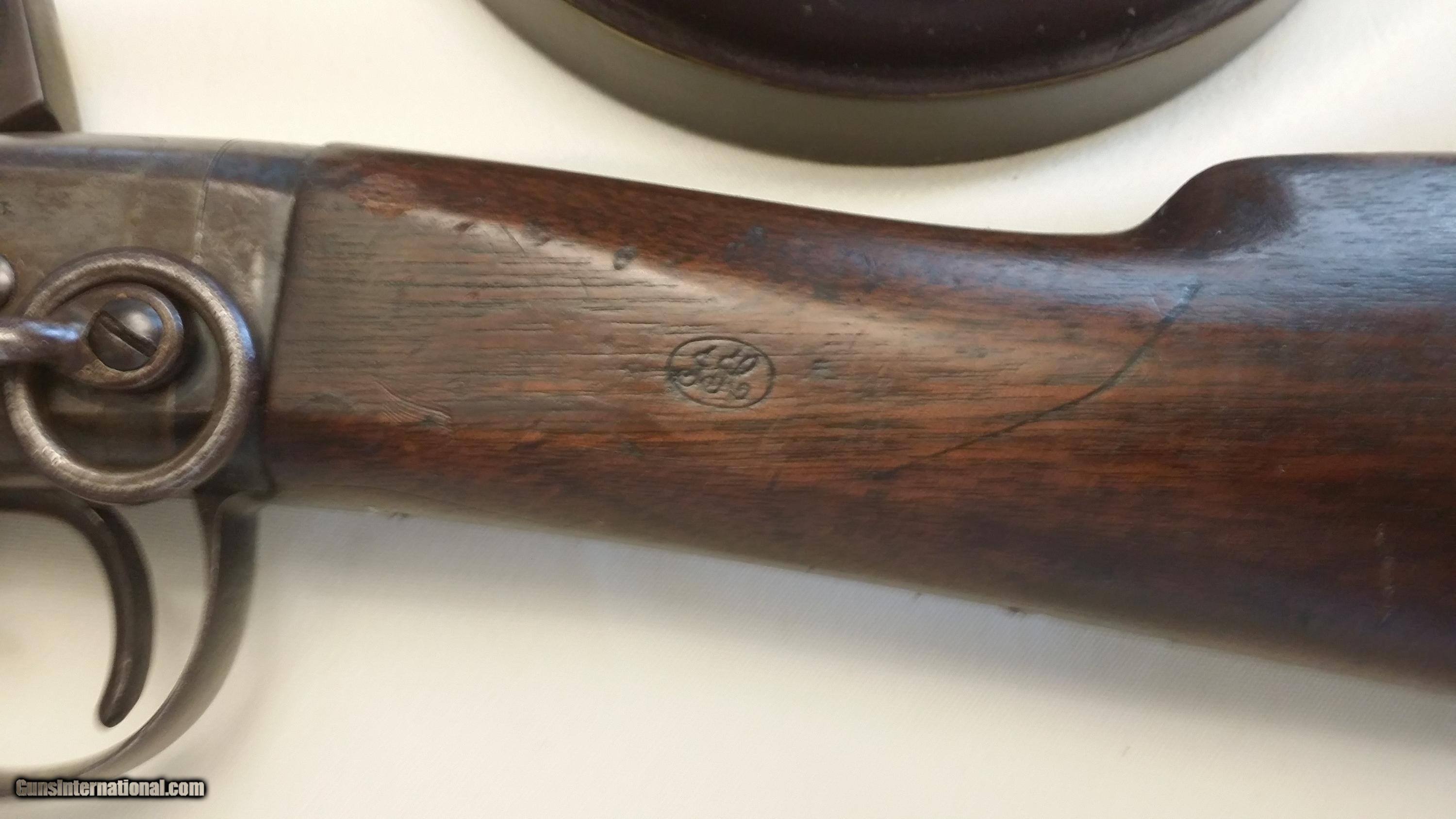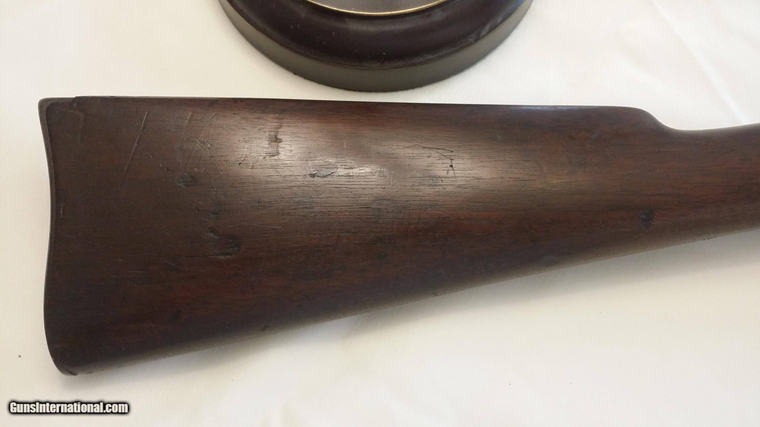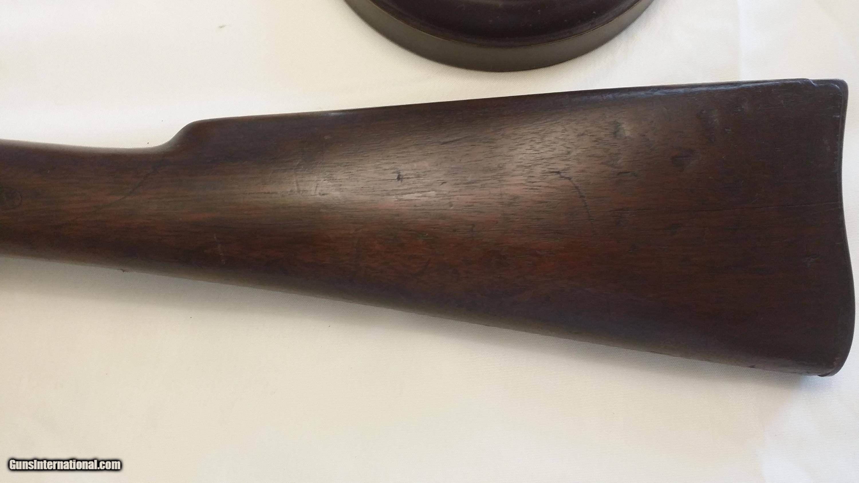 Description: Civil War Smith Carbine in very fine condition. 50 caliber, percussion, breechloader. Serial #963x. Original in every way and has not been refinished whatsoever. Sling swivel. Clear cartouche. Proper inspector marks throughout. Significant case colors on the right side of the receiver. The barrel has aged handsomely in to a purple/blue appearance. Nice blueing on the top latch and the strip rear area of the back of the receiver. Both stock and fore-end wood are in very fine original condition. My pictures do not capture all the original finish unfortunately. This Smith is far and away the best value of any Smith currently being offered. $1,800. Shipping $35. Antique so no FFL needed. Ships directly to your front door. Let me know of questions or for more pictures. SOLD Antique: Yes |