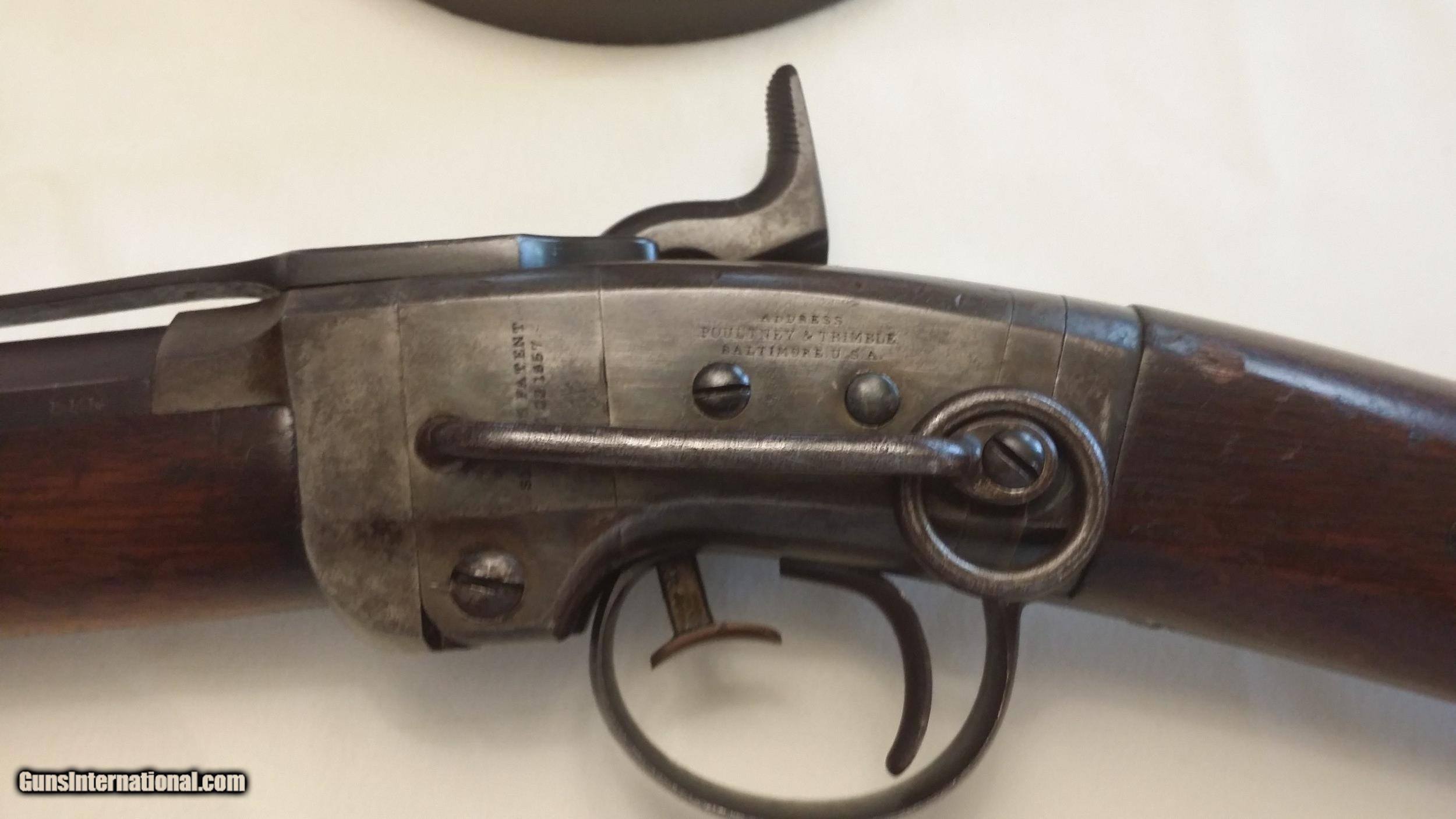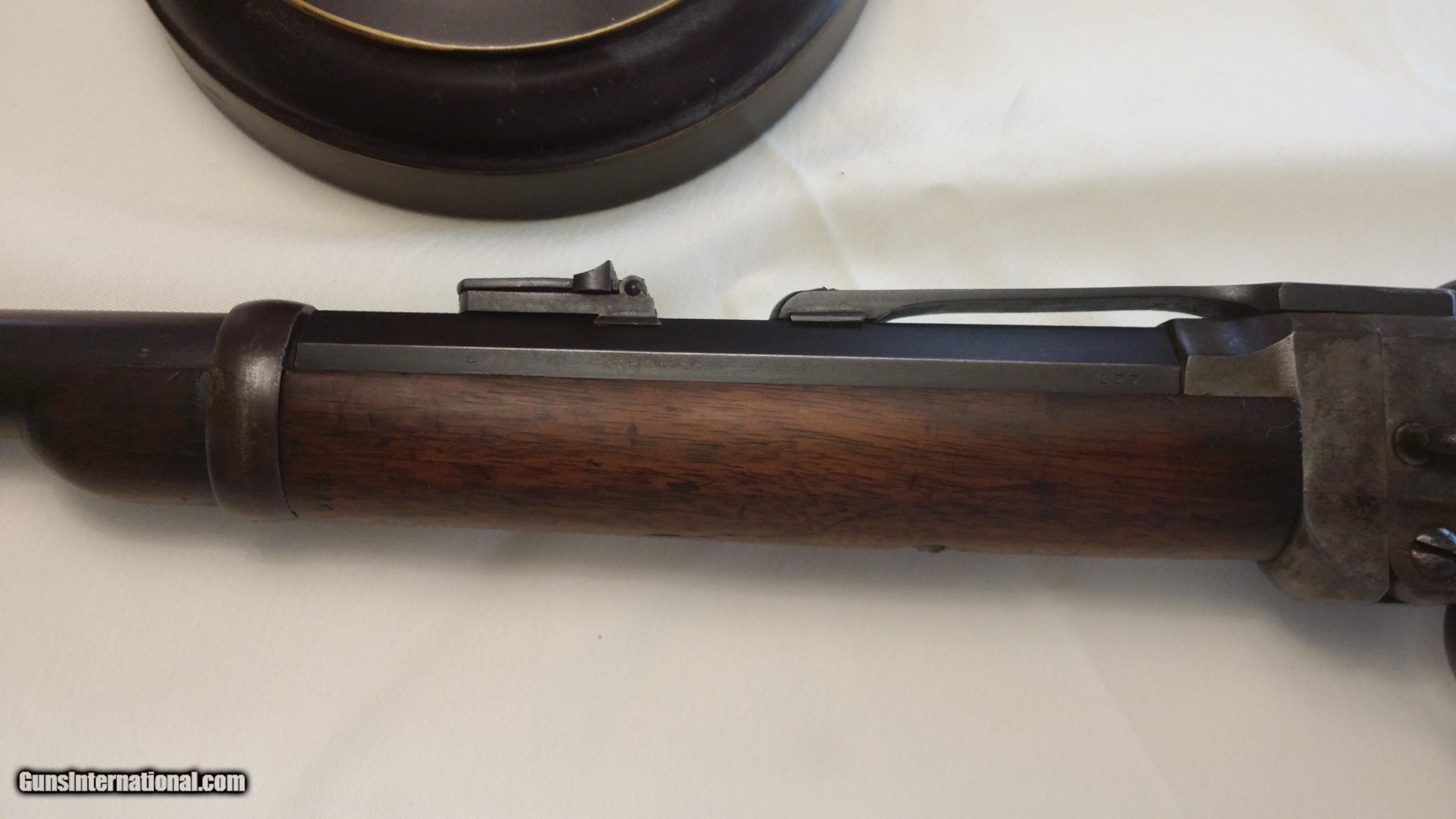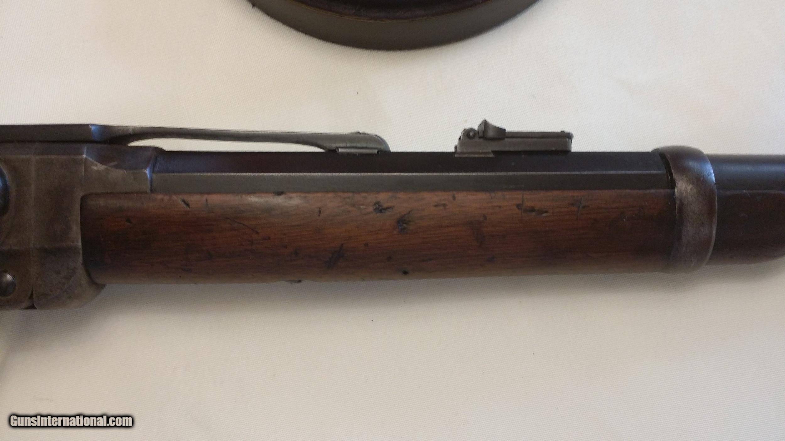 Description: Civil War Smith Carbine in very fine condition. 50 caliber, percussion, breechloader. Serial #963x. Original in every way and has not been refinished whatsoever. Sling swivel. Clear cartouche. Proper inspector marks throughout. Significant case colors on the right side of the receiver. The barrel has aged handsomely in to a purple/blue appearance. Nice blueing on the top latch and the strip rear area of the back of the receiver. Both stock and fore-end wood are in very fine original condition. My pictures do not capture all the original finish unfortunately. This Smith is far and away the best value of any Smith currently being offered. $1,800. Shipping $35. Antique so no FFL needed. Ships directly to your front door. Let me know of questions or for more pictures. SOLD Antique: Yes |