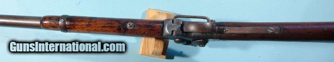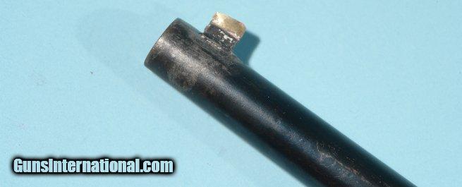 Description: SMITH CIVIL WAR CARBINE CIRCA 1863. .50 caliber 21 ½” barrel. All original and matching with exception of front sight blade which is a higher modern shooter replacement. Saddle ring missing but easy to replace. Very good with wood loss on the forend and two chips out of stock. Grey metal with good markings. American Machine Works, Chicopee, Mass. production. Tight working order and exceptional near mint bore with perfect rifling. SOLD Antique: Yes |