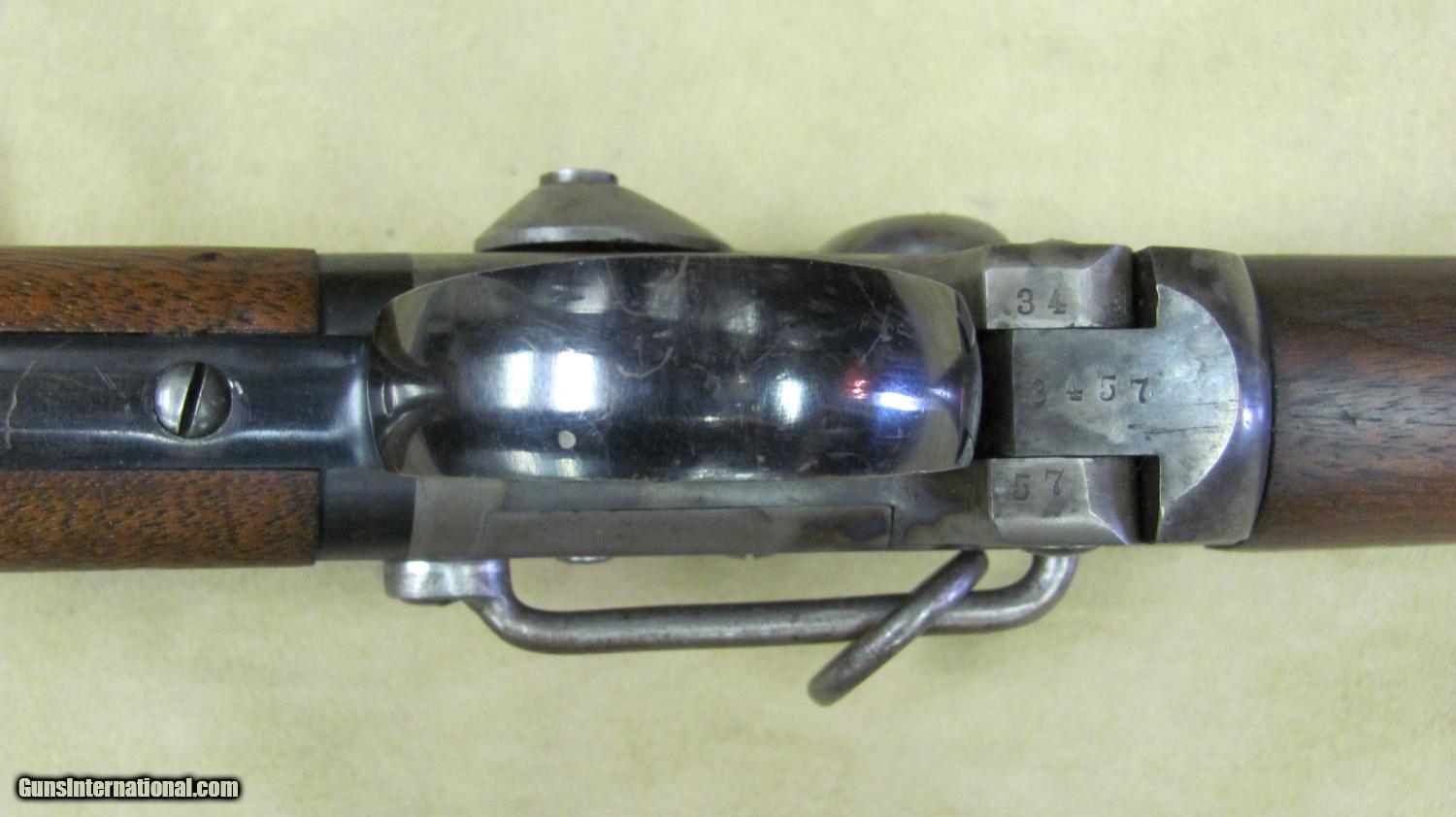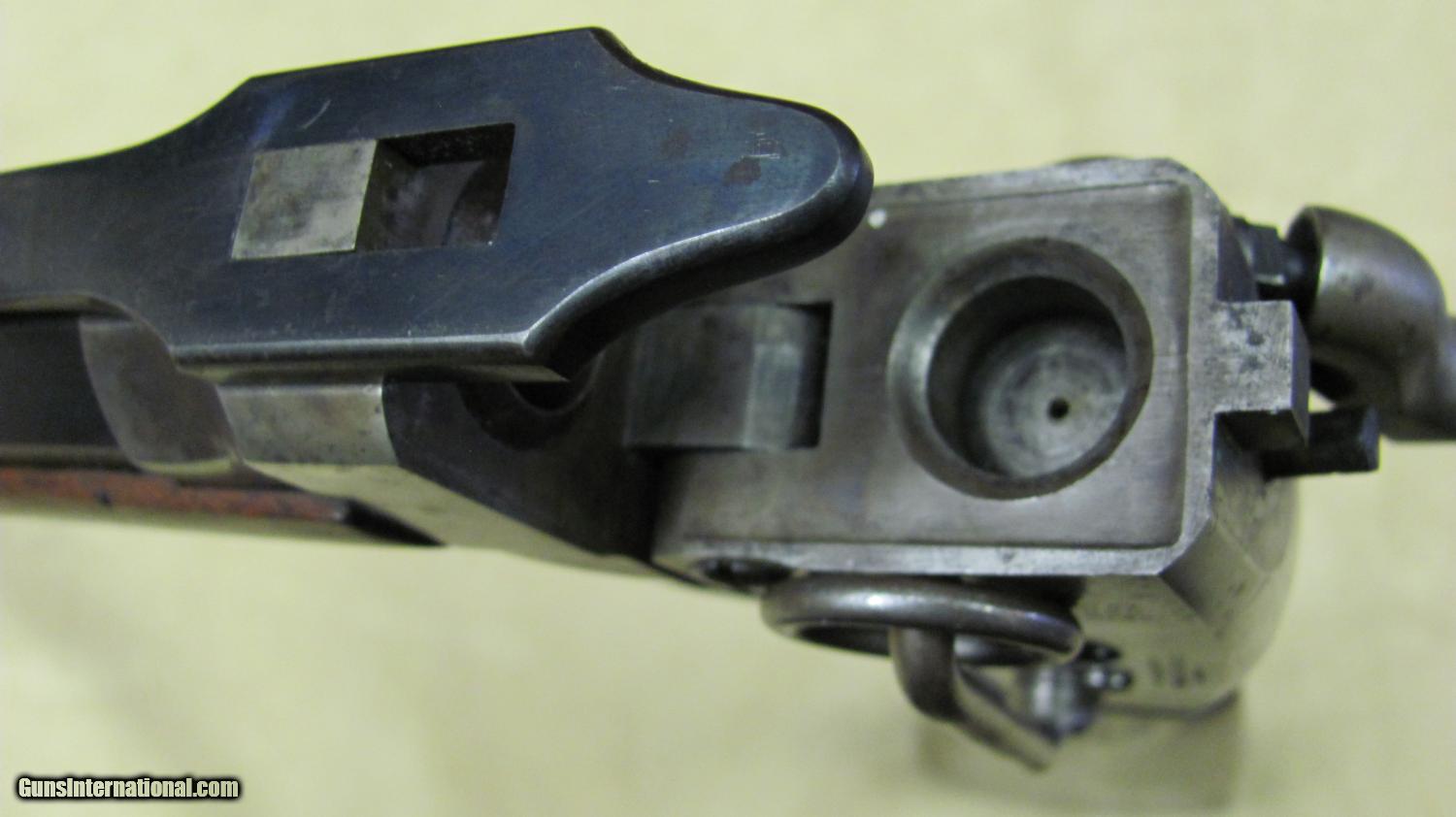 Description: As close to perfect as it gets. This carbine is all completely original. Wood and metal are in excellent condition. Barrel bore is perfect. Bluing rates 95% and case colors are 80%+. It is a .50 caliber with a 21 1/2" barrel and 38 5/8 overall length. Weight is 7 3/4 lbs, This Smith has the correct cartouches and inspectors marks. A Civil War carbine in this type condition is ultra rare. SOLD Antique: Yes Manufacturer: Smith Model: Carbine Serial Number: 3457 Caliber Info: .50 Condition: Excellent + |