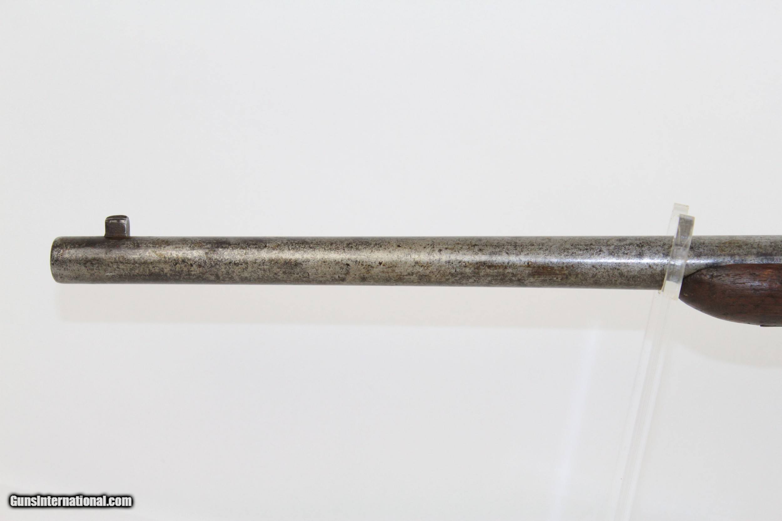 Description: SPENCER 1865 Carbine BURNSIDE Contract Civil War Antique Saddle Ring Carbine Made in Providence, RI Here we present an antique Spencer Model 1865 Carbine, made circa 1865 by contract by the Burnside Rifle Company in Providence, Rhode Island. The Spencer was a very successful carbine that was desirable on Civil War battlefields due to its handy size, accuracy, and rate of fire. The magazine tube in the butt holds 7 shots and a captured Confederate soldier is quoted as saying that you “load in the morning and fire all day!” The inventor, Christian Spencer, had the unique opportunity to personally instruct President Abraham Lincoln as he test-fired the rifle, resulting in more military sales. This specimen is one of the Burnside Contract, making it scarcer than those made by the Spencer Repeating Rifle Company. Out of the 34,000 made by Burnside, over 30,000 were purchased by the U.S. government. The top of the frame is marked “SPENCER REPEATING RIFLE/PAT’D MARCH 6, 1860/MANUP’D AT PROV. R.I./BY BURNSIDE RIFLE CO. 1865”. There is a faint cartouche on the left side of the stock. The overall condition is good. The metal surfaces have a gray patina. The markings are legible. The stock is in fair shape, showing much hard use and weathering. The bore is in good shape with strong rifling. The action on this carbine is strong. Own the original! This is a legitimate antique and not a reproduction. Barrel is 20 inches. Caliber: .56-50 Spencer Overall condition as seen in photos. Very Fast. Very Safe. FREE SHIPPING WORLDWIDE. Delivered directly to your door by express mail! Guaranteed AUTHENTIC & Includes CERTIFICATE OF AUTHENTICITY. ancestryguns $2100 #7395 SOLD Antique: Yes |