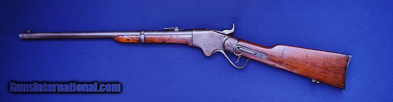 Description: Unaltered Spencer Model 1860 Saddle Ring Carbine, Early production serial number range 12,XXX puts this Spencer with the first Government contract delivered October 1863. Features original 6-Groove rifled bore in .52 Spencer, 22” round barrel, 7 shot magazine fed with blade front sight & military ladder rear sight. Standard markings remain visible with Spencer address & patent date on top of breech, “SPENCER REPEATING /RIFLE CO. BOSTON. MASS. / PAT’D MARCH 6. 1860.” Faint cartouche on left side of stock above saddle ring plate. In good plus condition overall with metal showing a nice aged patina with some pitting on lever. Walnut stocks are good with a 3” crack on left side of buttstock & a repaired 2” crack on right rear forearm. Mechanically sound with crisp action & good bore showing strong rifling. Overall a solid example with early serial number range that undoubtedly saw action during the conflict. Big Iron Firearms & Collectibles is a family owned & operated business. We are a licensed FFL Dealer & stand behind all of our listings. We try to replicate all aspects of the firearm in our photos & if you’re not completely satisfied, we will refund 100% of the purchase price during the 3 day inspection period. We Do Not Charge credit card fees, all major credit cards are accepted. We offer a 2% discount on sales price for items purchased with a money order, cashier or personal check, with item held until cleared. Will M. at 260-319-6961 SOLD Curio/Relic: Yes Antique: Yes |