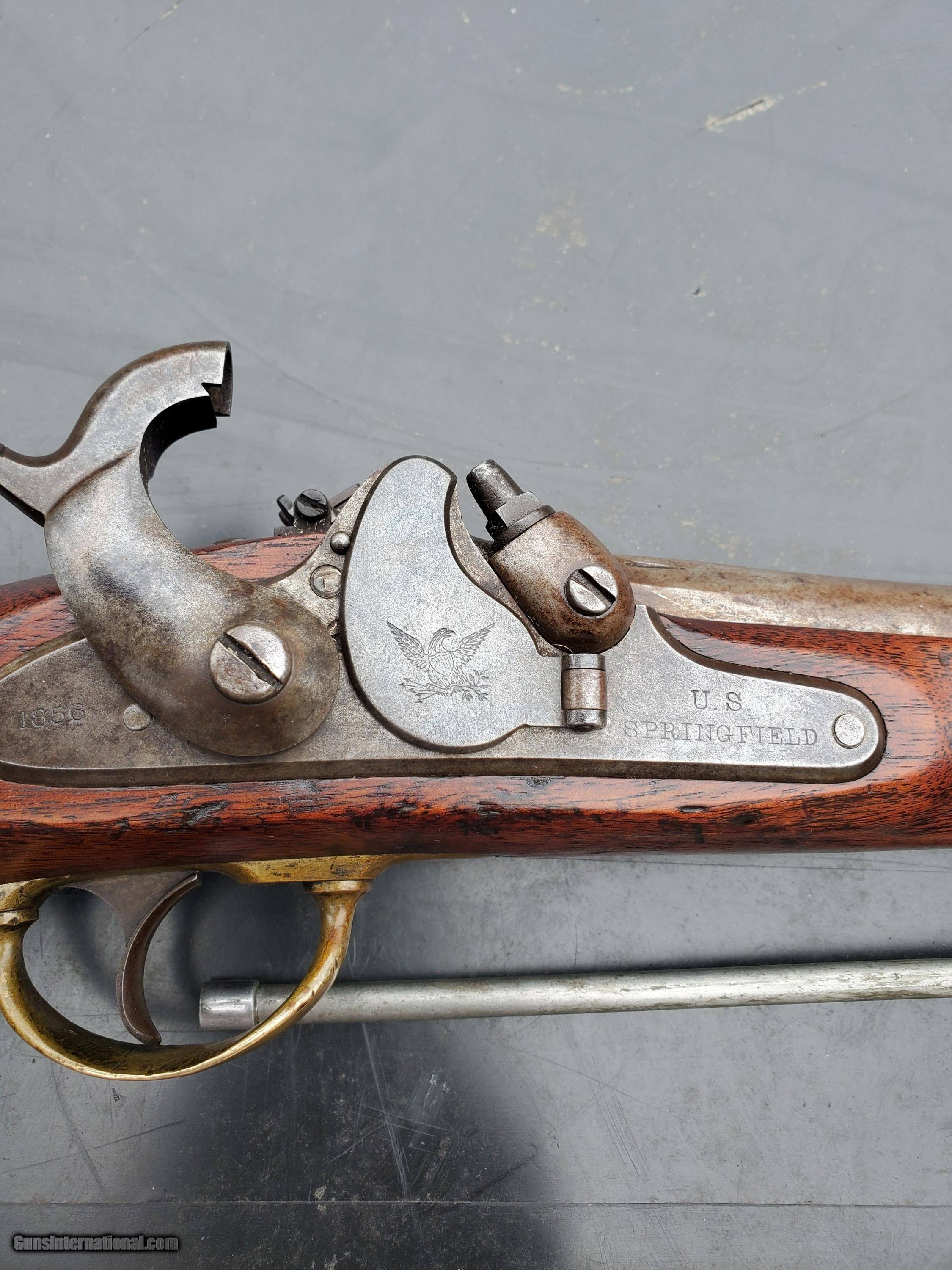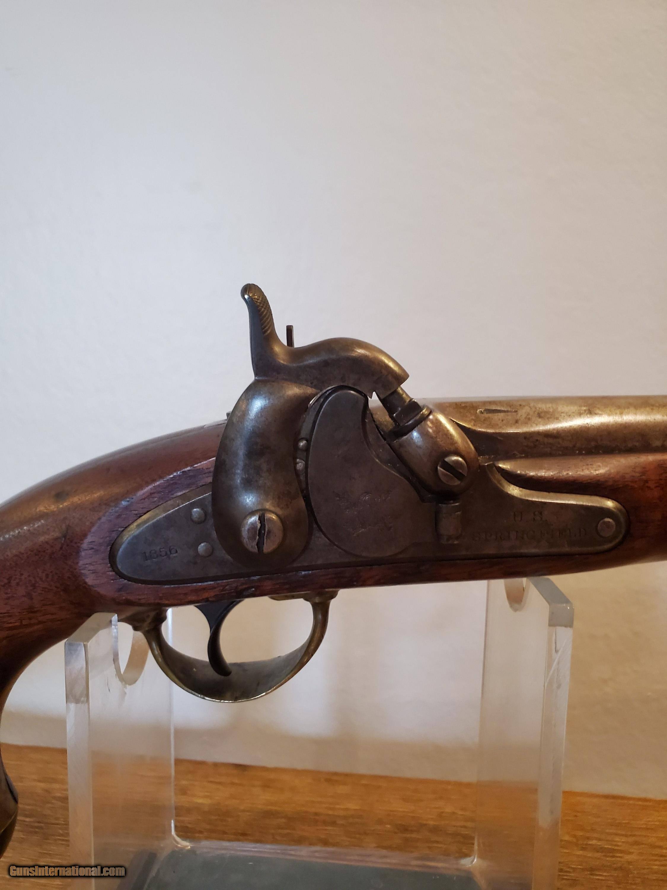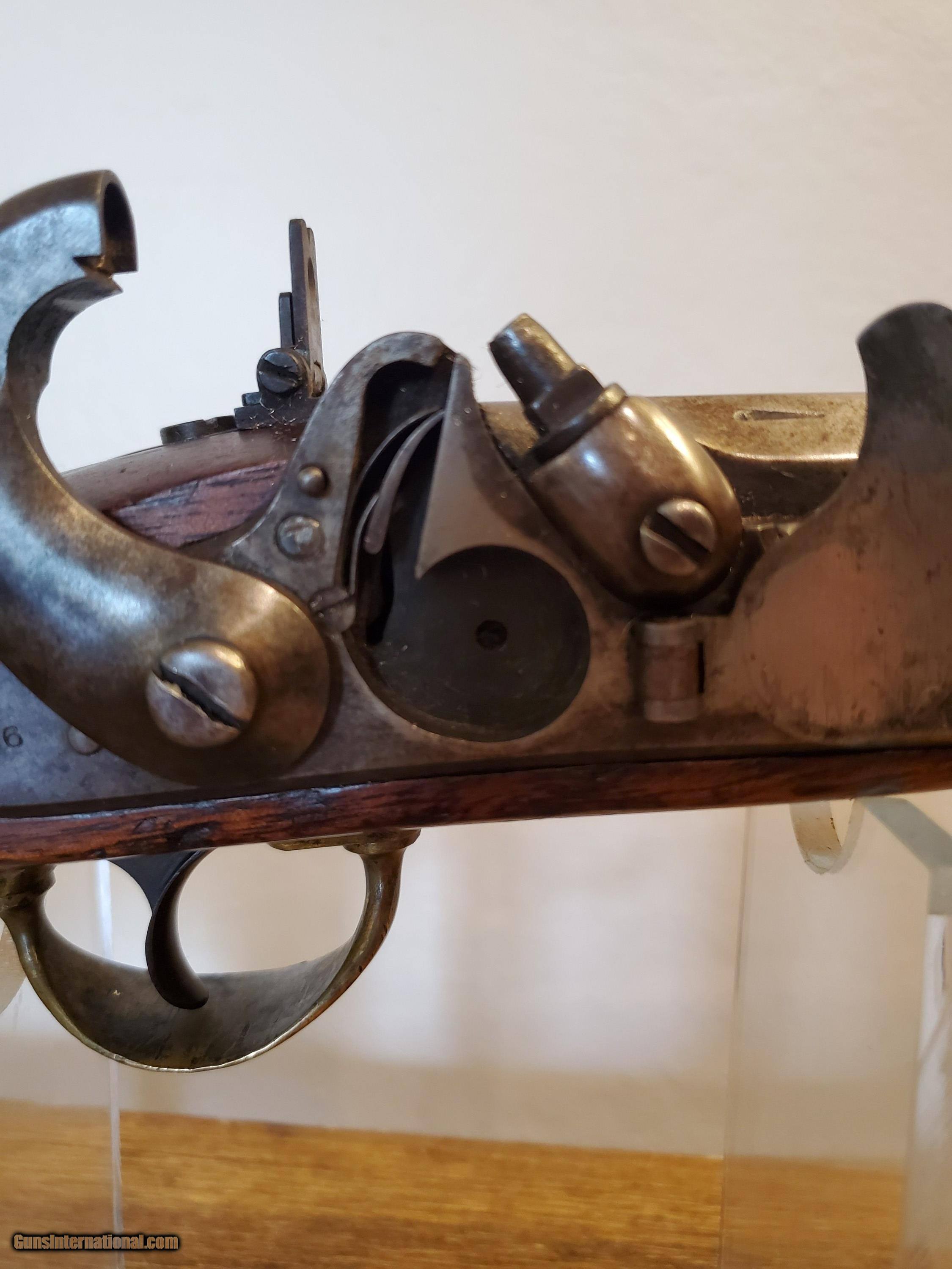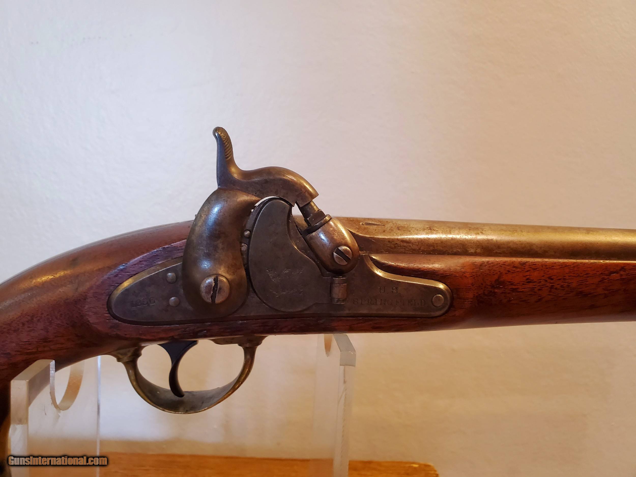 Description: This US Model 1855 Pistol is one of only 4021 made by the Springfield Armory from 1855-1857. The lock has Maynard's self-priming device, 2 rear leaf sight, lanyard ring on grip cap and sling swivels on the front band and should stock. 12" barrel w/captive ramrod in .58 Caliber and three groove rifling. A good many of these found their way into bot the Union and Confederacy during the Civil War. The original design concept was so that a cavalryman could work with the pistol on horseback but be able to convert it to the carbine configuration for dismounted fighting by attaching the shoulder stock. However, reports from the field were not too favorable. Despite the drawbacks, many 1855's were still in service going into the year 1863. According to "Cavalry Carbines of the U.S. Cavalry 1861-1905", the Union Army's quarterly field report taken on December 31, 1862, reports 400 Springfield Pistol Carbines were still in service. Given some evidence from surviving photographs taken during the war, we also know that the 1855 did find its way into Confederate Cavalry regiments as well. Condition fine plus nice cartouche, medal excellent with great marking, the wood stock is nice but has a hairline crack which, 100% original no repro parts, nice bore. works great very crisp action. SOLD Antique: Yes Manufacturer: Springfield Model: 1855 Wood Condition: very good Bore Condition: very good |