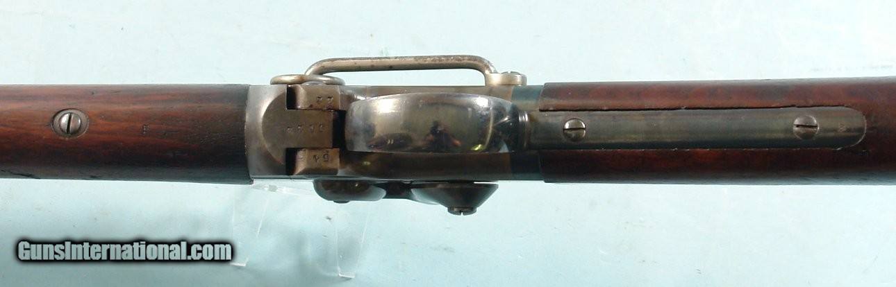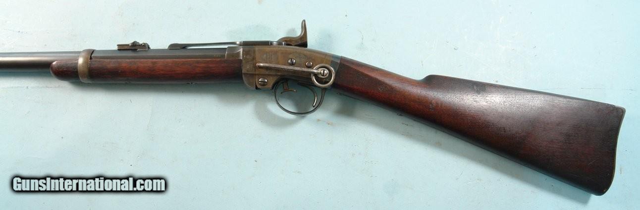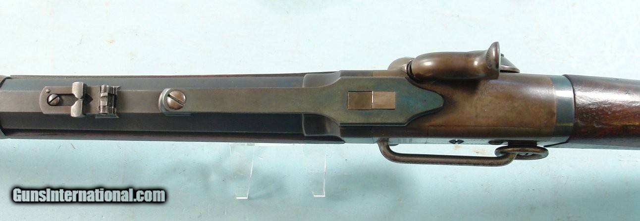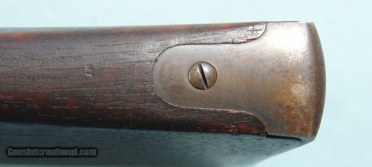 Description: SUPERIOR NEAR MINT CIVIL WAR SMITH PERCUSSION CAVALRY CARBINE CIRCA 1861. American Machine Works, Springfield, Mass. production with address on frame as well as “POULTNEY & TRIMBLE/BALTIMORE U.S.A.”. 22” octagon/round .50 cal. barrel. Serial numbered in the four digit 5xxx range and all matching and early war first year production. Brilliant in every respect with 98-99% original blue and bright case colors. Even the trigger and screws have all the blue. Stock and forend with all the original finish and two mint Ordnance Inspector’s cartouches. Perfect as new working order. Bore looks as new. Best one we have ever had. SOLD Antique: Yes |