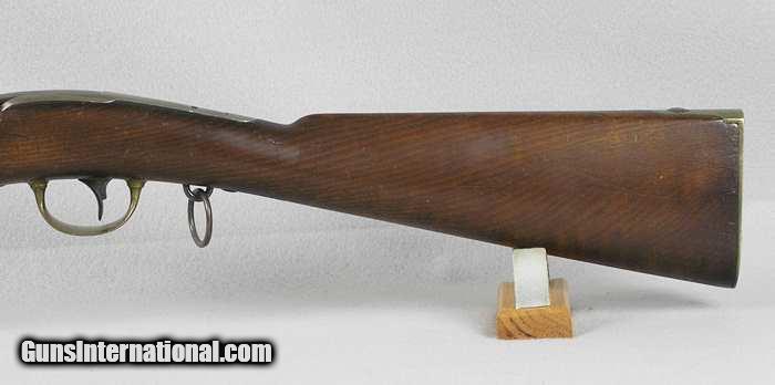 Description: This a very interesting USN “Mule Ear”, 54 caliber breachloading sidehammer percussion carbine made by N.P. Ames. It has a 24 ¼” riffled barrel and is dated 1844 and is RP inspector on the breach and has a faint RP cartouche on the left side below the breach. Only 4250 were made 1843-1846. These were altered in 1861 and changed to rifled barrels and an oval breach to accept paper cartridges. The mechanical function is very good, and the bore is very good with strong rifling. These are not common carbines. I would consider trades for pre 1899 ANTIQUE PISTOLS and rifles on any of my items.. WHAT DO YOU HAVE TO TRADE? Ask about our 30-90 day lay-away program. We accept Bank Check, Money order, Personal checks or wire transfer. SOLD Antique: Yes |