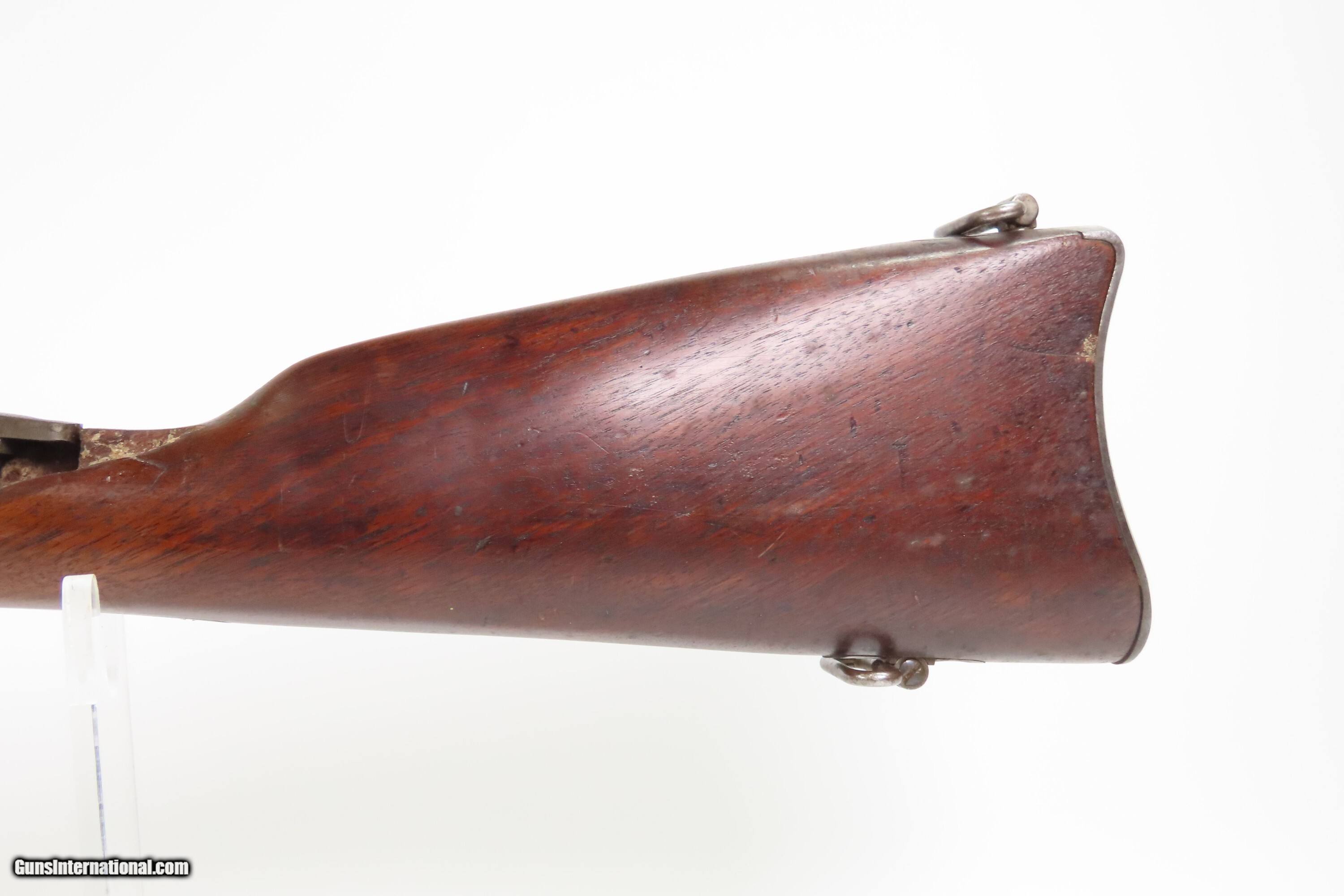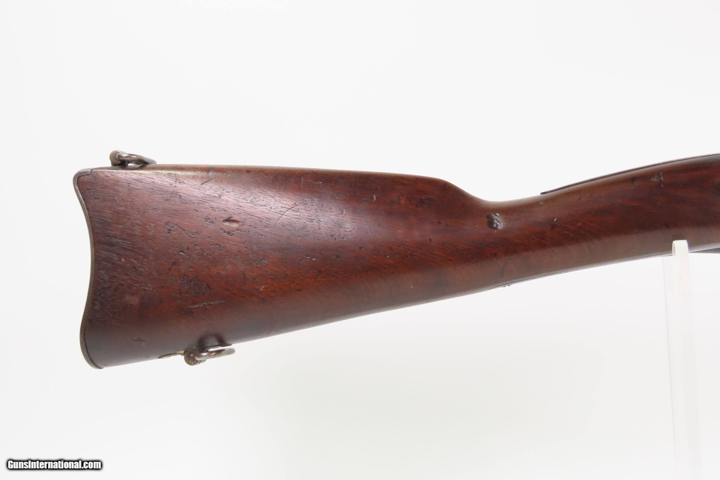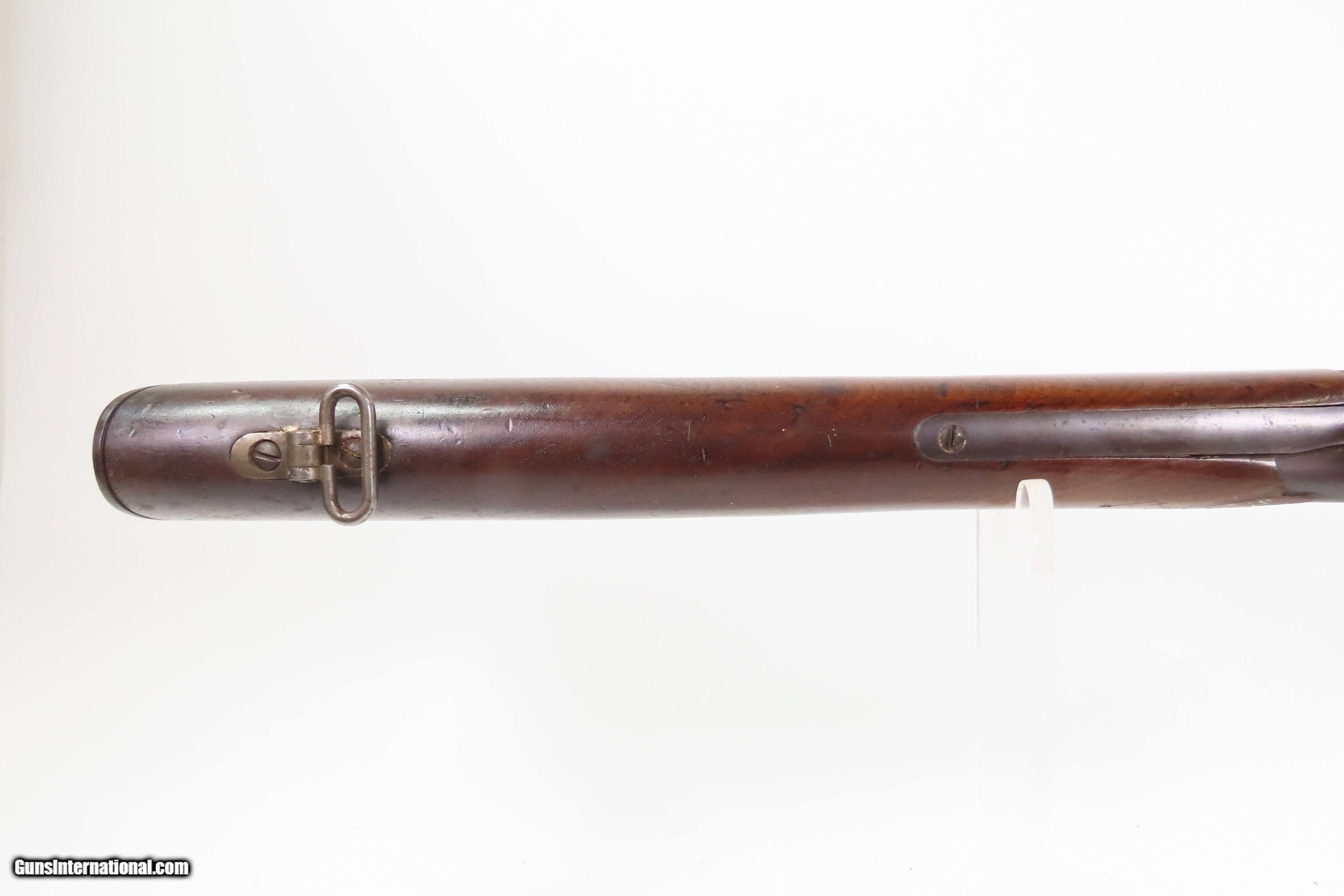 Description: Very Scarce KENTUCKY CONTRACT Triplett & Scott CIVIL WAR Repeating Carbine Made by MERIDEN MFG. CO. for KENTUCKY HOME GUARD Here we present an antique “KENTUCKY” Marked Triplett & Scott Patent Carbine, made circa 1864-65 by the Meriden Manufacturing Company of Meriden, Connecticut. Meriden Manufacturing was started by Charles Parker and his brother, who would later become famous worldwide for their beautiful shotguns under the Parker Brothers name. But before they made their mark with their firearms, they first found success during the Civil War by working with the Union government. They produced the Triplett & Scott Repeating Rifle and Carbine on a contract with Kentucky, making around 5,000 weapons. Of these, about 3,000 had 30-inch barrels and were issued to the Kentucky Home Guard to help defend supply trains as General Sherman led his march toward Atlanta. The diversity of weapons, especially carbines, during the Civil War was incredible. All of them are different in their own way. The Triplett & Scott Rifle & Carbine differentiates itself by its operation. The 7-shot magazine tube is housed in the front of the wrist of the butt stock. By placing the hammer in half-cock and depressing a button with the right thumb, one would be able to twist the forward portion of the gun, which would activate the automatic ejector, pushing the empty case out, before the receiver pushed aside the loading gate on the magazine tube to pick up another cartridge. The design was quite ingenious and the precision with which it was executed is still evident. This rifle is marked “KENTUCKY” on the left side of the receiver. The tang is marked “TRIPLETT & SCOTT/PATENT DEC. 6, 1864”. The left side of the frame is marked “MERIDEN MANFG. CO./MERIDEN. CONN.” The right side of the frame is marked with the serial number. Here is a true and timeless relic! This example maintains an original dark patina. Strong action. Bright, strongly rifled bore with light pitting near the breech. Solid forend. The buttstock has some wiggle where it meets the frame and a large portion of the left wrist is absent. Legible markings. Here is a unique Civil War rifle with Kentucky heritage! Own the original! This is a legitimate antique and not a reproduction. Barrel is 30 inches. Caliber: .50 Rimfire Overall condition as seen in photos. Very Fast. Very Safe. FREE SHIPPING WORLDWIDE. Delivered directly to your door by express mail! Guaranteed AUTHENTIC & Includes CERTIFICATE OF AUTHENTICITY. $2100 #257504 Antique: Yes Price: $2,100.00 Buy Now Pay with