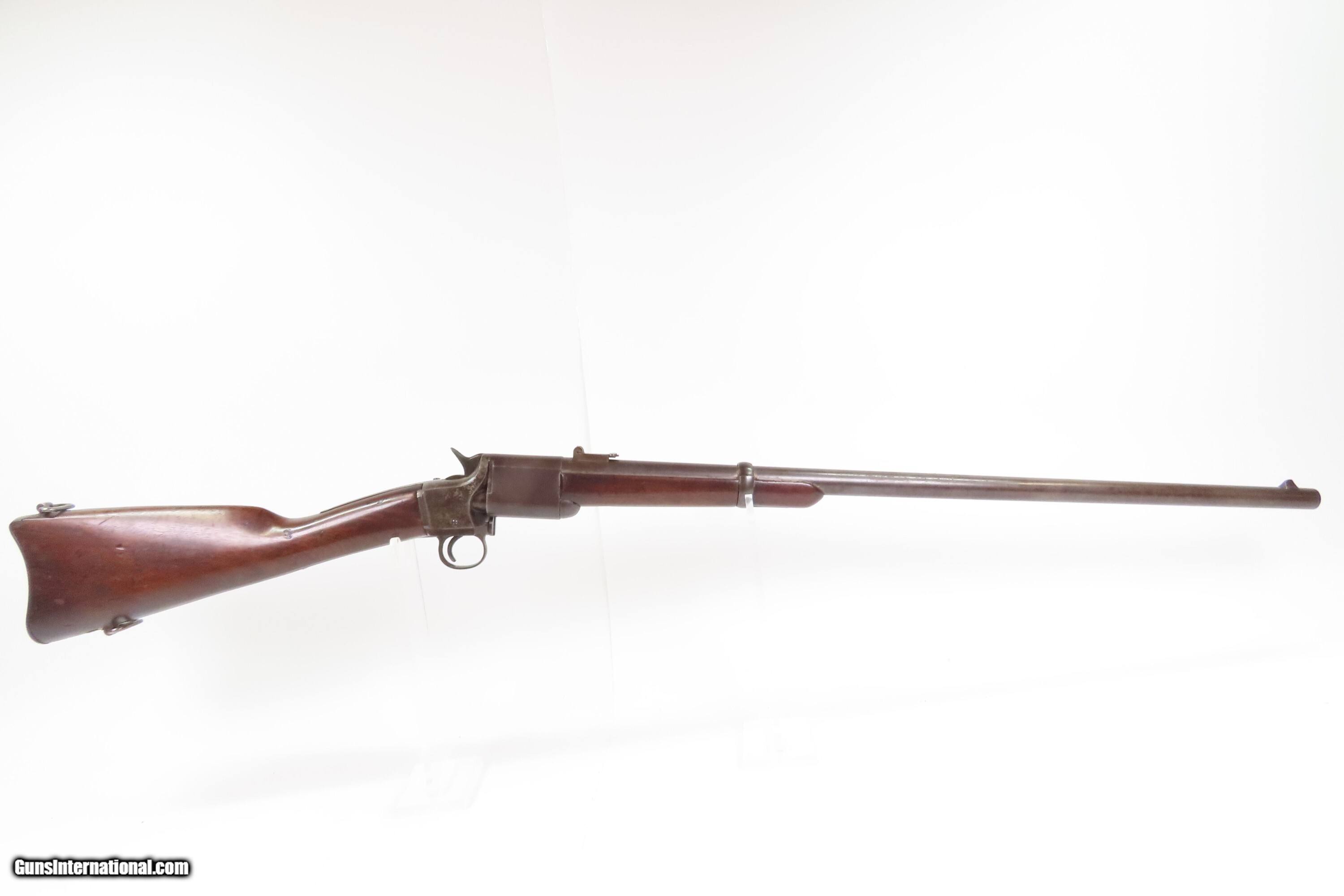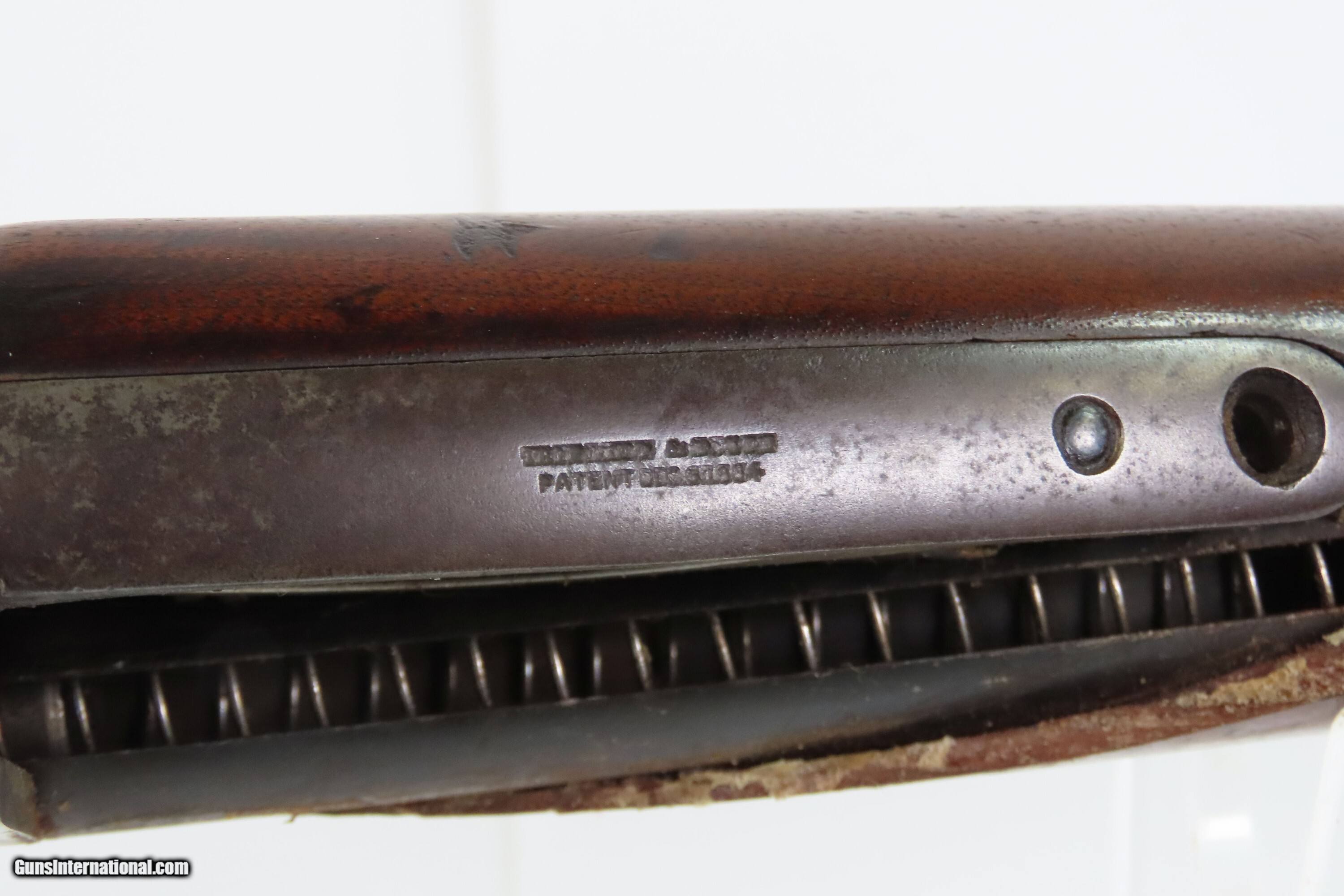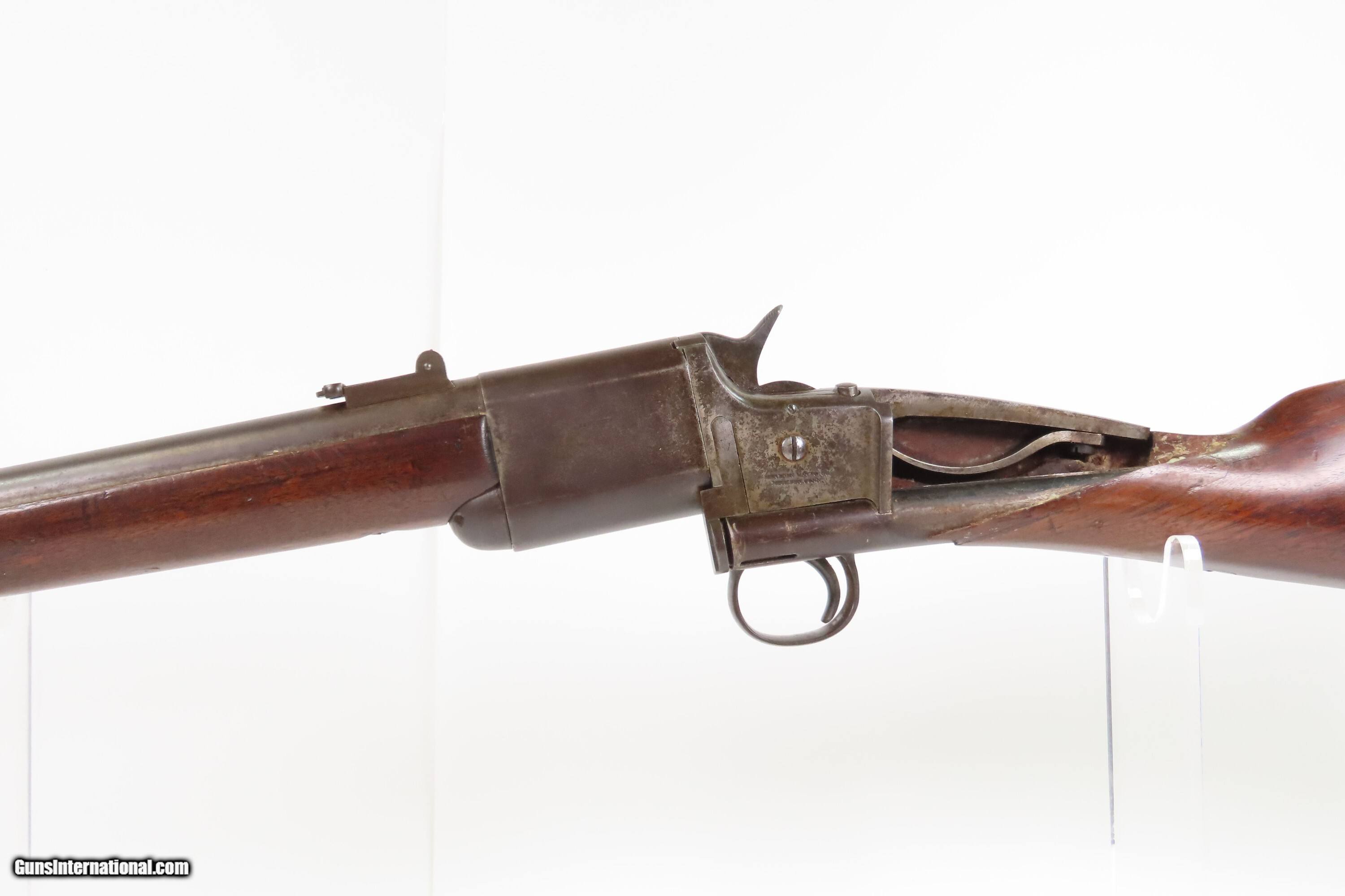 Description: Very Scarce KENTUCKY CONTRACT Triplett & Scott CIVIL WAR Repeating Carbine Made by MERIDEN MFG. CO. for KENTUCKY HOME GUARD Here we present an antique “KENTUCKY” Marked Triplett & Scott Patent Carbine, made circa 1864-65 by the Meriden Manufacturing Company of Meriden, Connecticut. Meriden Manufacturing was started by Charles Parker and his brother, who would later become famous worldwide for their beautiful shotguns under the Parker Brothers name. But before they made their mark with their firearms, they first found success during the Civil War by working with the Union government. They produced the Triplett & Scott Repeating Rifle and Carbine on a contract with Kentucky, making around 5,000 weapons. Of these, about 3,000 had 30-inch barrels and were issued to the Kentucky Home Guard to help defend supply trains as General Sherman led his march toward Atlanta. The diversity of weapons, especially carbines, during the Civil War was incredible. All of them are different in their own way. The Triplett & Scott Rifle & Carbine differentiates itself by its operation. The 7-shot magazine tube is housed in the front of the wrist of the butt stock. By placing the hammer in half-cock and depressing a button with the right thumb, one would be able to twist the forward portion of the gun, which would activate the automatic ejector, pushing the empty case out, before the receiver pushed aside the loading gate on the magazine tube to pick up another cartridge. The design was quite ingenious and the precision with which it was executed is still evident. This rifle is marked “KENTUCKY” on the left side of the receiver. The tang is marked “TRIPLETT & SCOTT/PATENT DEC. 6, 1864”. The left side of the frame is marked “MERIDEN MANFG. CO./MERIDEN. CONN.” The right side of the frame is marked with the serial number. Here is a true and timeless relic! This example maintains an original dark patina. Strong action. Bright, strongly rifled bore with light pitting near the breech. Solid forend. The buttstock has some wiggle where it meets the frame and a large portion of the left wrist is absent. Legible markings. Here is a unique Civil War rifle with Kentucky heritage! Own the original! This is a legitimate antique and not a reproduction. Barrel is 30 inches. Caliber: .50 Rimfire Overall condition as seen in photos. Very Fast. Very Safe. FREE SHIPPING WORLDWIDE. Delivered directly to your door by express mail! Guaranteed AUTHENTIC & Includes CERTIFICATE OF AUTHENTICITY. $2100 #257504 Antique: Yes Price: $2,100.00 Buy Now Pay with