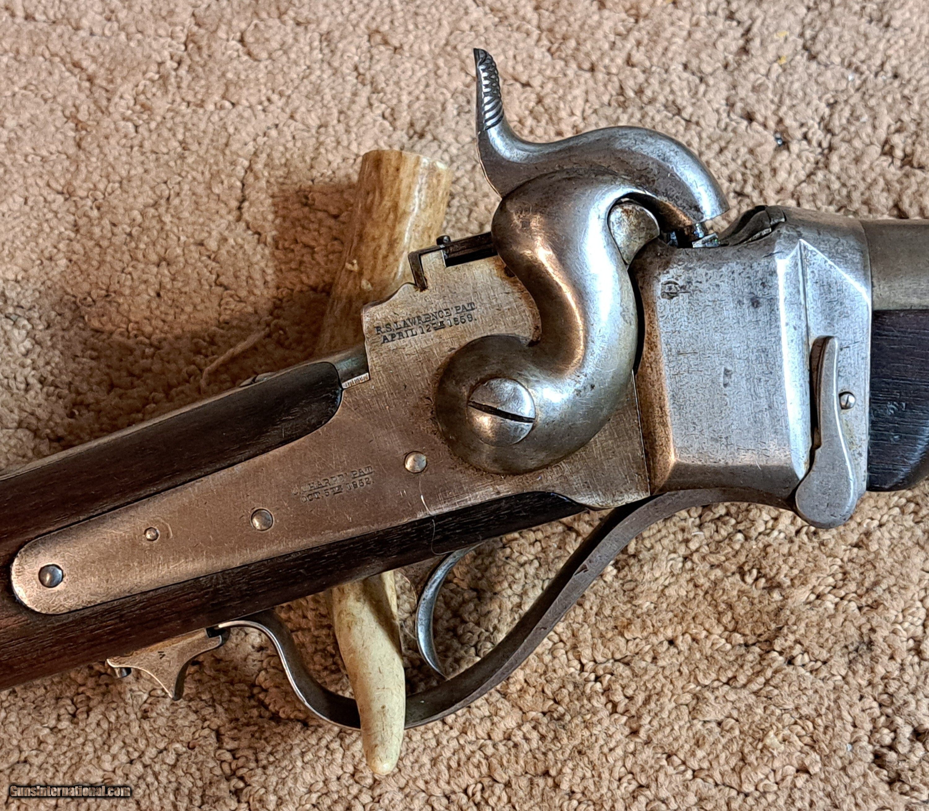Description: This original Sharps New Model 1859 SRC is in very good antique condition.. 52 paper cartridge. No pitting on metal, other than some pin prick pitting on top of block. All markings sharp. Barrel gas turned a very light plumb grey. Stocks are very good antique condition. No cracks or serious gouges or scratches. Legible cartouche on left wrist. Bore is good plus with minor scattered pitting. Action is crisp and tight. Shows light cleaning. A very nice example at a great price. $2750 + Shipping. Price: $2,750.00 Contact Seller |