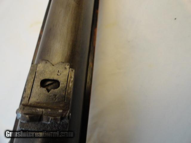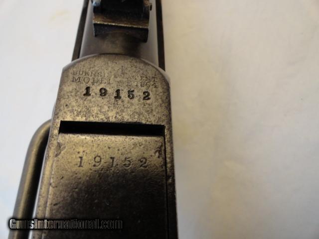 Description: Based on the book of Burnside carbines, the addition of the screw in the frame was brought about in 1863 so this carbine dates from 1864-65 based on that and the under 20,000 serial number and Model 1864 on top of receiver. This was not a closet queen or home guard gun as evidenced by the use. The 21" barrel is basically a smooth blue brown. Receiver is basically grey. Excellent stock with no cracks and sharp cartouche but several war bruises. Sharp as new rifling with some frosting. Action locks up like new gun so even in battle, this carbine was well taken care of. A very popular Civil War carbine and one that saw use but not abuse. SOLD Curio/Relic: Yes Manufacturer: Burnside Mfg. Co Model: 1864 Serial Number: 19152 Caliber Info: 54 Condition: fine Bore Condition: Excellent Finish: blue/case Manufacture Date: 1864-65 |