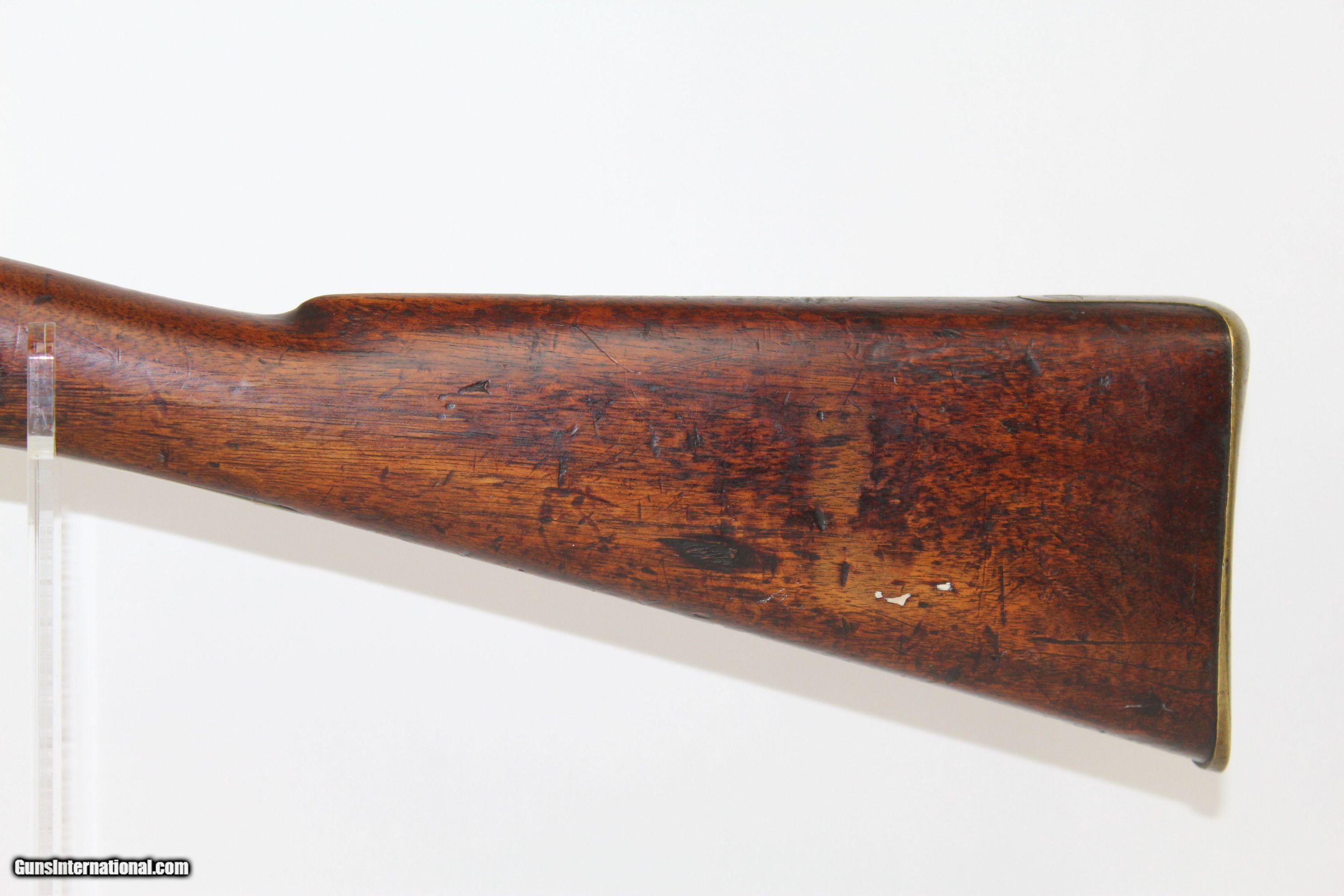 Description: “MOORE & HARRIS” Marked ENFIELD P-1853 Musket Civil War-Era Rifle-Musket Dated “1861” Here we present an antique Civil War-era Commercial Pattern 1853 Enfield Percussion Rifle-Musket, made by Moore & Harris in Birmingham, England, in 1861. The P-1853 was Britain’s adopted rifle from 1853 until the Snider system was adopted to transform arms into breech-loaders. In addition to its use around the world with the British military, this was one of the most popular arms for the infantry during the American Civil War, especially in the South where arms making was more difficult. Regarding the maker of this particular musket, William Moore began his own business in 1808 and did work making stocks for the famous Joseph Manton until about 1820. In 1836 he was made “Gunmaker-in-Ordinary” to King William IV of England. This meant that he was placed in a higher category than many of his peers and a chosen maker for the king. He began a partnership with William Harris in 1838 and began exporting their firearms to the United States around this time. The lock on this musket is marked “1861/TOWER”. The left side of the stock bears some soldier graffiti: “L.E.R./T.H.” The left side of the barrel is marked with the commercial proofs with the bore size “25”. The right side of the butt stock features a round emblem containing “MOORE & HARRIS/BIRMINGHAM”. “MOORE & HARRIS” and two “Crown/MH” maker’s marks appear just behind the trigger guard. The overall condition is very good. The metal surfaces are dark with age. The markings are clear and legible. The stock is in good condition other than the odd cut between the first and second barrel bands. This was done long ago as the cut is dark with age and smooth with wear. The bore is in very good shape with good rifling under a thick layer of fine dust. The action on this rifle is excellent. Here is a well-made favorite musket from the British Empire to America! Own the original! This is a legitimate antique and not a reproduction. Barrel is 39-3/8 inches. Caliber: .577 Percussion Overall condition as seen in photos. Very Fast. Very Safe. FREE SHIPPING WORLDWIDE. Delivered directly to your door by express mail! Guaranteed AUTHENTIC & Includes CERTIFICATE OF AUTHENTICITY. ancestryguns $1850 #6222 SOLD Antique: Yes |