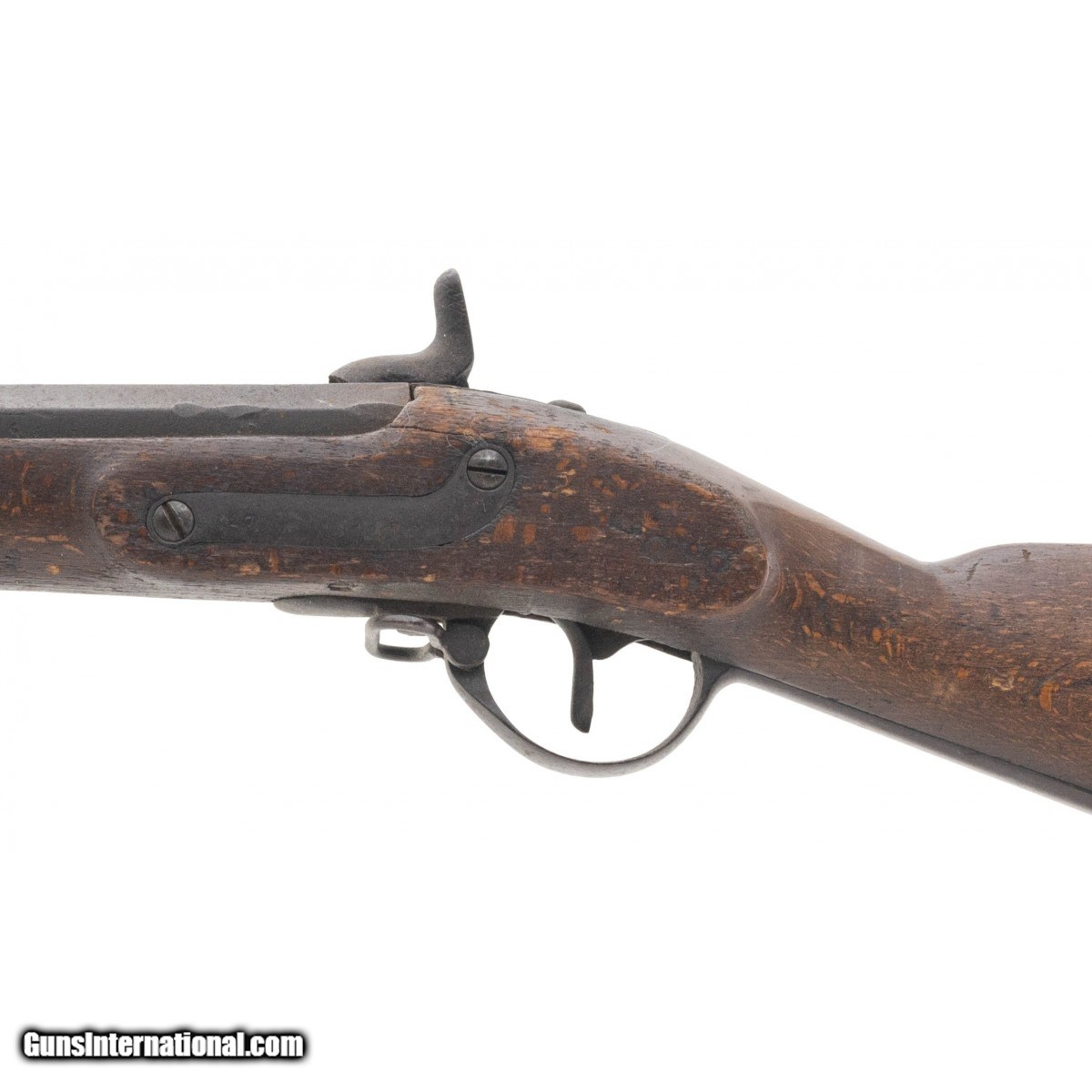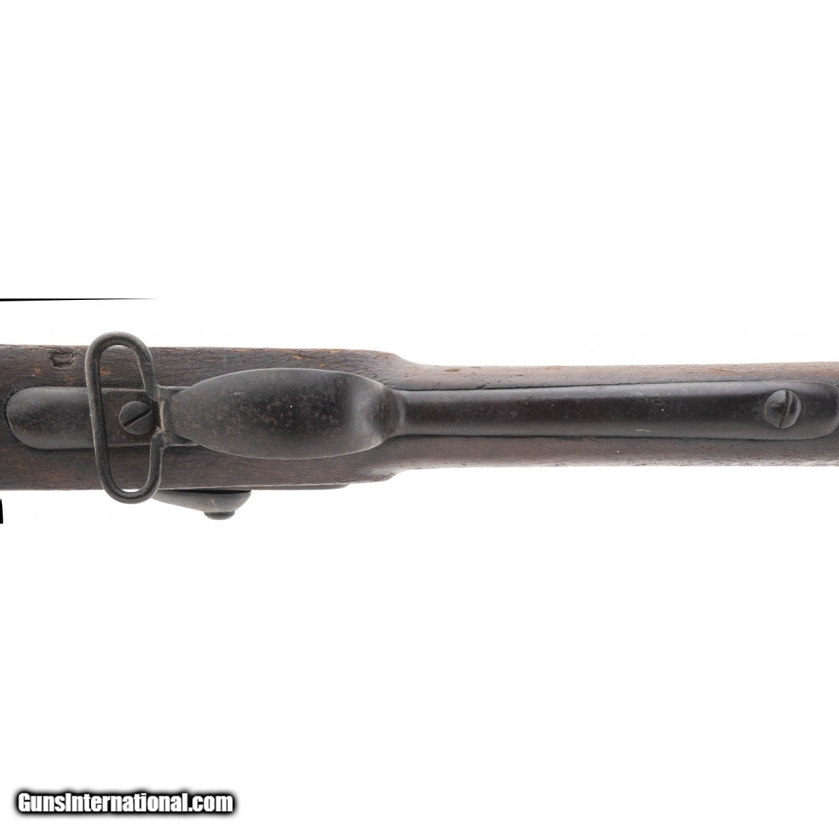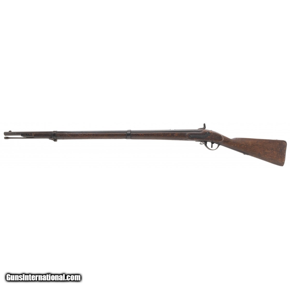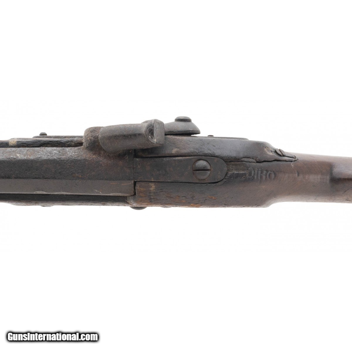 Description: " The 13.9mm (approx. 55 caliber) percussion Austrian Lorenz No. 2 Model 1854 rifle was used extensively by the Union and Confederates during the Civil War. This rifle musket is ready for restoration. The front band and rear sight are missing, the nipple is battered, and the stock is repaired to the rear of the lock. All other parts, including the ramrod, are present. The metal has a brown patina with minimal roughness. The bore is fair with visible rifling. With the exception of the repair, the stock is very good. With the exception of half cock which does not hold, the action functions. This gun would be a good restoration project or parts donor for another restoration. SOLD |