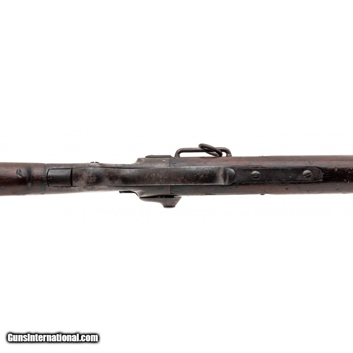 Description: " Serial No. 27967, circa 1863-1865, .52 caliber, 22"" round six groove barrel. Serial number range puts this carbine made during mid Civil War. Standard markings are faint on receiver but still legible. Metal is a dark patina with the receiver having mottled areas of discoloration. Bore is surprisingly good with minor frosting and pitting noted in the grooves. Stock has expected nicks and dings from usage. Action functions correctly. SOLD Curio/Relic: Yes Antique: Yes |