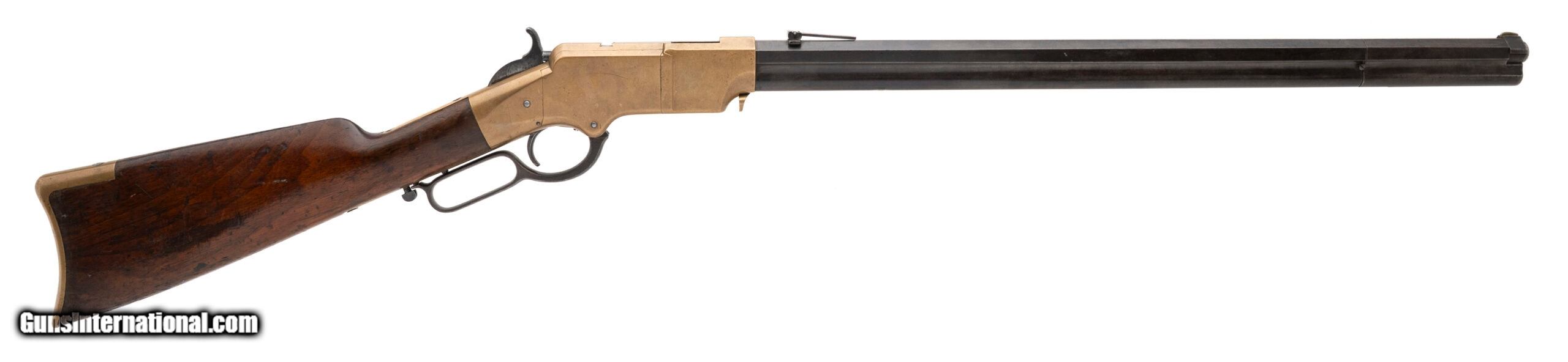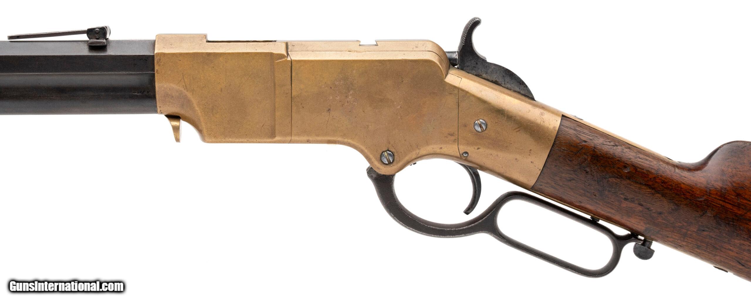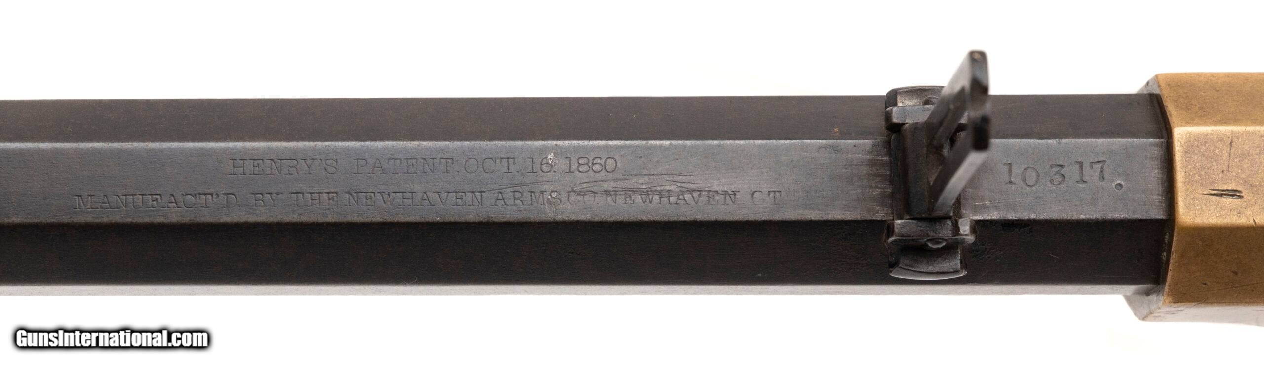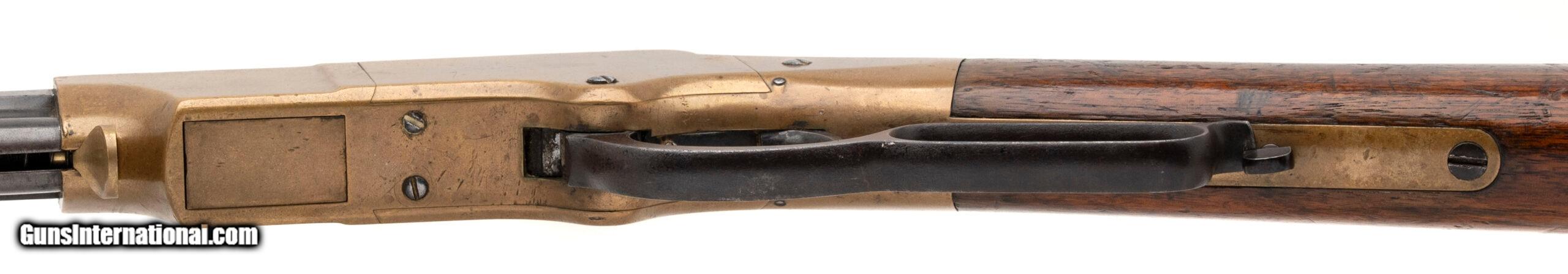 Description: "Serial number 2249. Made in 1863. 44 RF caliber with a 24.25" barrel. This gun has a later Henry barrel that is numbered 10317 to the frame which is all correctly matching with the serial number 2249. The frame, stock butt plate and all of the screws are matching. The only non matching part is the barrel. The barrel was made in 1865 after the civil war, so it is possible the original barrel was damaged and then replaced. It certainly matches the condition of the rest of the gun and appears to have been together since the time of use. The barrel has a dark brown patina and remains sharp. All markings are clear. The elevator on the rear sight is missing. The frame was cleaned at some time, but is now starting to age into a golden patina. The wood is original and just slightly undersized at the frame due to shrinkage. There has been no refinishing. This gun falls in the range of the 1st Washington D. C. cavalry guns which were used to protect the capital. All of these guns had sling swivels as this one does. All in all this is a very attractive Civil war Henry RifleĀ Antique: Yes Price: $21,500.00 Contact Seller |