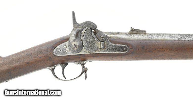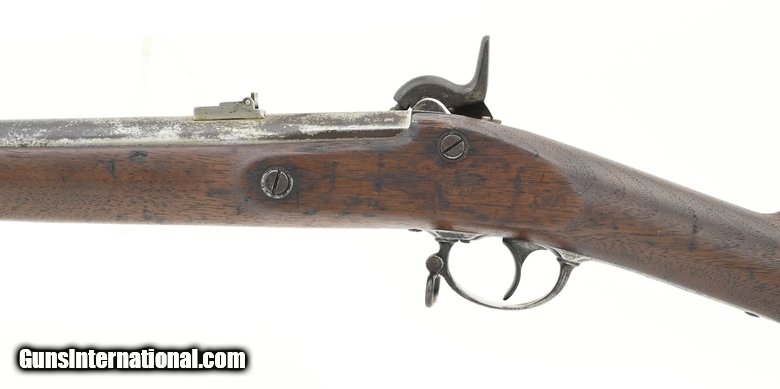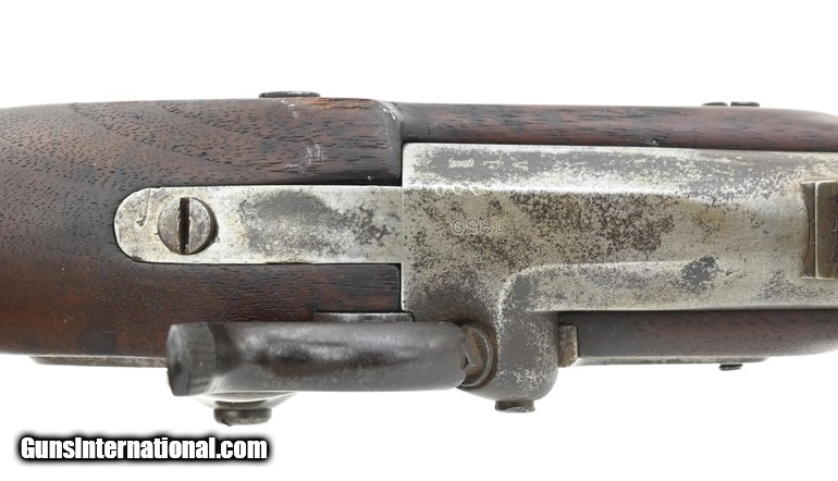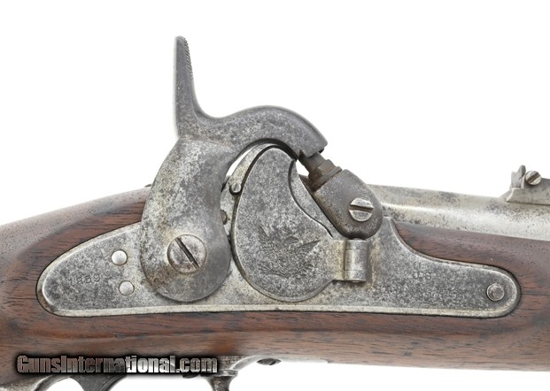 Description: " Model 1855 U.S. percussion rifle-musket with South Carolina militia markings. Harpers Ferry Armory manufactured Model 1855, made in 1859. It has the desirable patchbox and iron forearm tip, which were added in 1859. Overall length is approximately 56”. The 40” round .58 caliber barrel has a good bore with strong rifling. All metal is a smooth gray with areas of brown patina. The stock is very good with no cracks, and has a little wood loss along the ramrod channel and upper tang. Two inspector’s cartouches are readily visible. Additionally, the left side of the butt is marked “SCM” in ½” block letters. This is repeated on the heel of the butt. The rack number “49” is above that. The swivels and cleaning rod are present. The spare nipple is in the patch box. The Maynard tape priming parts are present and operates correctly. The barrel is dated “1859” with a clean “V”/ “P”/ eagle on the left flat. The lock is marked “U.S. / Harpers Ferry” at the front and “1859” at the rear. The Maynard tape primer door has an exceptionally nice eagle stamp. This is a very nice 1859 dated Model 1855 with the added benefit of South Carolina militia markings. Don’t miss this one! SOLD Antique: Yes |