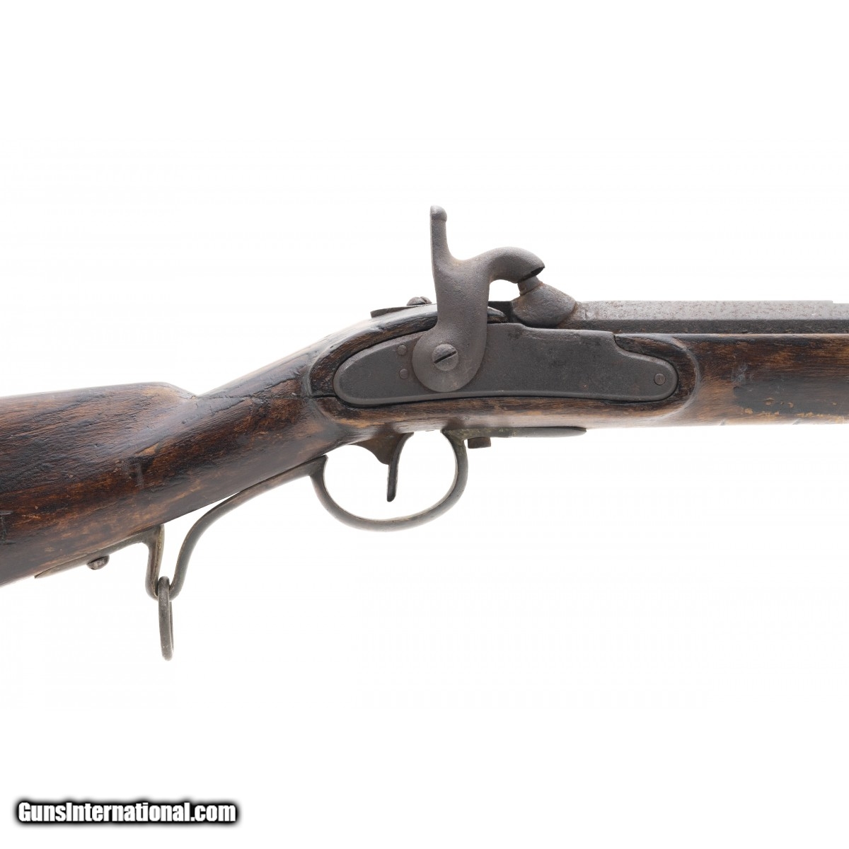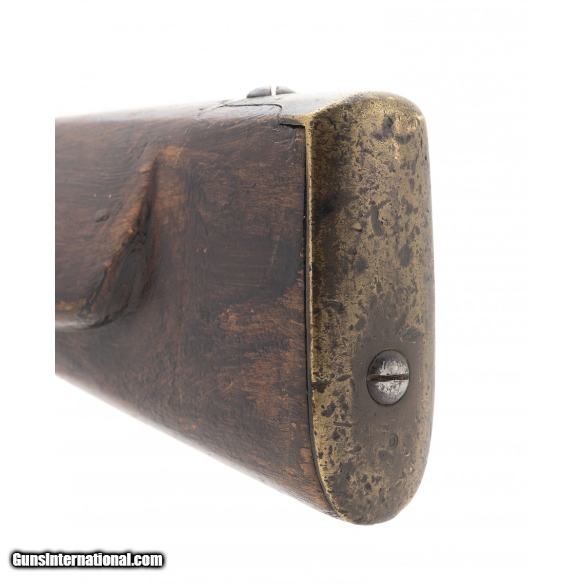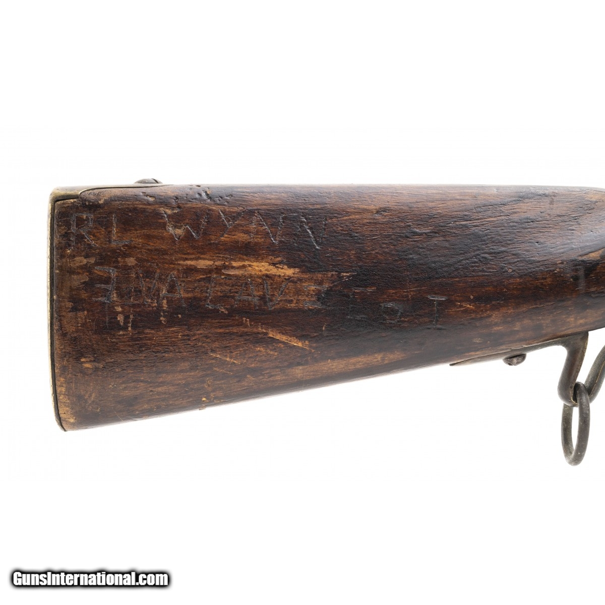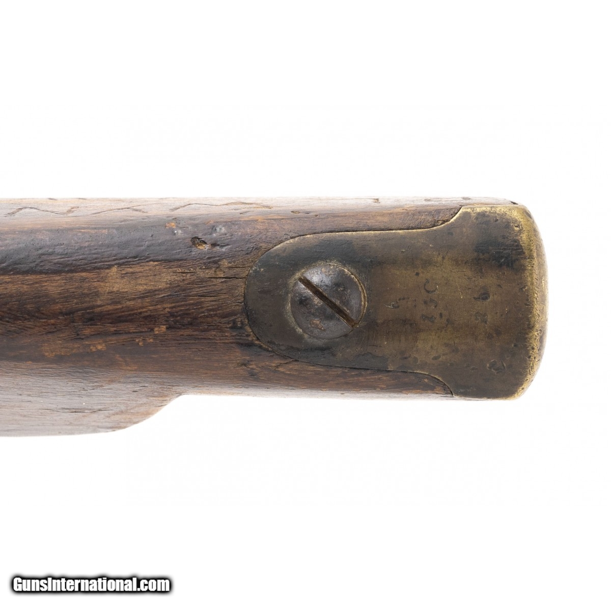 Description: " This Virginia percussion cavalry carbine is marked on the butt R L WYNN over 3 VA CAV Co I. The marking appears to be old. According to the soldier details on the National Park Servicesite, Richard L. Wynn served as a private in Company I in the 3rd Regiment of the Virginia Cavalry. The 3rd Regiment, Virginia Cavalry was organized and entered Confederate service on July 1, 1861. Until October, it was also called the 2nd Regiment. Its members came from the Virginia counties of Mecklenburg, Elizabeth City, New Kent, Halifax, Nottoway, Cumberland, Dinwiddie, and Prince Edward. Initially, six companies served in the Department of the Penninbsula and four in the Valley District. Later the unit was assigned to the Army of Northern Virgina. It fought in many battles including Williamsburg, Fredericksburg, Kelly's Ford, Chancellorsville, Brandy Station, Upperville, Gettysburg, Bristoe, Mine Run, The Wilderness, Todd's Tavern, Spotsylvania, Haw's Stop, and Cold Harbor. It also participated in General Early's Shenandoah Valley operations and the Appomattox Campaign. Private Wynn was most likely in many of these. Only 3 members of the unit were available at the April 9, 1865, surrender to General Grant at Appomattox. This carbine started life as an Austrian chambered rifle (Kammerbuchse) Model 1849 altered to cap ignition. It is also known as the ""Garibaldi"" rifle. The original length of 47.7"" has been reduced for cavalry use to 39"". The 24"" octagon to round 71 caliber barrel has a very good bore with strong rifling that would possibly clean even better. The barrel has a dark brown patina with overall light roughness. The rear sight was removed for cavalry use. The unmarked lock and hammer have a brown patina with light to moderate surface roughness. The brass trigger guard and butt plate have an even dark patina. The trigger guard pistol grip has a large sling ring installed through it. The original nose cap was moved to approx. 4.25"" behind the muzzle. The stock is good with an old repaired crack at the wrist, a stable crack at the rear lock screw, dark varnish type finish crudely added (a careful cleaning and redo would make this carbine look much better), and moderate overall wear. The action functions correctly with the exception that the hammer can be released by a trigger pull at half cock. One rarely encounters a Civil War small arm that can be tied to a soldier, especially a Confederate cavalryman. Don't miss this one! SOLD |