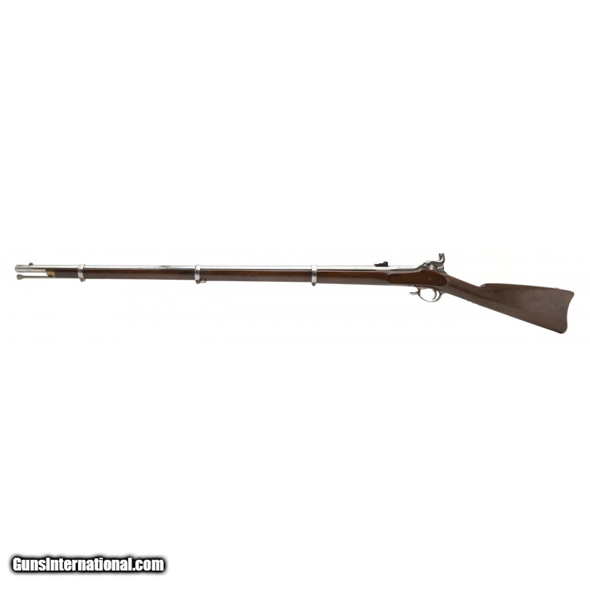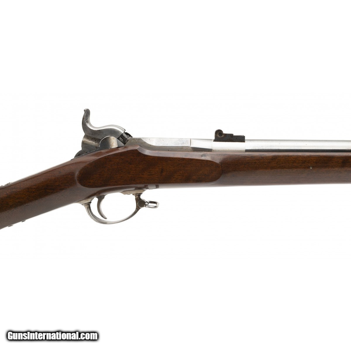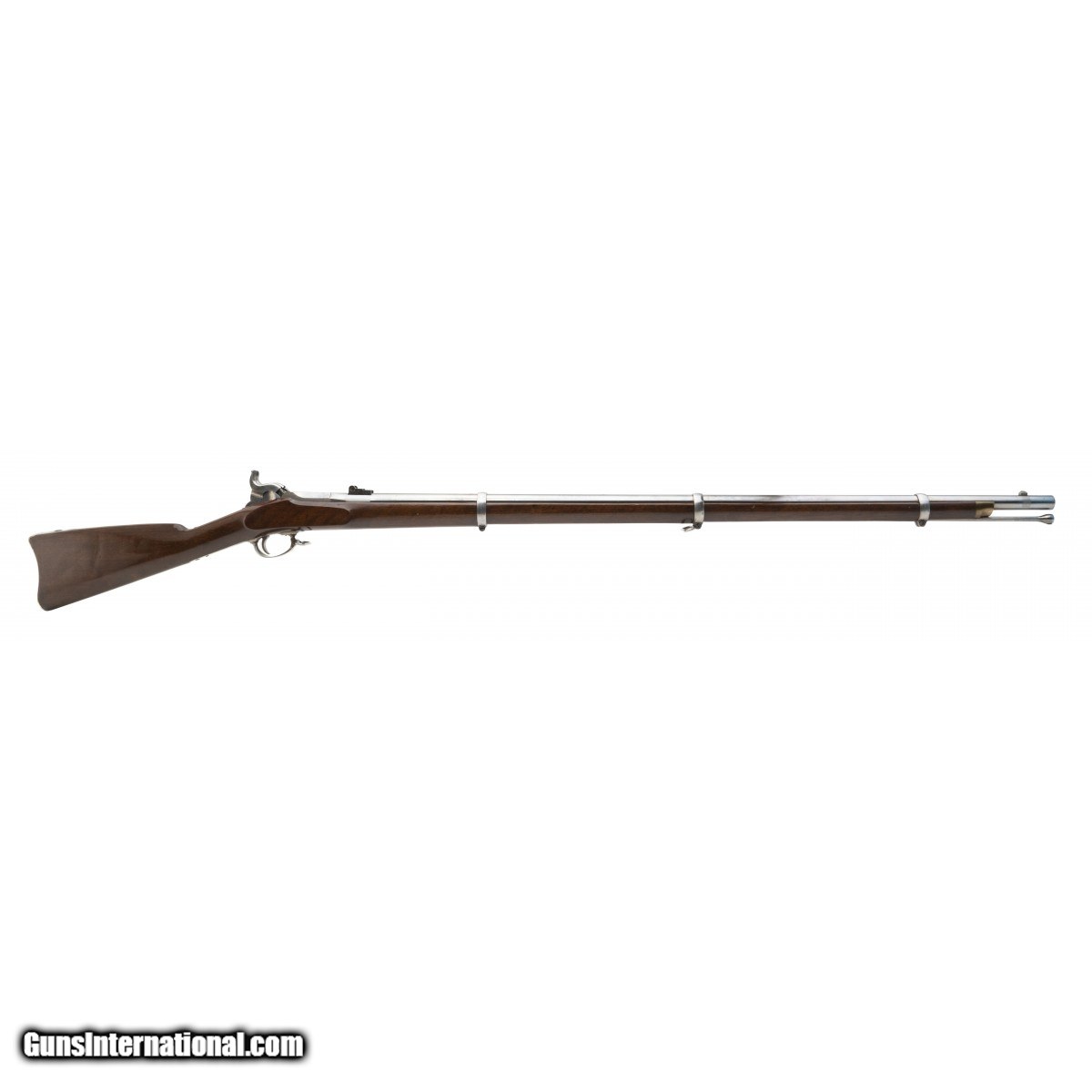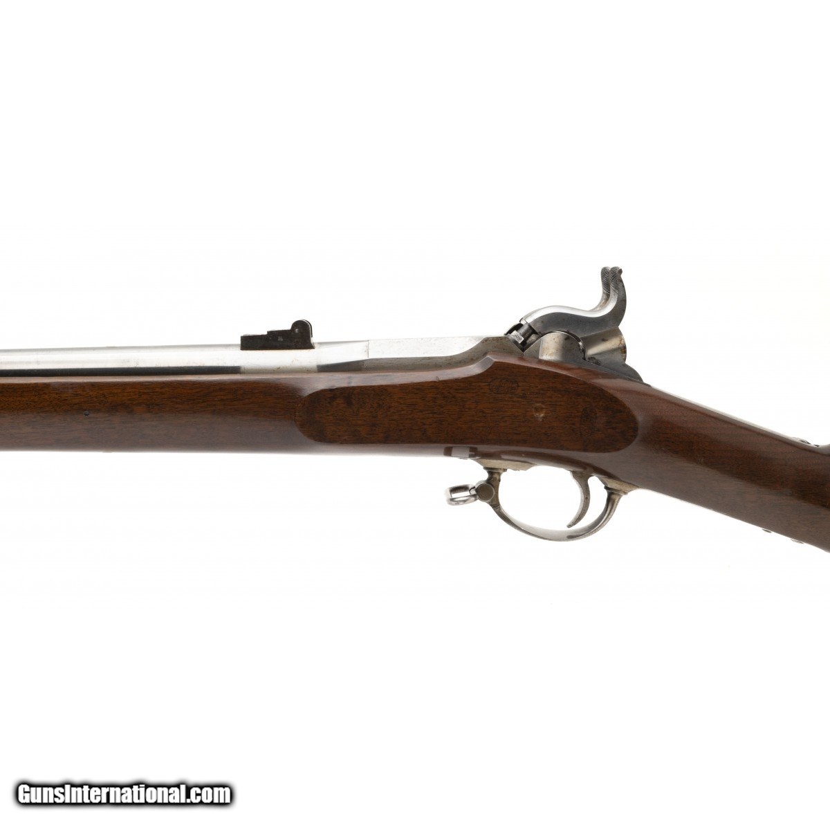 Description: " The U.S. Ordnance Department bought 1,000 Model 1863 Lindsay percussion double rifle muskets for field trials circa 1863/4. This unusual rifle musket fired two charges, one on top of the other, from the single barrel. They were fired separately using double hammers and a single trigger. that fired the top and then the bottom charge. They were manufactured by J.P. Lindsay of New York. The 41 1/8"" 58 caliber semi-octagon breech to round barrel has an unfired bore with bright, strong rifling. The top of the breech is marked LINDSAY over PATENT""D. OCT. 9. 1860. All the metal is bright with the polish lines around the front and rear sights still being strong. The buttplate tang is marked US and there are subinspector initials on various parts. The stock, with an added finish coat, is excellent with minor storage dents. The left flat two ADK (Andrew D. King) inspection cartouches. The swivels and ramrod are present. The action functions correctly. This was a good idea that didn't work in the field as the using units didn't like them as both charges sometimes fired simultaneously. This rarely seen Lindsay double rifle musket is a must for your Civil War rifle musket collection or for collectors of unusual firearms. SOLD Antique: Yes |