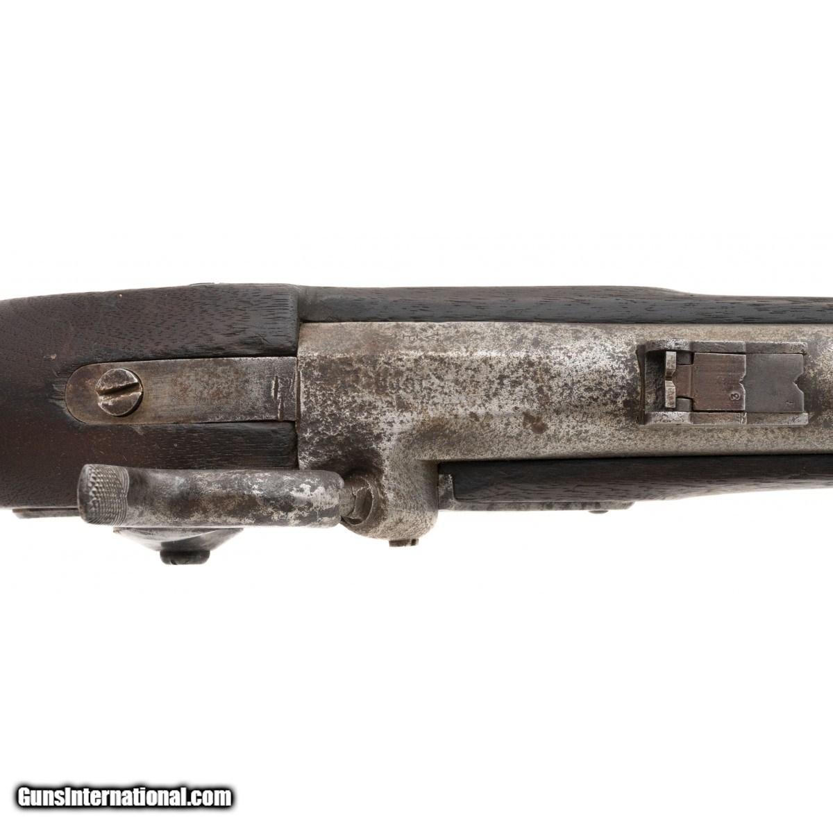 Description: " NSN, .58 caliber, 40"" round rifled barrel contract civil war musket by Savage with a lock plate dated 1863. Metal is a light grey patina with scattered oxidation noted. Action functions correctly, wood is good with some usage and wear noted. SOLD Antique: Yes |