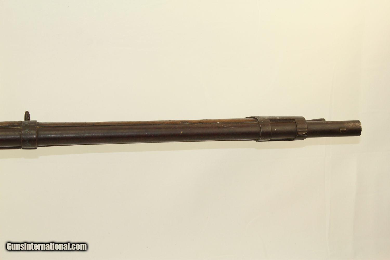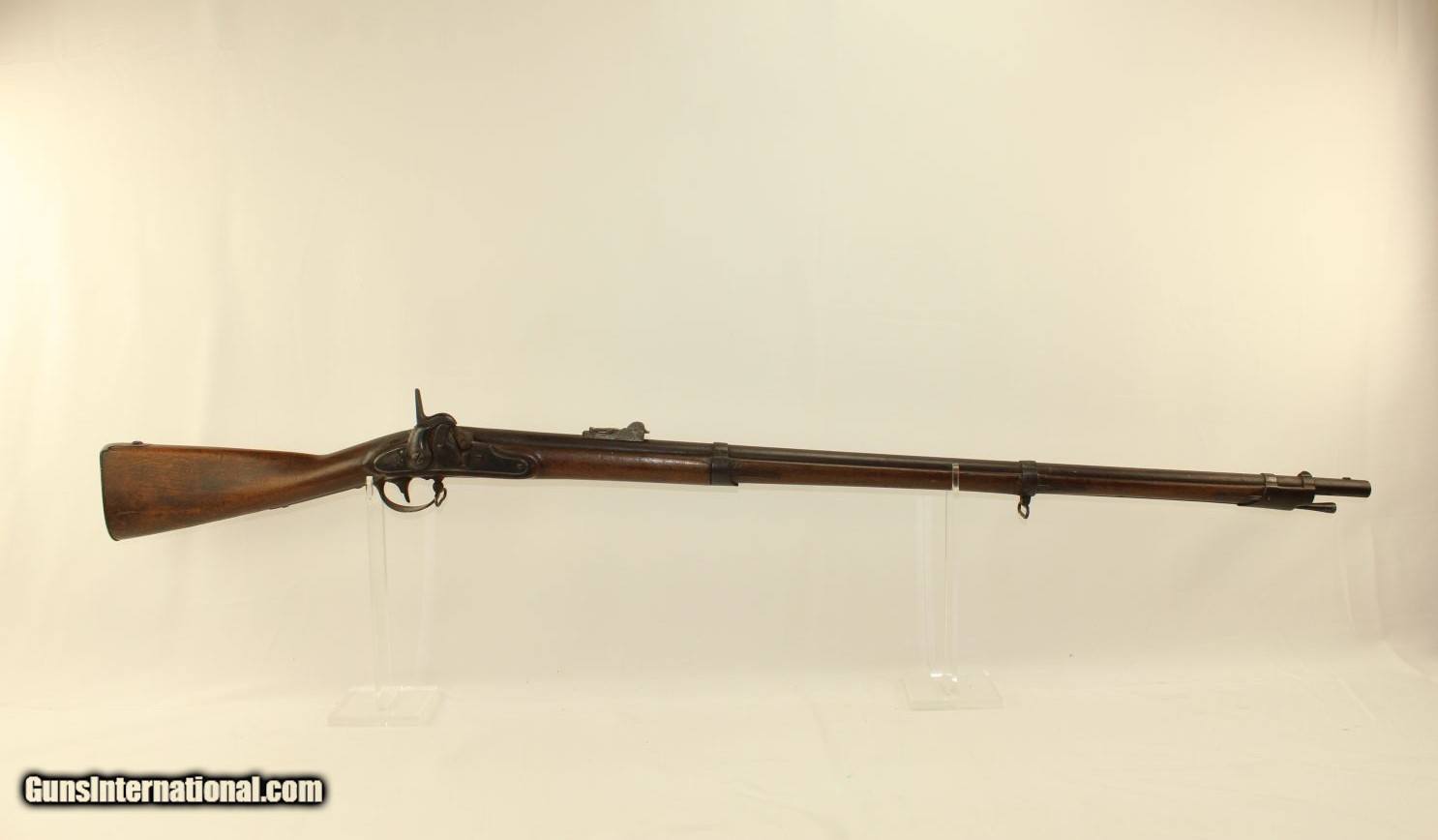 Description: “RASHAW” Signed M1816 MAYNARD Conversion Musket Tape Primer Update to Flintlock Musket for Civil War Here we present an antique Signed Remington-Frankford Arsenal Maynard Primer Conversion of a U.S. Model 1816 Musket, performed by Frankford Arsenal in Philadelphia, Pennsylvania, circa 1857. The Model 1816 Flintlock Musket was the largest production of U.S. flintlock muskets, with over 700,000 made between Springfield and Harpers Ferry Armories, and many thousands more made by 16 different contractors. By the late 1850s, many of these arms were being updated using various percussion systems, most receiving the typical cap fired conversions. However, other conversions were also being tested, and Remington was contracted to make 20,000 Maynard Tape Priming locks in 1856. Instead of the small fulminate filled metal caps, Maynard Tape was a roll of paper that was impregnated in spots with fulminate. The primary advantage was that the soldier did not have to fumble with tiny caps, because a small wheel inside the lock dispensed primers from the paper roll. This was the system adopted for the Model 1855, and it made sense to update still serviceable flintlocks using this method. However, only about 20,000 of these conversions were done, and the U.S. government eventually chose to go with the cap system when they produced the Model 1861 and 1863 for service during the American Civil War. Most of these various conversions undoubtedly saw combat due to weapons shortages on both sides. This musket puts you there and helps you understand a little better how the Civil War was fought. Many soldiers fought with decades old muskets that were converted from flintlock. Still, they were single shot weapons and when the fighting got close you parried sword blows with your musket and used it as a club. Prior to the Civil War, however, this musket was first updated by Frankford Arsenal, where it received a new lock made by Remington, a new long-range folding-leaf rear sight. The lock is marked “REMINGTON’S/ILION N.Y./1857/U.S.”. The left side of the butt stock is hand-marked with thin writing (difficult to photograph): “RASHAW/Co. A” and more that is not quite as legible after that. Research shows only one record for a soldier by that last name mustering into a Company A and that is John J. Rashaw, who mustered into Company A of the Ohio 19th Infantry at the age of 31 on September 4, 1861. The overall condition is very good. The iron parts have a dark patina. The markings are clear. The walnut stock shows lots of use from decades of service. The bore is dark and smooth. The action is excellent. Here is a very neat example of how single shot flintlock muskets were kept in service! Own the original! This is a legitimate antique and not a reproduction. Barrel is 42 inches in length. Caliber: .69 Percussion Overall condition as seen in photos. Very Fast. Very Safe. FREE SHIPPING WORLDWIDE. Delivered directly to your door by express mail! Guaranteed AUTHENTIC & Includes CERTIFICATE OF AUTHENTICITY. ancestryguns $1750 #190316 SOLD Antique: Yes |
