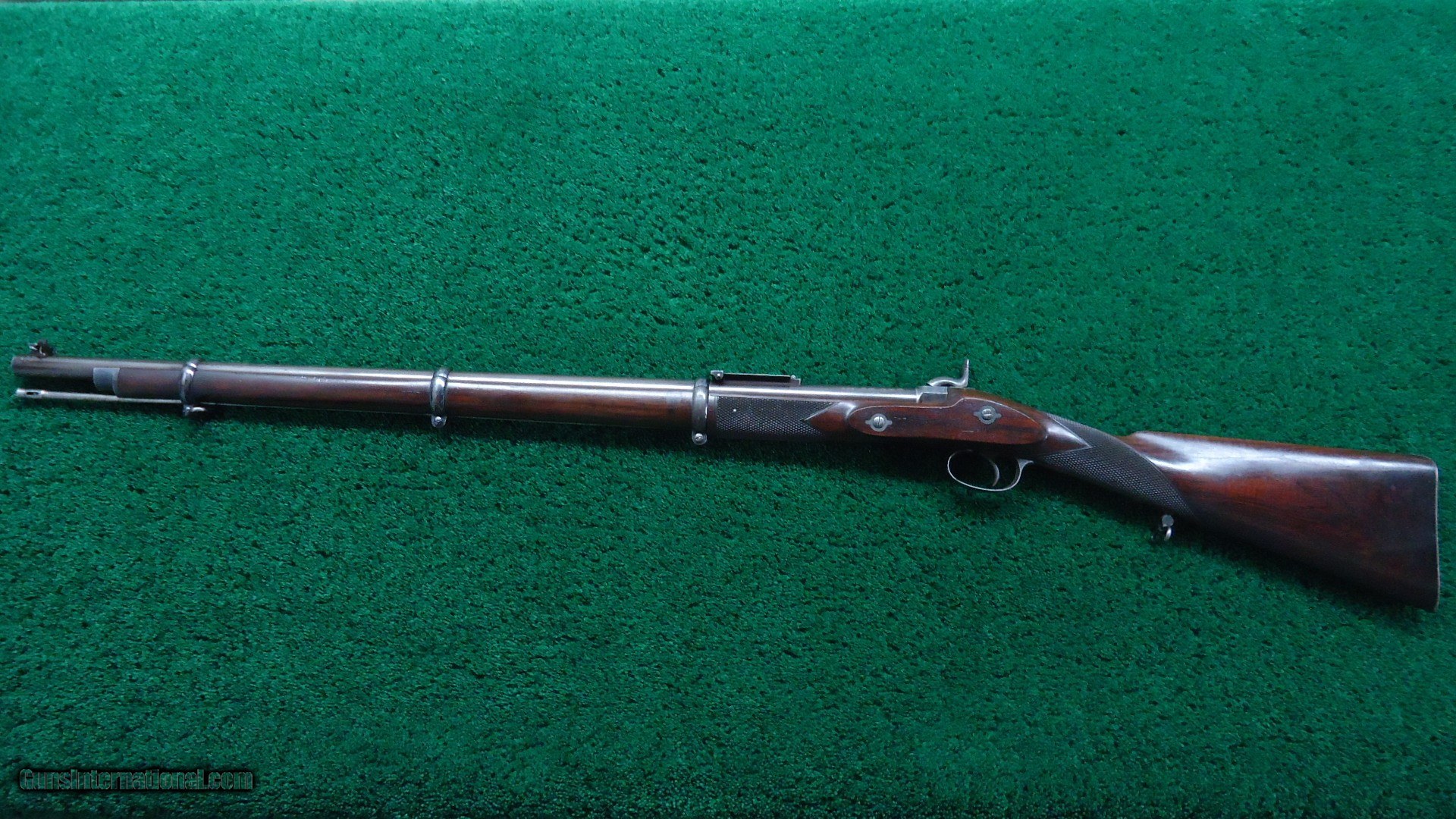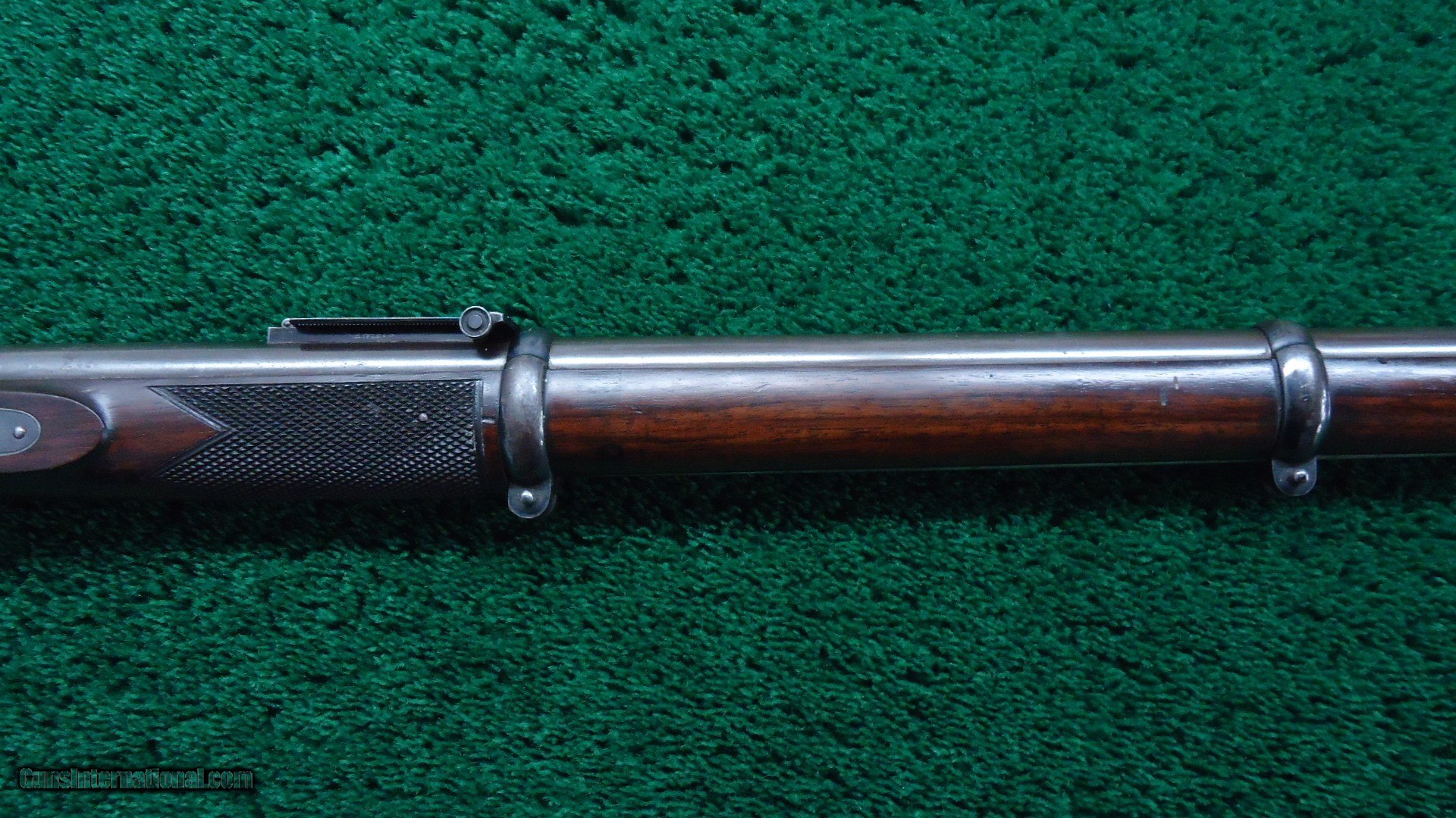 Description: These guns were procured by the Confederacy during the Civil War. They were used as sniper rifles. They were only able to acquire a few of these. Had they been able to get more of them there may have been a different outcome to the Civil War. Whitworth was known for accuracy and these rifles were no exception. This one is in fantastic condition with about 95% original brown finish on the barrel. The breech side plate and hammer were case hardened and retain about 85% of the case color. The musket style stock is excellent with course checkering that shows very little use. Just a few minor dings and mars. The trigger guard shows some wear but still retains case color. Lower tang is marked "Best". 33 inch round barrel with a mint bore. Windage gauge front sight. Manchester Ordinance rear ladder sight. Lock plate has a crown with two dog heads and a "W" underneath it. This gun is extraordinary condition inside and out. Fitted in an English Oak case with the Whitworth label inside the lid. It has 3 covered compartments and several accoutrements including a loading tool, ebony handled screw drivers, leather covered powder flask and some cardboard casings. Also a box of Whitworth Cylindrical Projectiles and a box of Manchester Ordnance & Rifle Co. Hexagonal Projectiles 530 grains. Boxes show age and wear but still mostly intact. And to top it off is a set of antique shooting spectacles with amber lenses. This is a great outfit! This is the only cased set I have encountered in the 50 plus years I have been in the business. Leroy Merz Antique Firearms specializes in antique and vintage Winchesters and other fine American firearms. Since 1965 Mr. Merz has taken part in the world of firearms and has been a contributor to many well known reference books. We have hundreds of additional guns in every price range at our home online. Search for Merz Antiques in google. SOLD Antique: Yes |