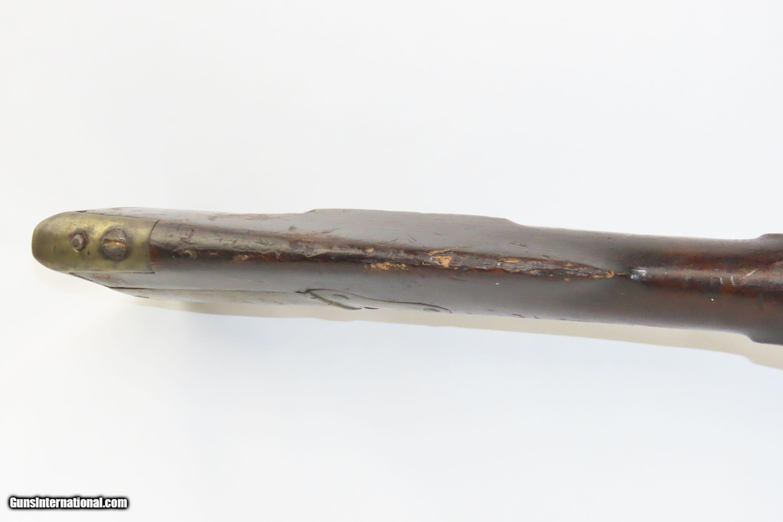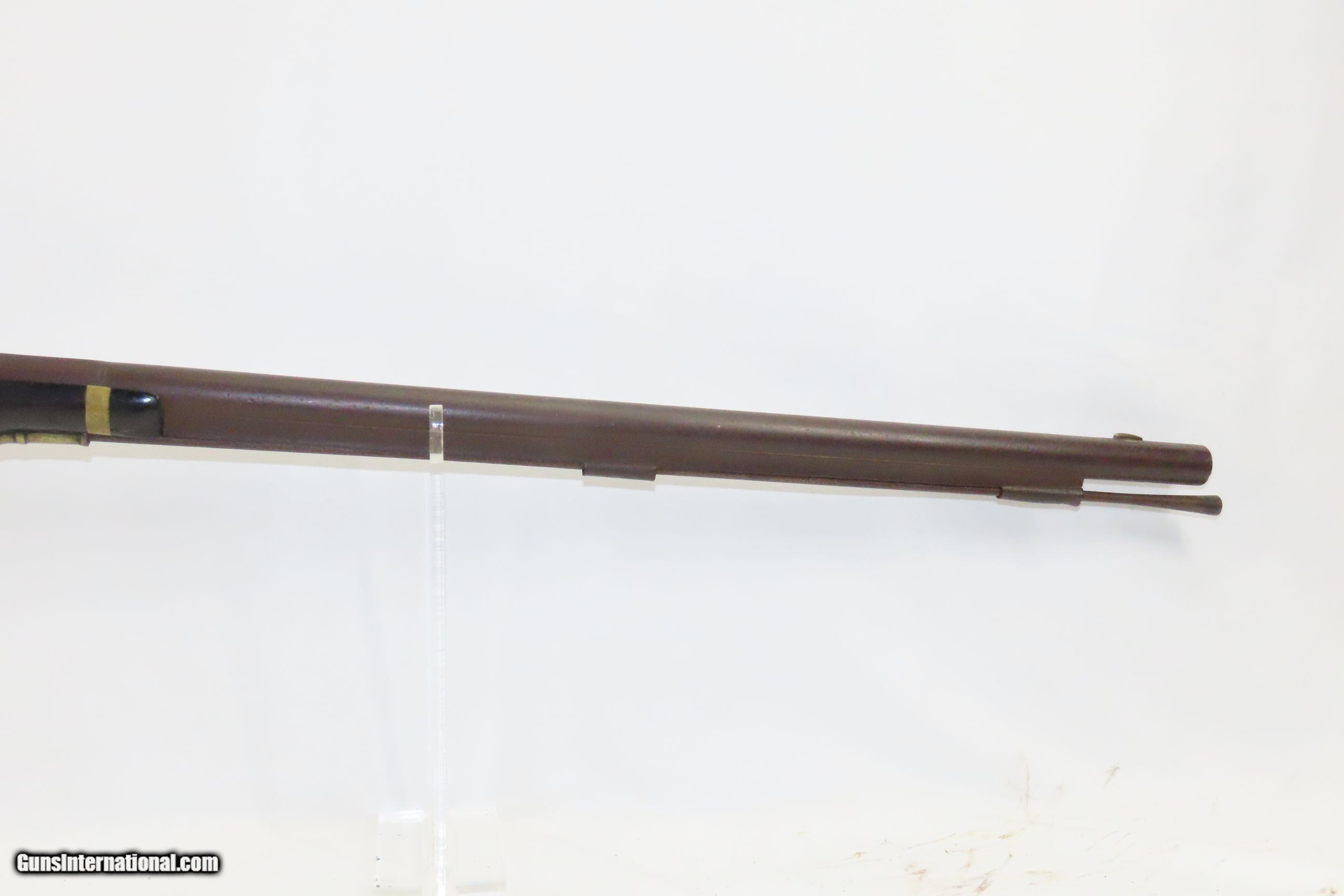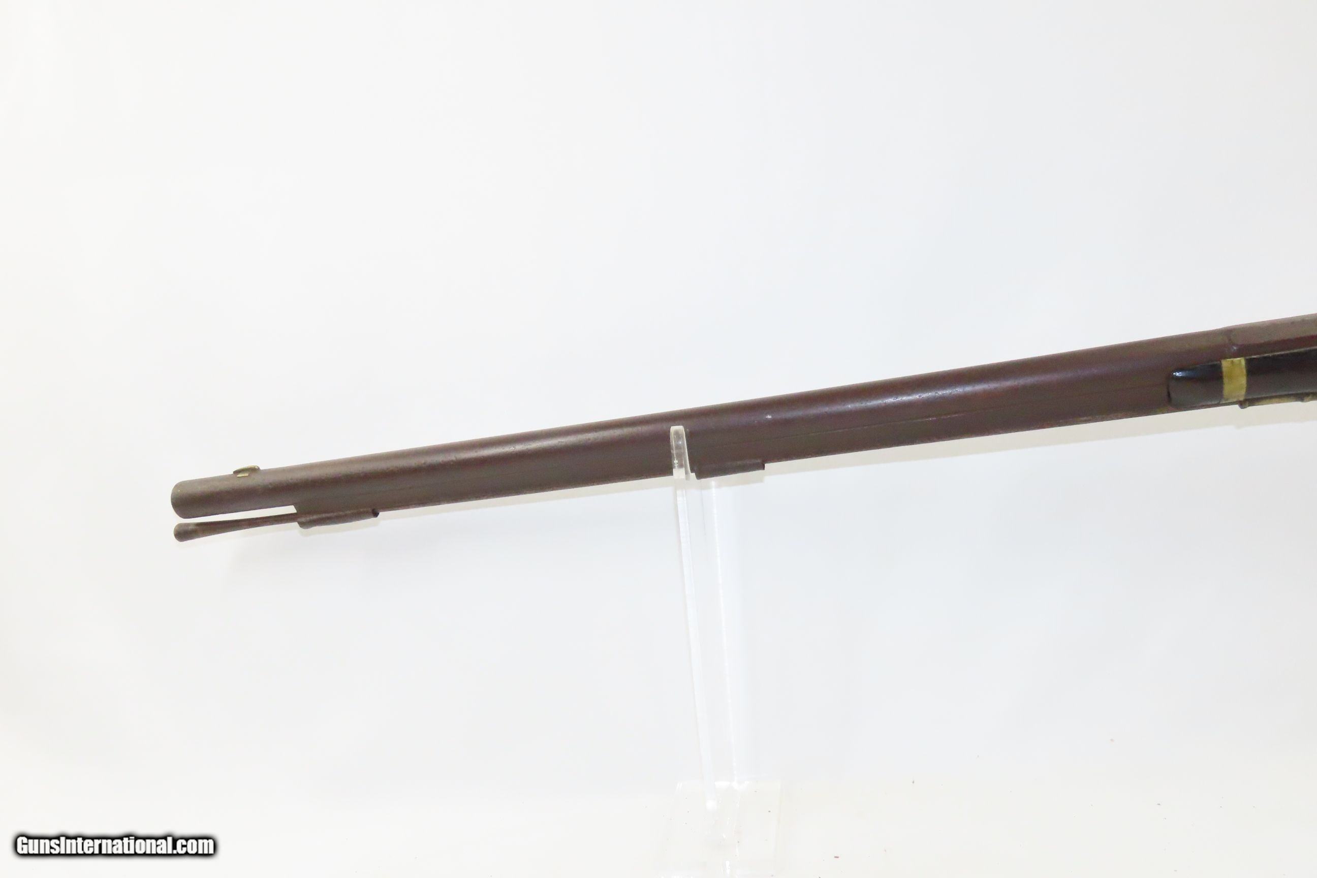 Description: 1818 Dated HARPERS FERRY U.S. Model 1803 Military RIFLED FLINTLOCK Musket First U.S. Military Produced Flintlock “Rifle” Here we present an antique Harpers Ferry U.S. Model 1803 Flintlock Musket, manufactured in 1818 at the Harpers Ferry Arsenal in Harpers Ferry, Virginia. While the Harpers Ferry Model 1795 became America’s first smoothbore, the Model 1803 became the country’s first standardized “rifle” design. The Model 1803 was adopted by both the Army and Marines, who appreciated the accuracy of this rifled model. Remaining consistent with other guns of the period, it featured a long wooden body, flintlock action, and muzzle based loading. The rifle featured a brass trigger pull assembly and ring guard, along with a patch box that was embedded into the stock. The caliber was .54 with either a 33 or 36 inch barrel, depending on production batch which was of two major runs. Production spanned from 1803 through 1819 with a total of 19,726 units produced. The Model 1803 saw combat service in the War of 1812, and stood the test of time when it was featured once again in the Mexican-American War. Some even remained in play at the beginning of the American Civil War, when just about any firearm was placed into service due to shortages on both sides. Though it was never confirmed, and sources are in disagreement, many believed that the M1803 was featured in the famous Lewis and Clark Expedition from 1804 through 1806. The overall condition is very good and untouched. Dark patina throughout. The action is excellent and it remains in the original flintlock format. The bore is dusty and untouched with deep rifling. The stock shows use and remains solid. These are rare to come by at all, much more in original flintlock! Own the original! This is a legitimate antique and not a reproduction. Barrel is 36 inches. Caliber: .54 Flintlock Overall condition as seen in photos. Very Fast. Very Safe. FREE SHIPPING WORLDWIDE. Delivered directly to your door by express mail! Guaranteed AUTHENTIC & Includes CERTIFICATE OF AUTHENTICITY. ancestryguns $6200 #230612 SOLD Antique: Yes |