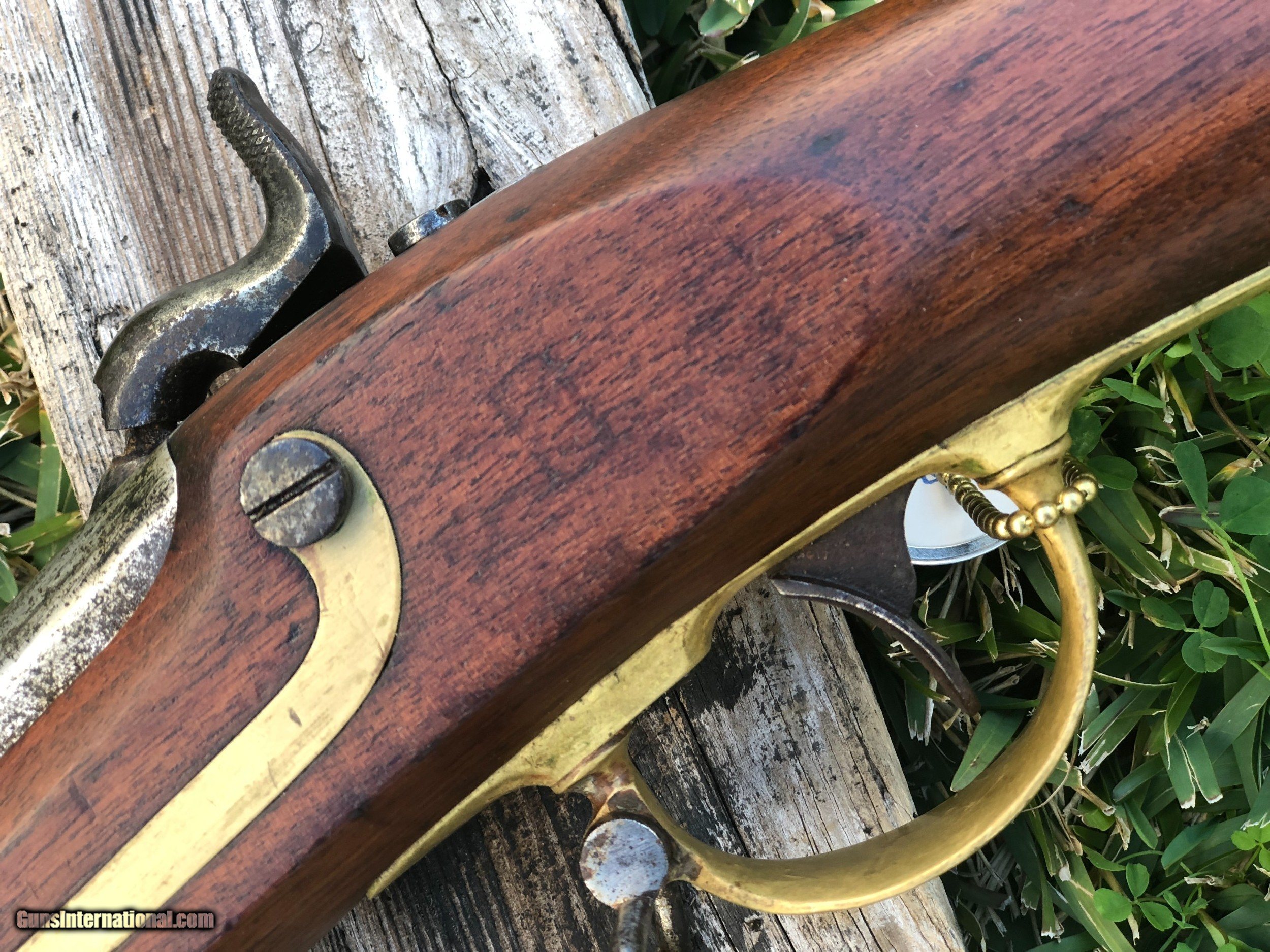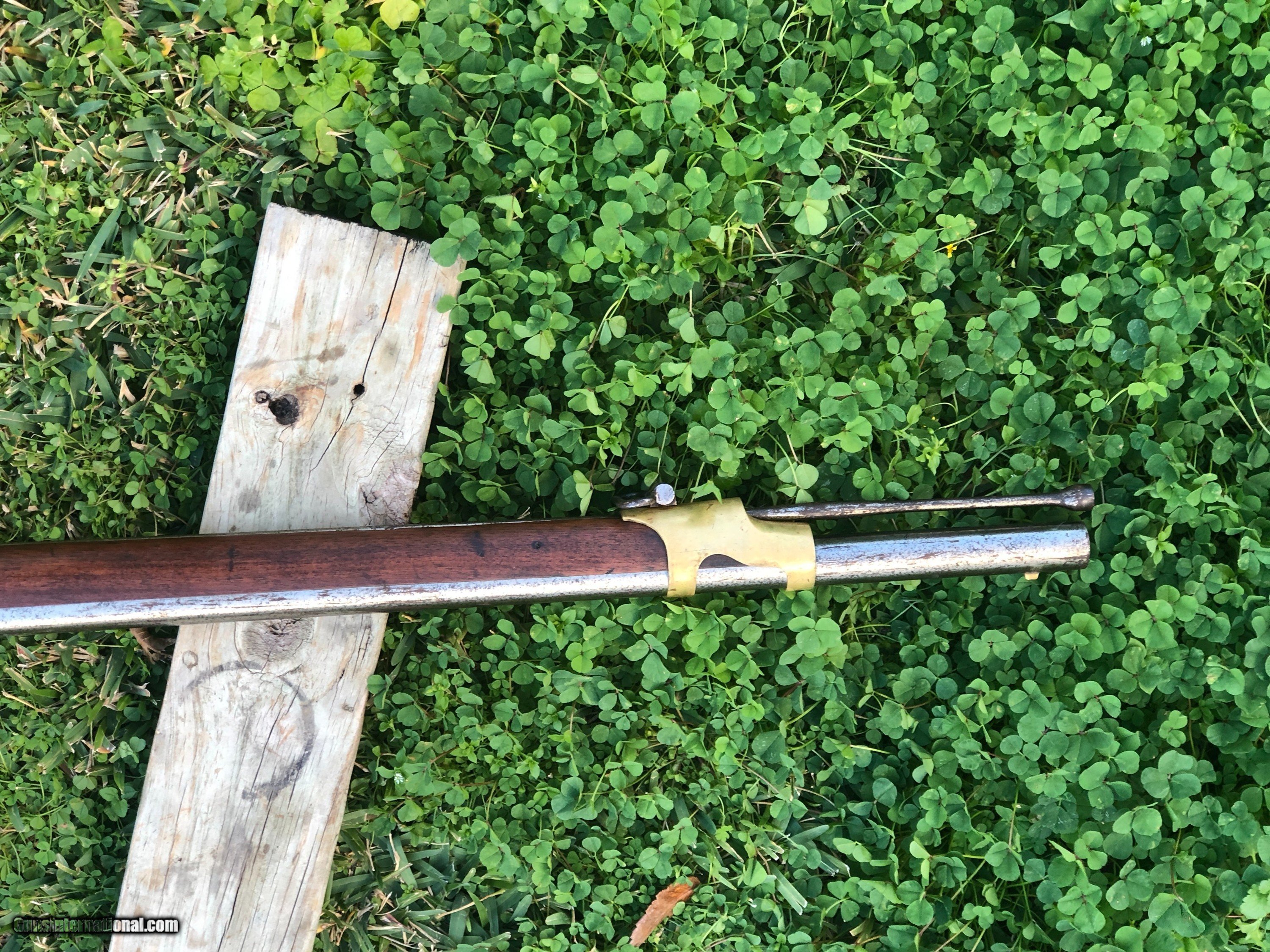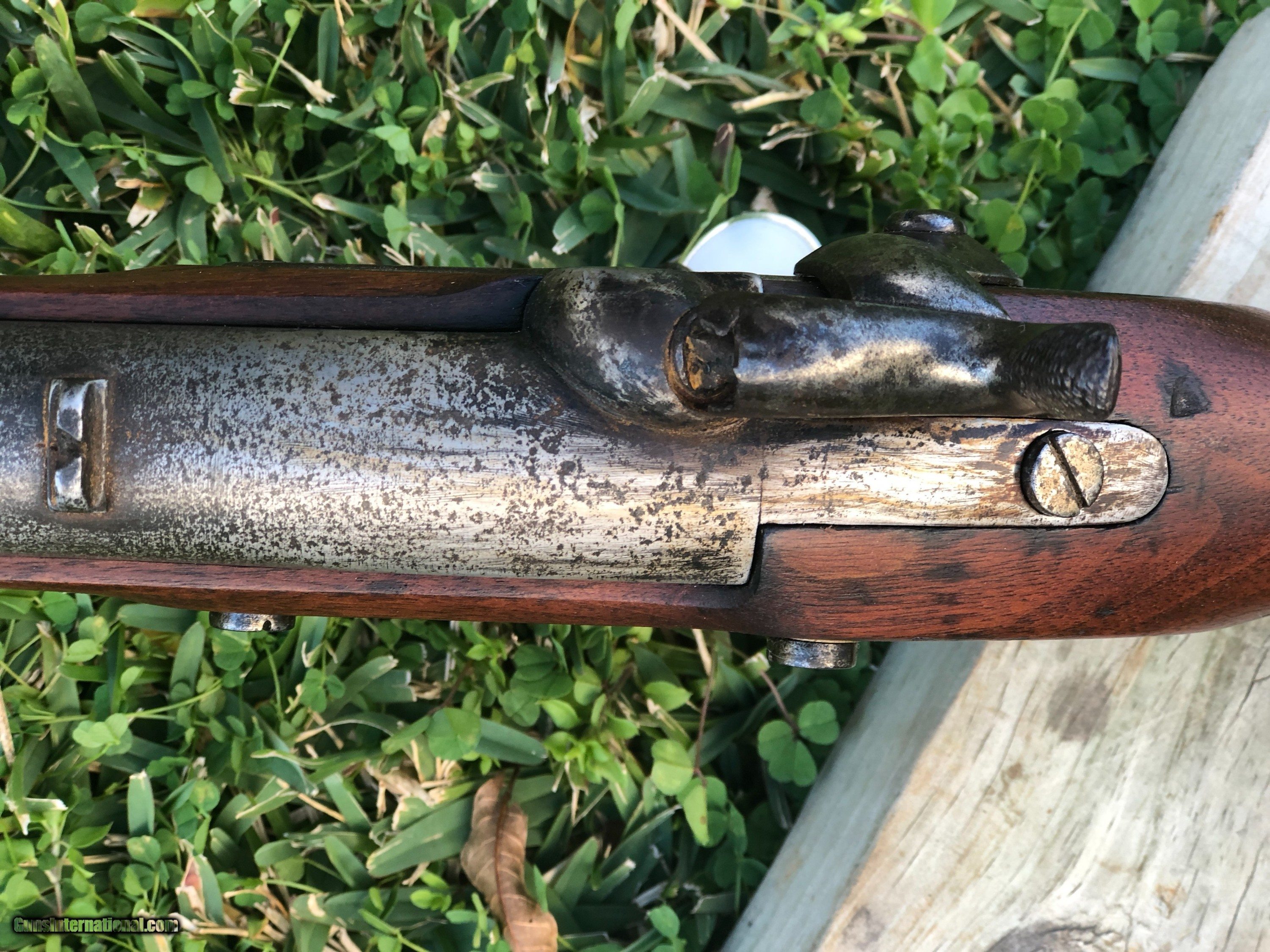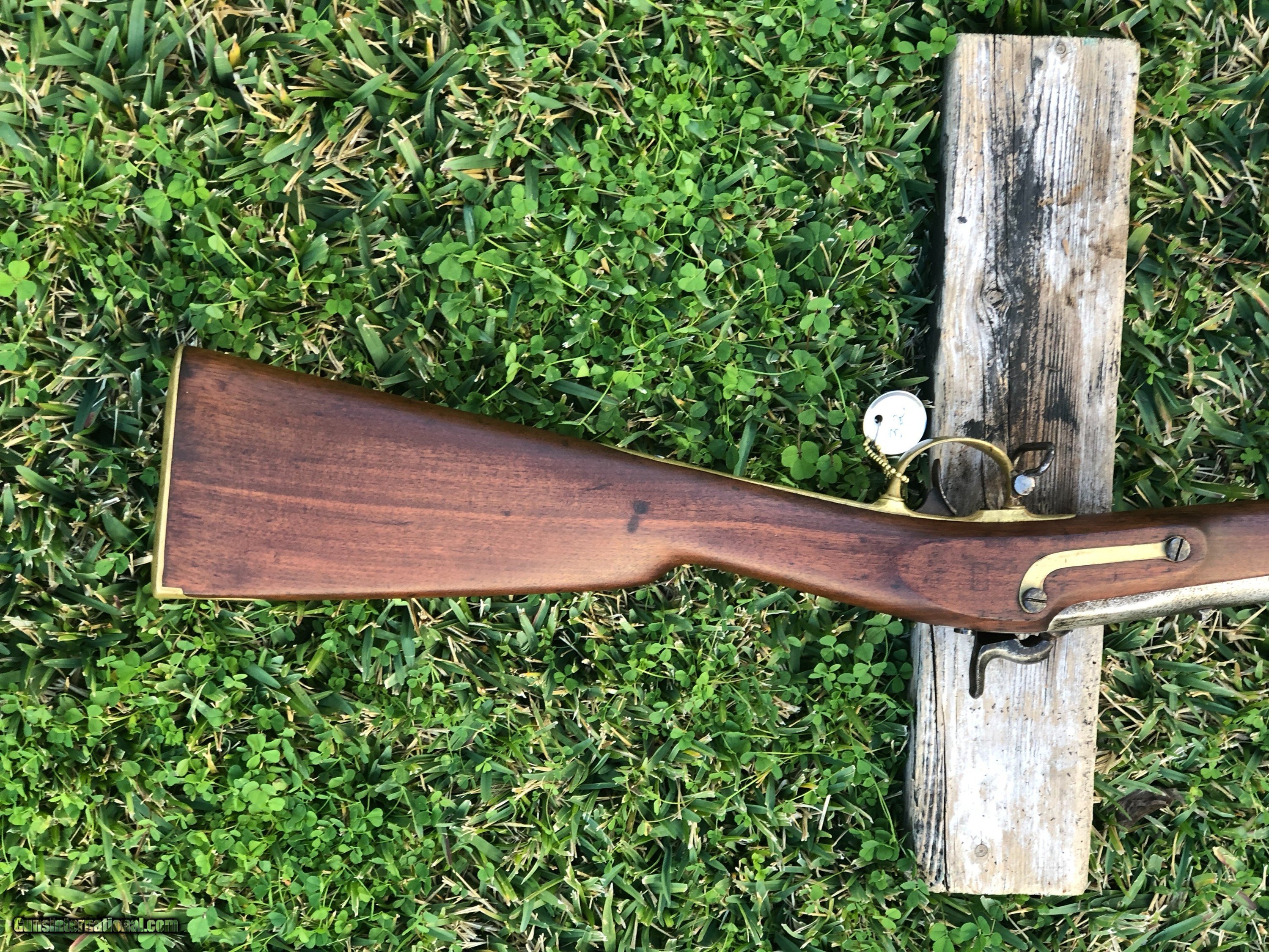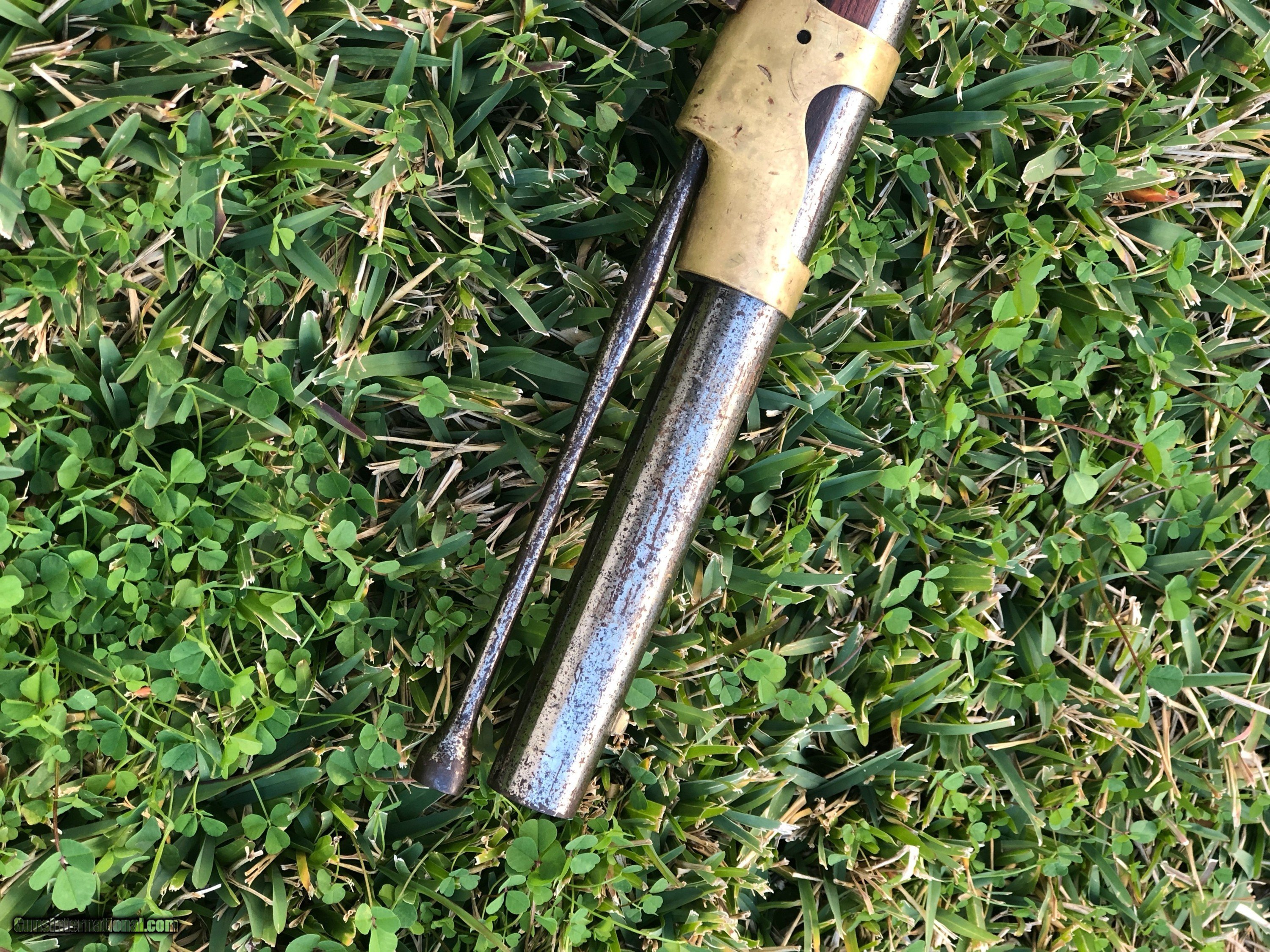 Description: This is a scarce 1844 dated Tryon 1841 Mississippi rifle. Good .54 bore with strong rifling. Mechanics are excellent. Tryon made 5000 rifles under contract. The metal and wood cleaned some time ago. All other markings except the lockplate were removed by either Confederates or maybe someone thought it was a gun stolen from the government??? A very interesting rifle with free shipping. SOLD Antique: Yes |