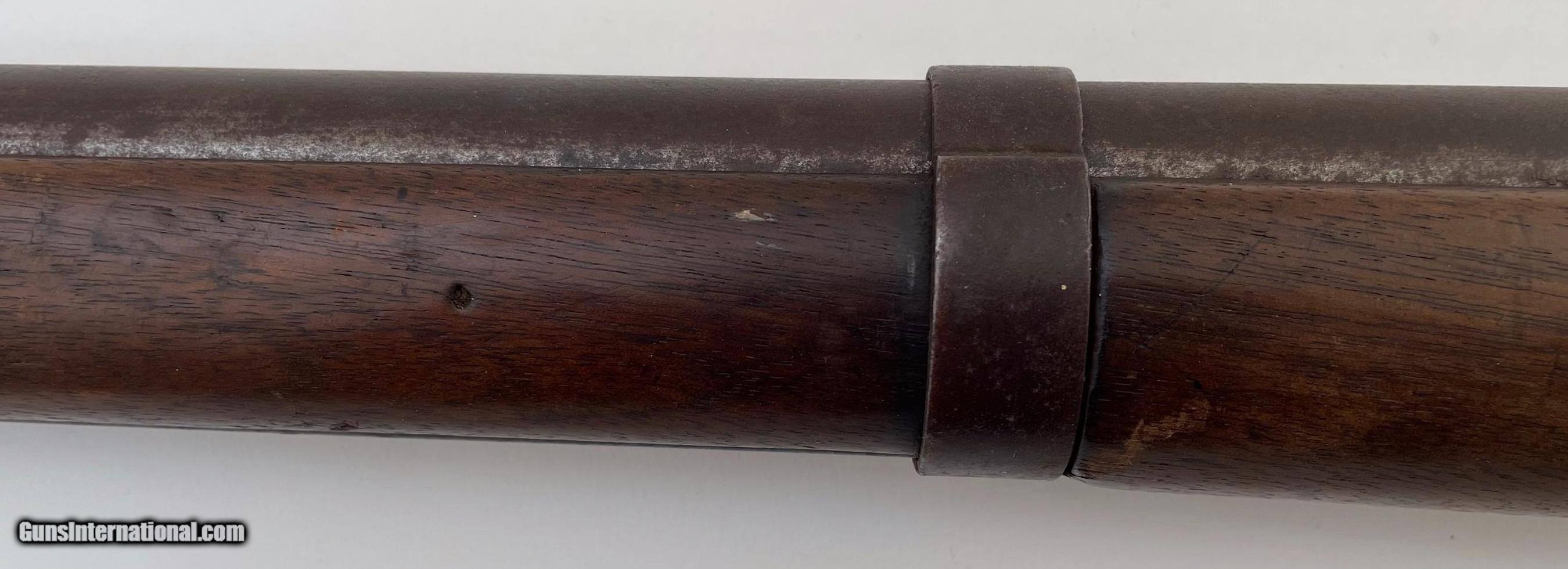 Description: This a very rare 1861 dated example which appears to have seen extensive service. It retains the very early rear sight which would indicate production in early 1861. In our opinion this is the way a Civil War rifle that saw a lot of use should look. It is mechanicaly good and 100% complete in untouched condition. Three initials carved into tight side of buttstock "JLH' See photos for condition. SOLD Antique: Yes |