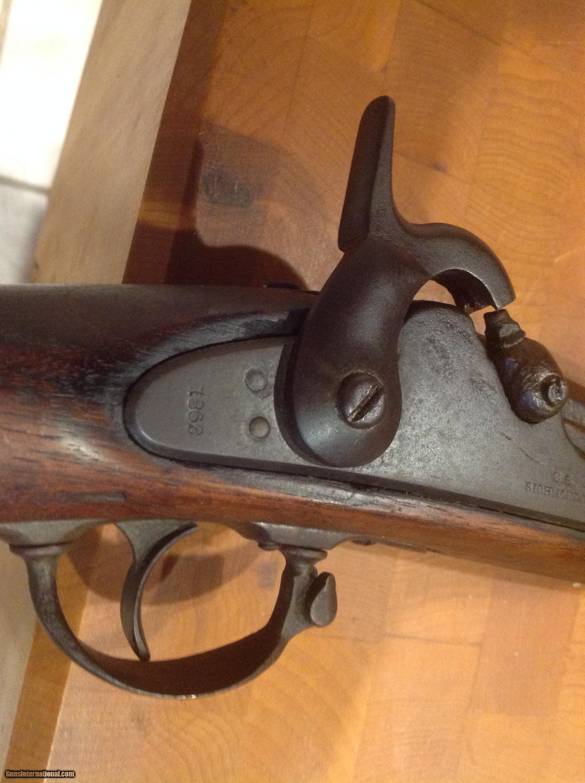 Description: SOLD! Purchased this rifle from Champion Hill Civil War Relics below is the write up: "Most Historic, Rare ID'ed Richmond Rifle, 1862-dated, Exclusively ID'ed to Pvt./Sgt. P. W. Ross, Company B, of the 6th Missouri (Colonel Coffee's) Confederate Cavalry One of the RARE FEW CS Government Shipments of Weapons to the Trans-Mississippi Theater 100% "Textbook" & GORGEOUS Richmond Rifle "P W Ross" Carved LARGE on Both Sides of Stock, Acquired from the Family at last Fall's Tulsa, OK Show, and with ONLY ONE "P W Ross" in all CS Records...Kind of makes it EASY for it's Identification & Provenance The 6th Missouri was usually called "Coffee's Missouri Cavalry" after their famed leader who founded and led them, or called the "3rd" (then "11th" and other Unit Designations Missouri CS Cavalry) but the CS War Department always referred to them as the "6th Missouri" The men--and THIS Richmond Rifle-- Fought HARD and Continuously from 1862 until the "Bitter End" with CS Generals Shelby, Hindman, Marmaduke, & Price EVEN with Quantrill's Raiders & Stand Waite's Cherokees! Truly Most Historic, Museum-QUALITY CS ID'ed Rifle It is so hard for me, as a dealer AND collector, to have such historically rich beyond measure, RARE and ID'ed CS-made weaponry and the bloody heroic history the Confederate soldier's service with the weapon embody...and to have to SELL IT. I can't afford to "keep them all"! Being purchased at the annual and famed Tulsa, Oklahoma Gun Show in the fall of last year, the Ross family descendents sold this rifle to a dealer from Tennessee, and I LEAPED at the chance to buy it, when I hastily looked-up the history behind "P. W. Ross" and his 6h Missouri Cavalry on my iPhone at the Franklin Show. This literally "textbook" 1862-dated GORGEOUS Richmond Armory Rifle--all the "U" barrel-band stamps WAY off-center to the band-springs, date and CS Richmond, VA font STRONG and correct, brass un-marked buttplate, brass Richmond-style screw-in nose-cap, killer Richmond ramrod, housing for the "medium hump" Richmond lockplate with NO recesses for the US Model 1855 Maynard Primer firing lockplate, the very smoothed-over backstock, cruder CS/Richmond quality stock-wood...it's literally a "textbook" specimen straight out of Paul Davies' "The CS Richmond Armory" reference book! [See excerpts below!] She's fully-functional, all markings vividly seen, "ATTIC-MINTY" condition in that ALL the iron on it is the richest, deep, dark chocolate-brown patina evenly all over the entire weapon! There's only the most minor wear, dings, bumps to be expected from a hard-fighting mounted rifleman that Pvt. Ross was and endured for 2 solid years of combat service, and NO CHIPS and NO CRACKING on the stock! The UN-FAKABLE bolster-wear attests to it's 2 full years of combat service as a hard-fighting "veteran"...you CAN NOT FAKE IT! As usual, the rear long-range sight and the rear sling swivel are missing--good luck finding true CS-used rifles with them!--otherwise ALL complete, ALL Richmond, with NO DAMAGE, NO REPAIRS, FULLY-FUNCTIONAL....nothing but the history of a brave soldier and his compatriots in the dreaded "border states" where battles and skirmishes would later turn more to REVENGE and unleashed HATRED in the Missouri/Kansas region, which included Native American Indians fighting alongside BOTH the North AND the South. For it was in "bleeding Kansas" that in the 1850's, pro-slavery and pro-abolitionists formed militia's and "no-quarter bushwhackers" that hung, tortured, killed each other, producing Kansas' famed/infamous John Brown, to lead his ill-fated raid to arm and free slaves by taking the US Harpers Ferry Arsenal in 1859...THE US Harpers Ferry Arsenal that a Col. Robert E. Lee led a detachment of US Marines to flush-out John Brown and his band....THE US Harpers Ferry that would be CAPTURED with EVERYTHING in it shipped to Richmond to for THE Richmond Armory that MADE THIS RIFLE !!! As I said....THIS RIFLE IS ALL HISTORY along with the RARITY and GORGEOUS BEAUTY! Credit/Source of above to Champion Hill Relics. More photos on request. Also have copies of the enlistment paperwork of P. W. Ross. SOLD Curio/Relic: Yes Antique: Yes |