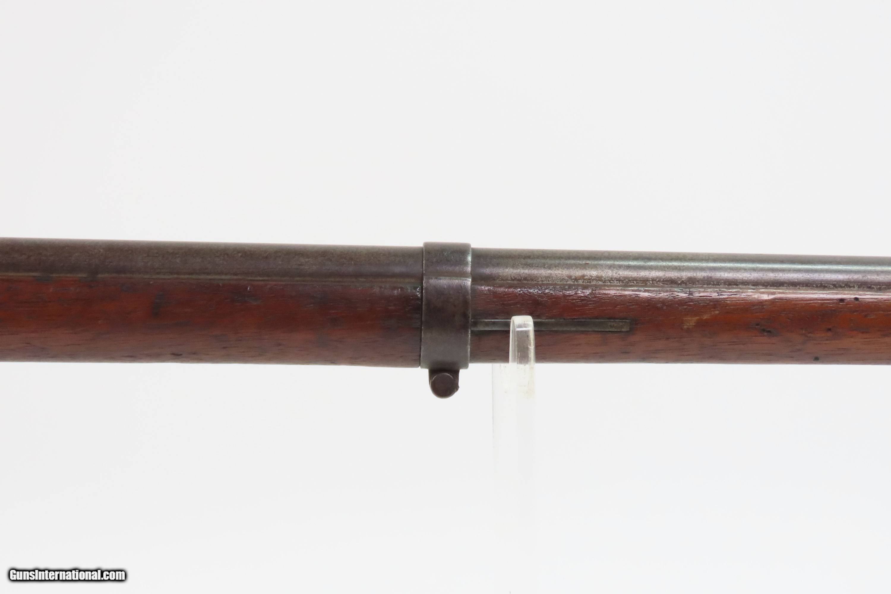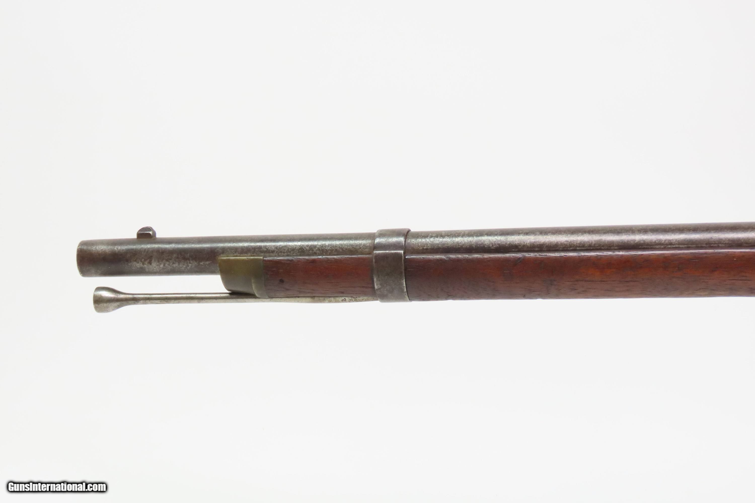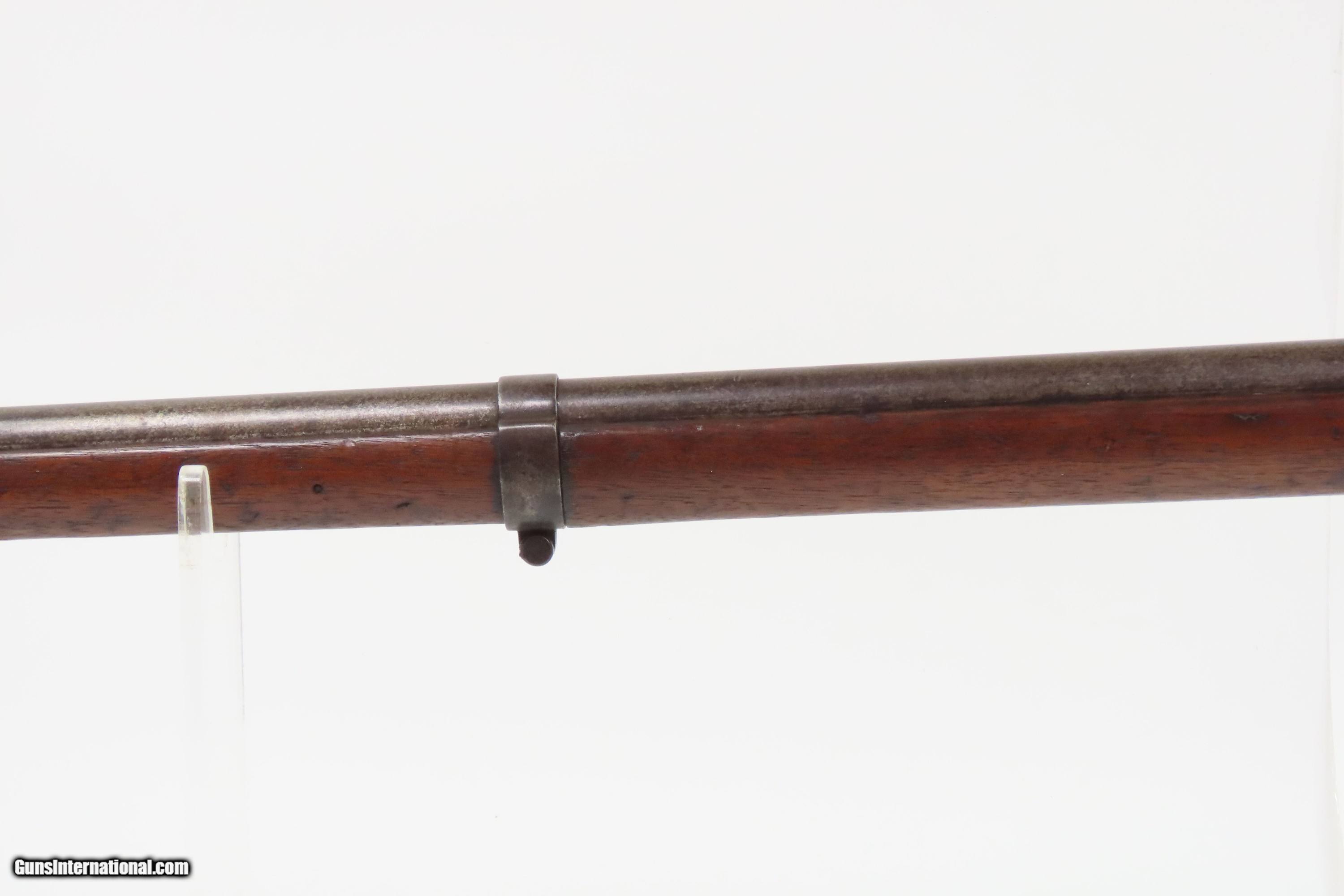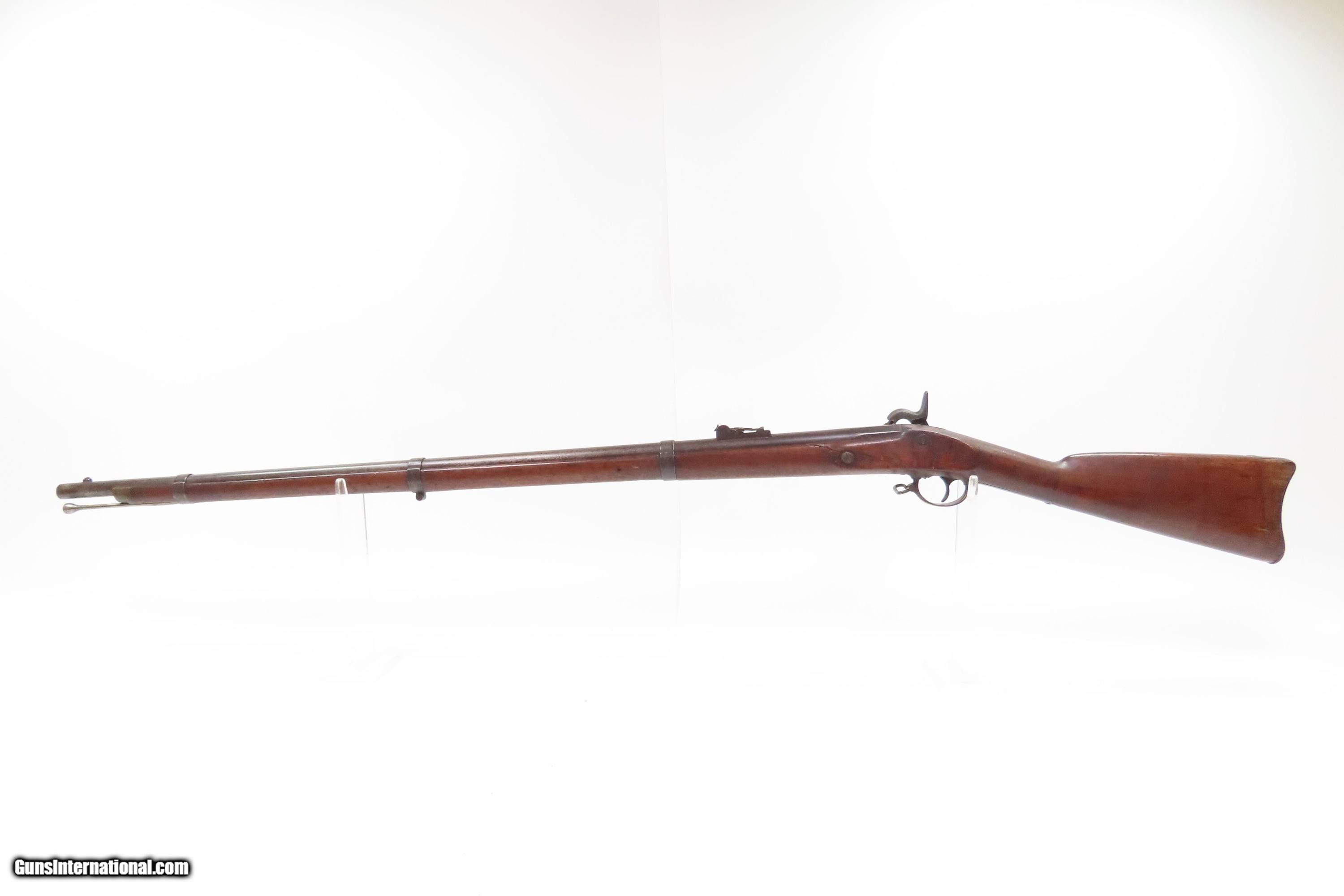 Description: 1862 Dated CONFEDERATE Antique C.S. RICHMOND Marked “HUMBPACK” Rifle-Musket Original Military Weapon for SOUTHERN INFANTRY Here we present an antique Confederate C.S. Richmond Armory Three Band Rifle-Musket, made in 1862 in Richmond, Virginia. At the start of the Civil War, the Confederacy lacked small arms manufacturing resources. Virginia funded the modernization of the Old State Armory in Richmond with English machinery, but the Union blockade prevented delivery. In April 1861, Stonewall Jackson captured Harper's Ferry, salvaging machinery and 33,993 black walnut stocks for muskets, which were transported via rail to Richmond. The rifling machinery was moved to Fayetteville Arsenal. Originally established in 1798, the Virginia Manufactory of Arms operated until 1821. It was revived as the Richmond Armory in 1861, utilizing captured Harper’s Ferry machinery. These rifles, distinguished by hump-back lock plates from the U.S. Model 1855 Maynard, became the most common domestically produced longarm in the Confederacy, widely used by infantry. This rifled musket features the Richmond lock marked “C.S./RICHMOND,VA.” and dated “1862”. The lock inletting is correct and there is no provision for the Maynard system to be used. The stock is as it should be and not inspector marked. End of the tulip head ramrod is solid. The overall condition is very good. The stock is in good shape for its age with a faint cartouche on the left flat. Broken rear sight. Dark patina on the barrel barrel and gray patina on the lock. Strong action. Dark, good bore. A faint eagle head and “P” is discernable on the breech with legible markings otherwise. Here is an exceedingly rare, highly sought-after Confederate made rifle-musket! Own the original! This is a legitimate antique and not a reproduction. Barrel is 40 inches. Caliber: .58 Percussion Overall condition as seen in photos. Very Fast. Very Safe. FREE SHIPPING WORLDWIDE. Delivered directly to your door by express mail! Guaranteed AUTHENTIC & Includes CERTIFICATE OF AUTHENTICITY. ancestryguns $3650 #250320 SOLD Antique: Yes |