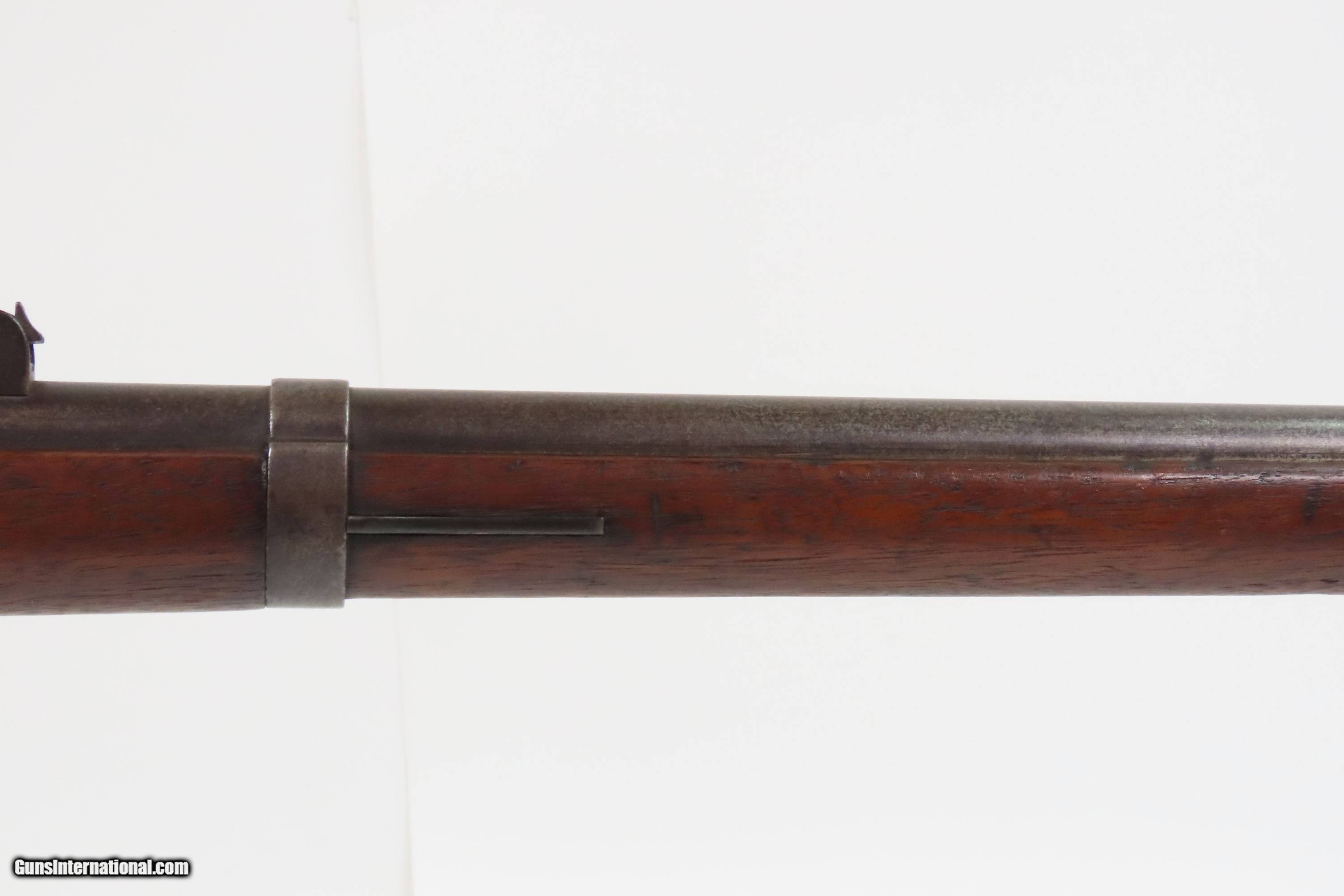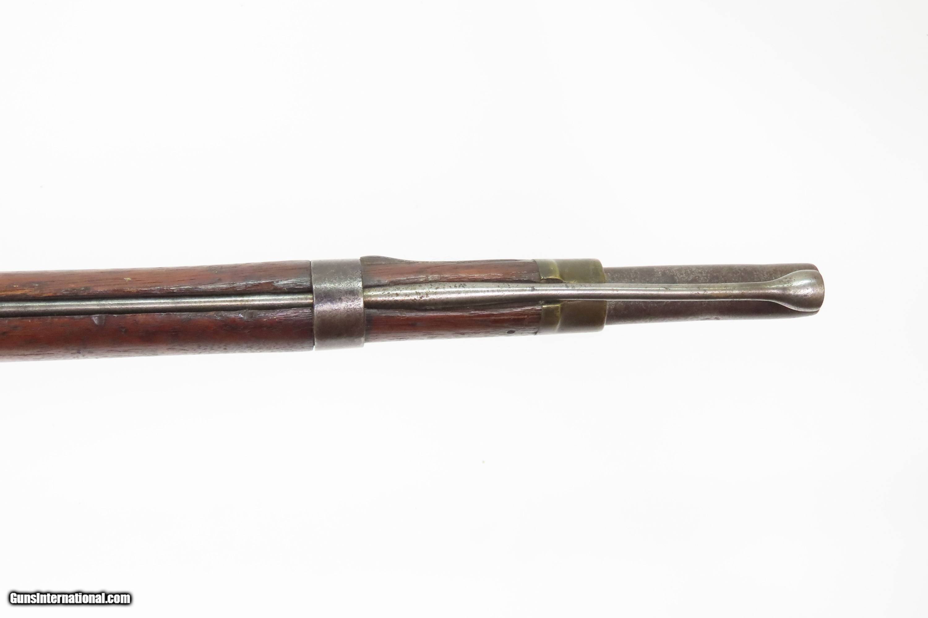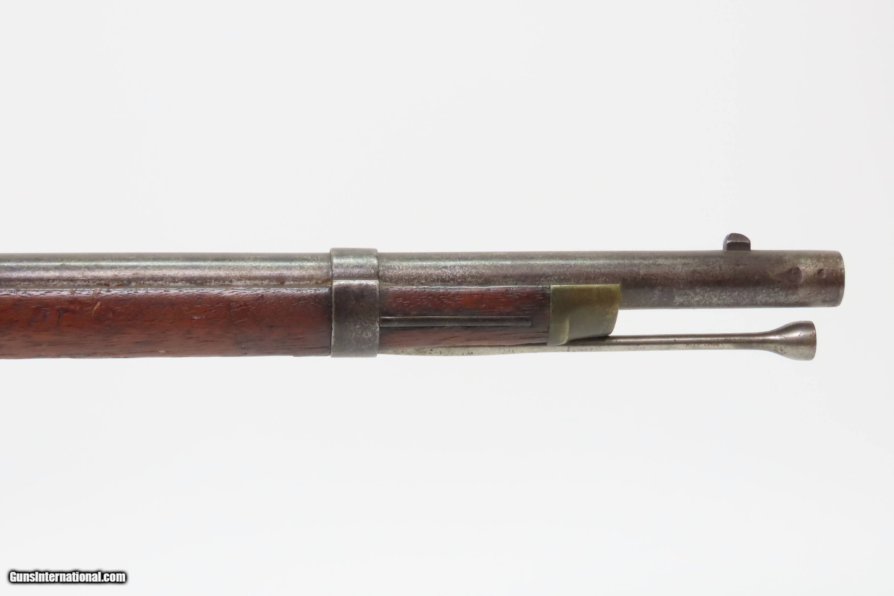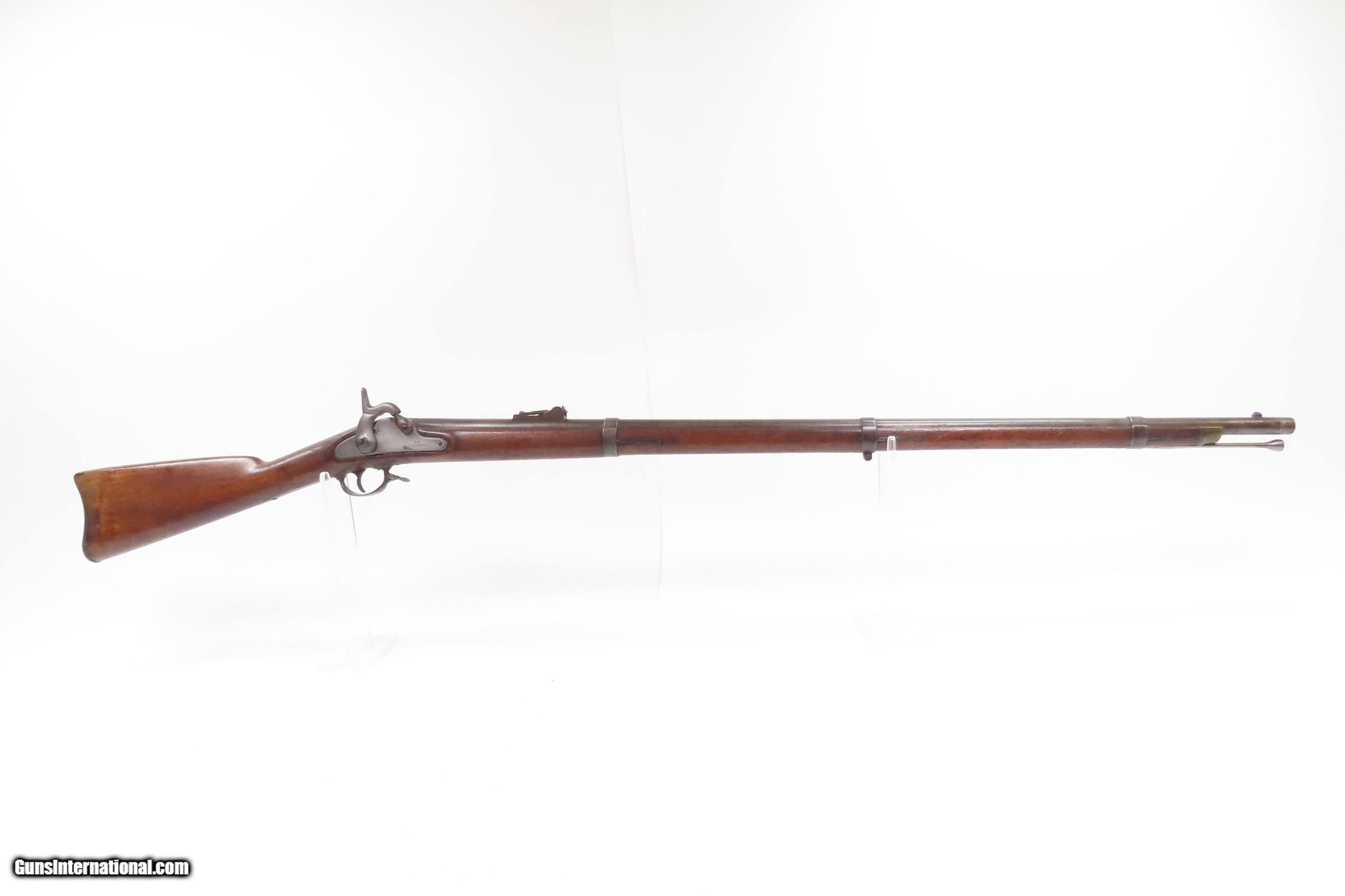 Description: 1862 Dated CONFEDERATE Antique C.S. RICHMOND Marked “HUMBPACK” Rifle-Musket Original Military Weapon for SOUTHERN INFANTRY Here we present an antique Confederate C.S. Richmond Armory Three Band Rifle-Musket, made in 1862 in Richmond, Virginia. At the start of the Civil War, the Confederacy lacked small arms manufacturing resources. Virginia funded the modernization of the Old State Armory in Richmond with English machinery, but the Union blockade prevented delivery. In April 1861, Stonewall Jackson captured Harper's Ferry, salvaging machinery and 33,993 black walnut stocks for muskets, which were transported via rail to Richmond. The rifling machinery was moved to Fayetteville Arsenal. Originally established in 1798, the Virginia Manufactory of Arms operated until 1821. It was revived as the Richmond Armory in 1861, utilizing captured Harper’s Ferry machinery. These rifles, distinguished by hump-back lock plates from the U.S. Model 1855 Maynard, became the most common domestically produced longarm in the Confederacy, widely used by infantry. This rifled musket features the Richmond lock marked “C.S./RICHMOND,VA.” and dated “1862”. The lock inletting is correct and there is no provision for the Maynard system to be used. The stock is as it should be and not inspector marked. End of the tulip head ramrod is solid. The overall condition is very good. The stock is in good shape for its age with a faint cartouche on the left flat. Broken rear sight. Dark patina on the barrel barrel and gray patina on the lock. Strong action. Dark, good bore. A faint eagle head and “P” is discernable on the breech with legible markings otherwise. Here is an exceedingly rare, highly sought-after Confederate made rifle-musket! Own the original! This is a legitimate antique and not a reproduction. Barrel is 40 inches. Caliber: .58 Percussion Overall condition as seen in photos. Very Fast. Very Safe. FREE SHIPPING WORLDWIDE. Delivered directly to your door by express mail! Guaranteed AUTHENTIC & Includes CERTIFICATE OF AUTHENTICITY. ancestryguns $3650 #250320 SOLD Antique: Yes |