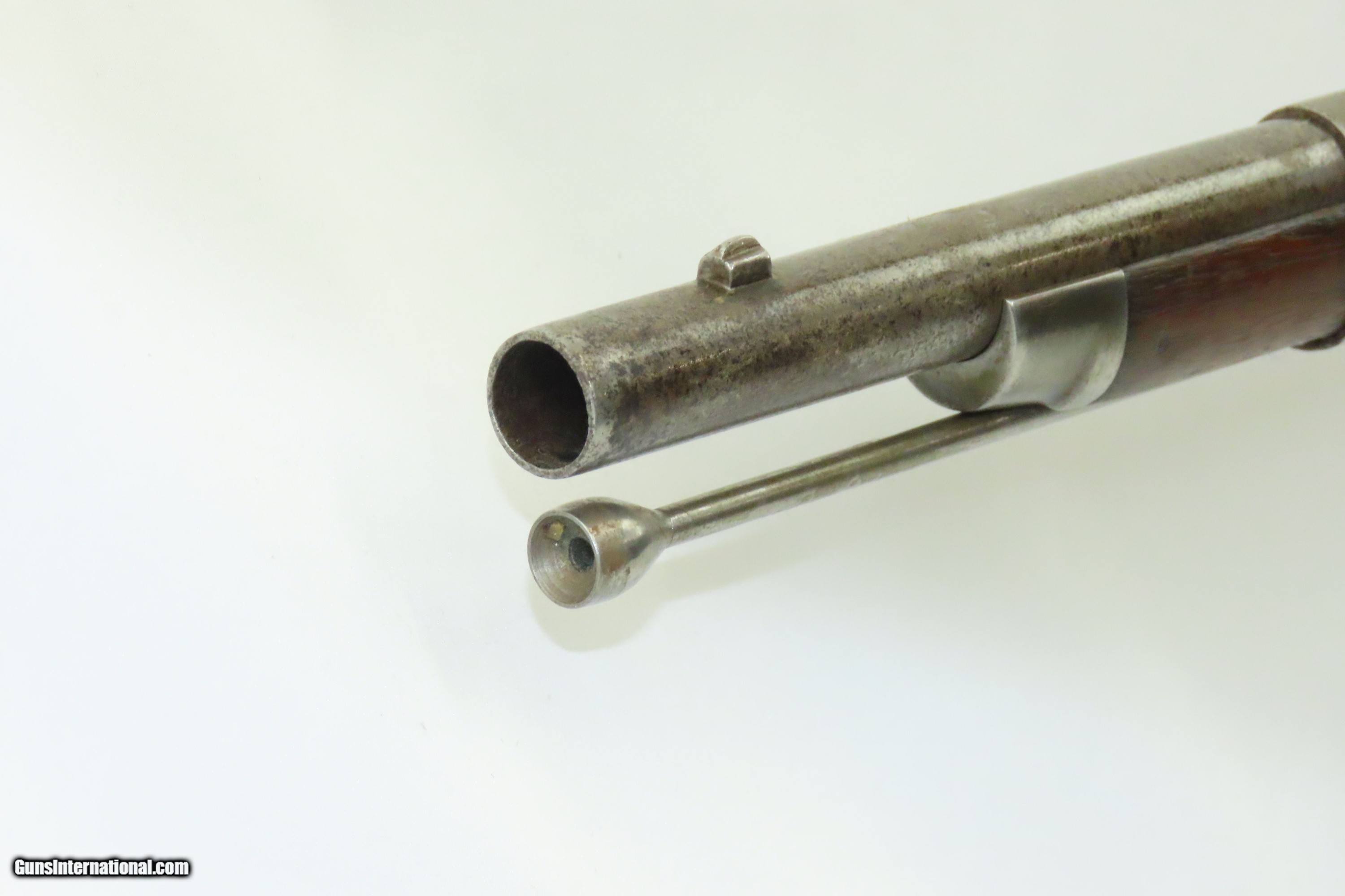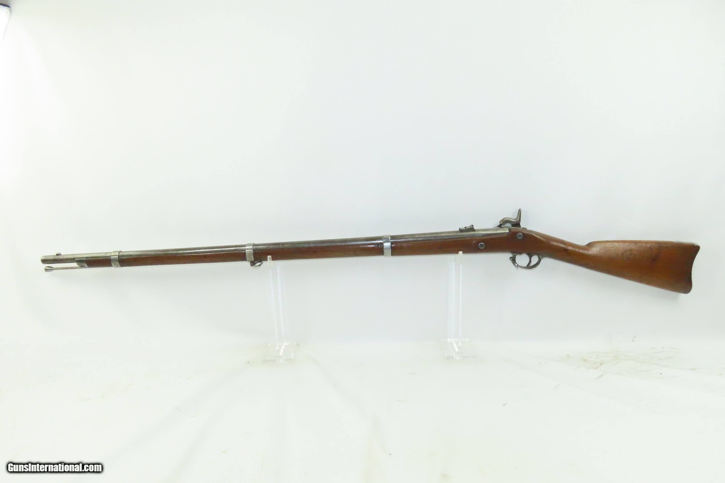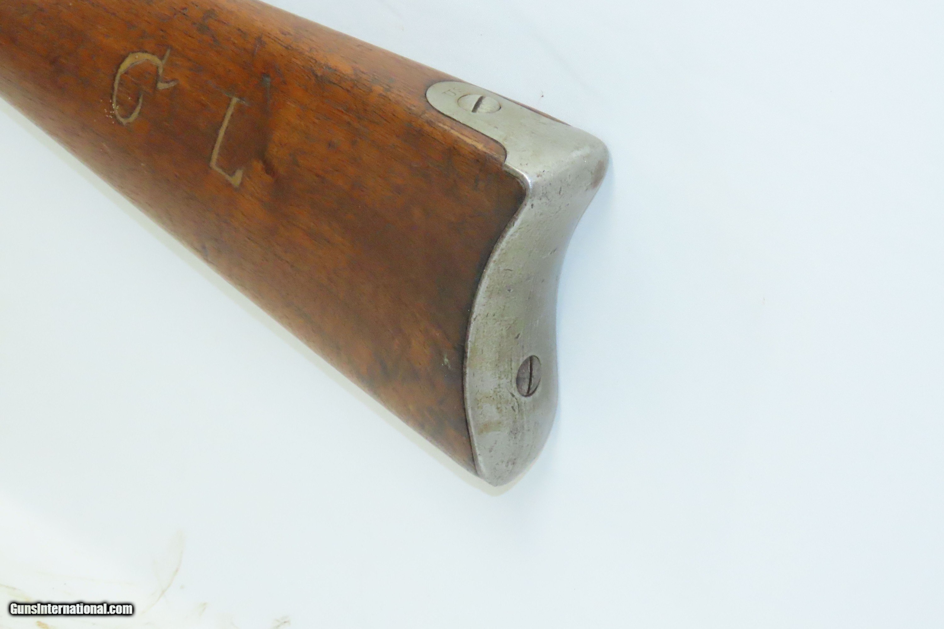 Description: 1863 Dated CIVIL WAR Era Antique SAVAGE M1861 Rifle-Musket SOLDIER GRAFFITI Mid-Civil War U.S. Contract Musket Here we present an antique Savage Revolving Fire Arms Company U.S. Contract Model 1861 Civil War Rifle-Musket, made in 1863 in Middletown, Connecticut. Savage was a major contractor in the Civil War who supplied the government with some 25,520 such muskets for the army. The Model 1861 was the primary infantry weapon of the American Civil War for the Union. The Federal army was not prepared for war in 1861. Quite a few of its arms were in southern hands, and the two armories, Springfield, Massachusetts and Harpers Ferry, Virginia, could not make the standard rifle-musket quickly enough to supply the army. Early in the War, Harpers Ferry was captured, and the machinery was sent to the south. The result was that the Union turned to contractors. The Model 1861 was contracted out to over 20 different companies aside from the national armory at Springfield. Compared to the total production numbers of over a million, production of the Savage contract was limited at 25,520 making these scarce and desirable. The overall condition is good+. Patina throughout. The action is excellent. The bore is dim with some thin rifling visible at the back. The stock is solid and shows the soldier graffiti on both sides with the initials “GL” on the left and “LOUIS/17NY” on the right. The ramrod is a nice replacement. There is a stable split along the grain, just forward of the middle barrel band spring. Own the original! This is a legitimate antique and not a reproduction. Barrel is 40 inches. Caliber: .65 Percussion Overall condition as seen in photos. Very Fast. Very Safe. FREE SHIPPING WORLDWIDE. Delivered directly to your door by express mail! Guaranteed AUTHENTIC & Includes CERTIFICATE OF AUTHENTICITY. ancestryguns $2000 #240113 SOLD Antique: Yes |