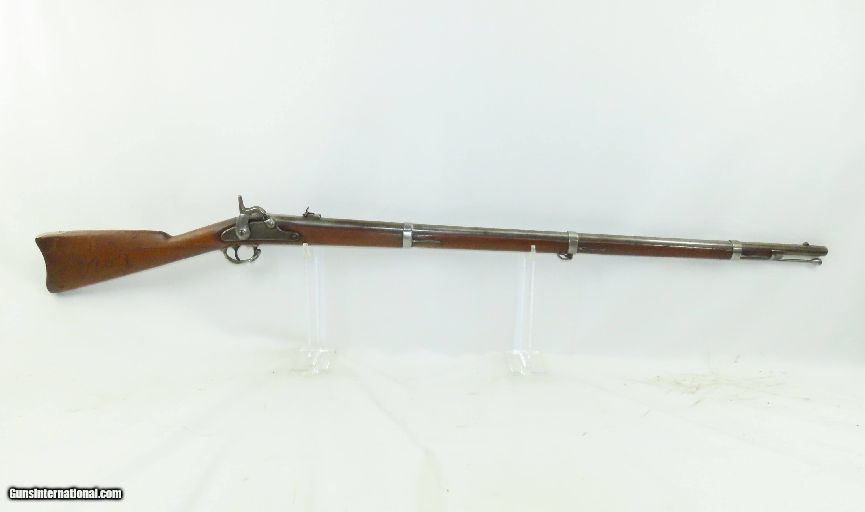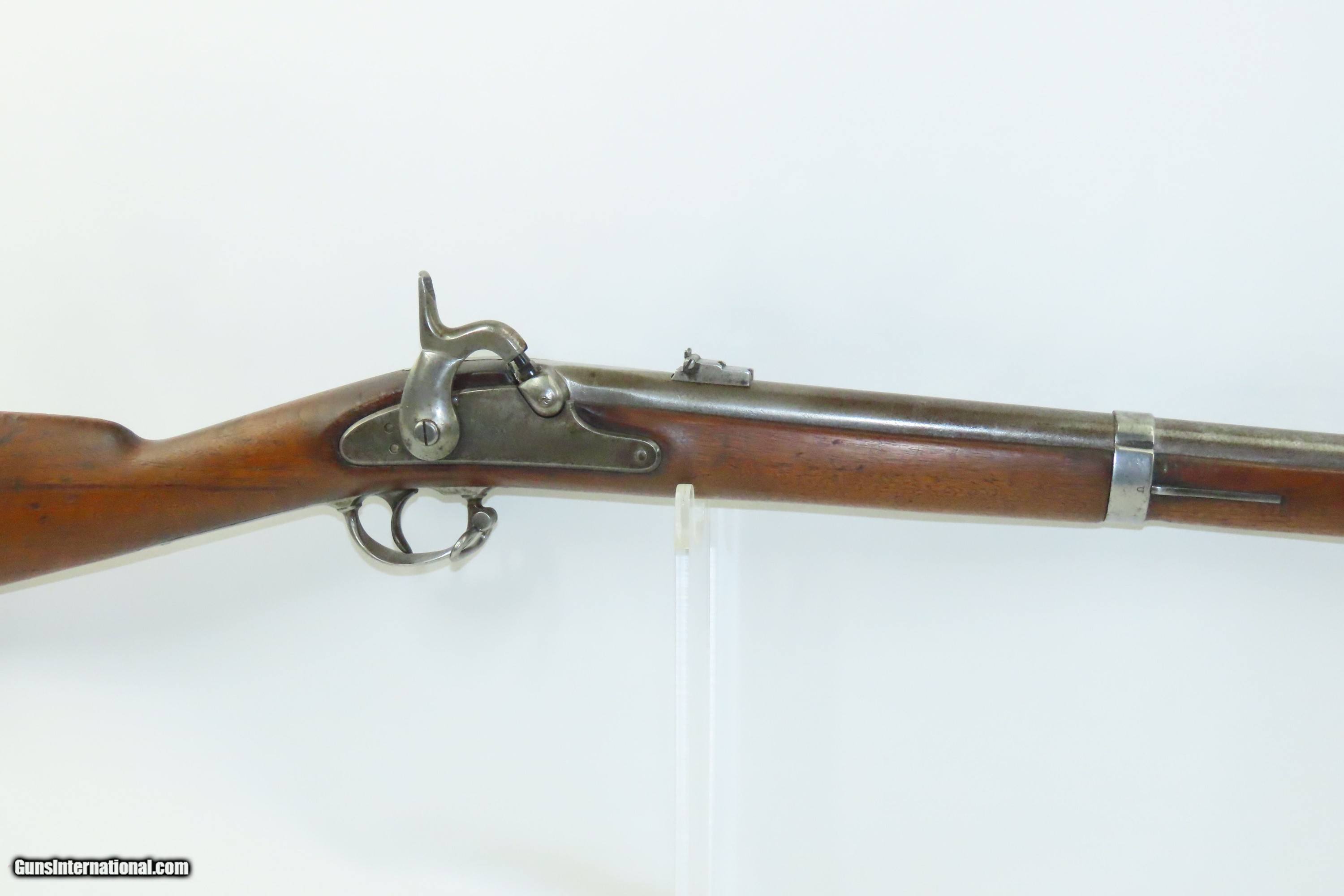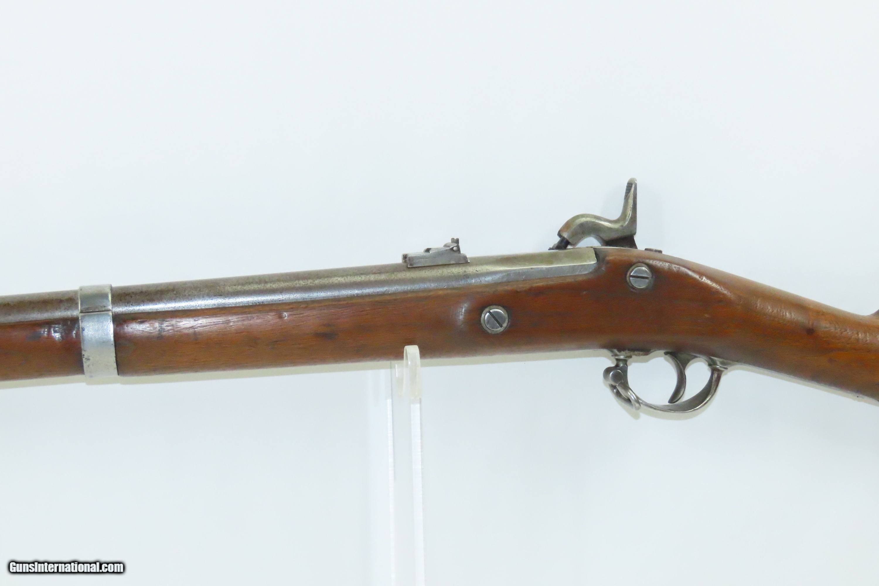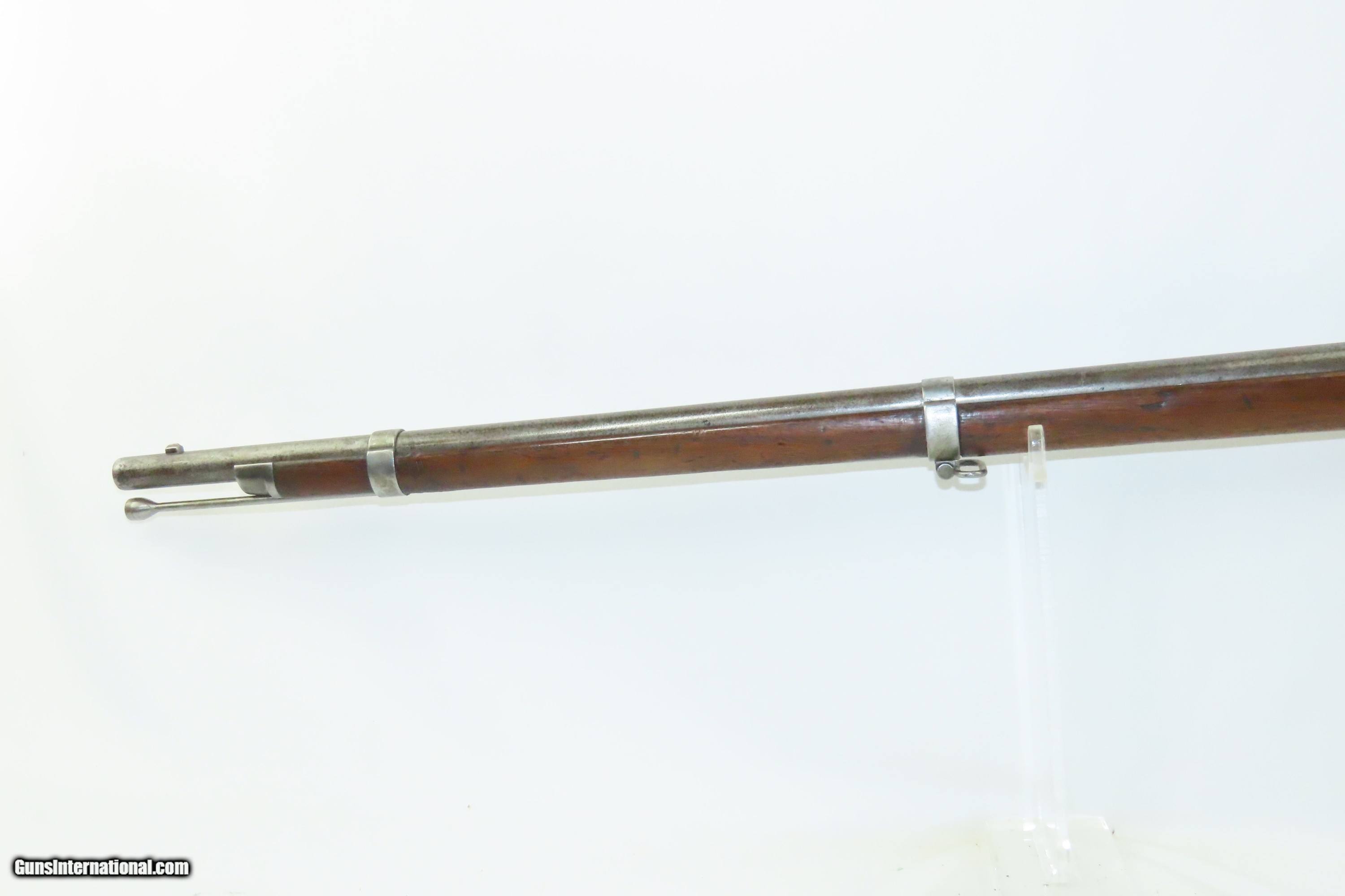 Description: 1863 Dated CIVIL WAR Era Antique SAVAGE M1861 Rifle-Musket SOLDIER GRAFFITI Mid-Civil War U.S. Contract Musket Here we present an antique Savage Revolving Fire Arms Company U.S. Contract Model 1861 Civil War Rifle-Musket, made in 1863 in Middletown, Connecticut. Savage was a major contractor in the Civil War who supplied the government with some 25,520 such muskets for the army. The Model 1861 was the primary infantry weapon of the American Civil War for the Union. The Federal army was not prepared for war in 1861. Quite a few of its arms were in southern hands, and the two armories, Springfield, Massachusetts and Harpers Ferry, Virginia, could not make the standard rifle-musket quickly enough to supply the army. Early in the War, Harpers Ferry was captured, and the machinery was sent to the south. The result was that the Union turned to contractors. The Model 1861 was contracted out to over 20 different companies aside from the national armory at Springfield. Compared to the total production numbers of over a million, production of the Savage contract was limited at 25,520 making these scarce and desirable. The overall condition is good+. Patina throughout. The action is excellent. The bore is dim with some thin rifling visible at the back. The stock is solid and shows the soldier graffiti on both sides with the initials “GL” on the left and “LOUIS/17NY” on the right. The ramrod is a nice replacement. There is a stable split along the grain, just forward of the middle barrel band spring. Own the original! This is a legitimate antique and not a reproduction. Barrel is 40 inches. Caliber: .65 Percussion Overall condition as seen in photos. Very Fast. Very Safe. FREE SHIPPING WORLDWIDE. Delivered directly to your door by express mail! Guaranteed AUTHENTIC & Includes CERTIFICATE OF AUTHENTICITY. ancestryguns $2000 #240113 SOLD Antique: Yes |